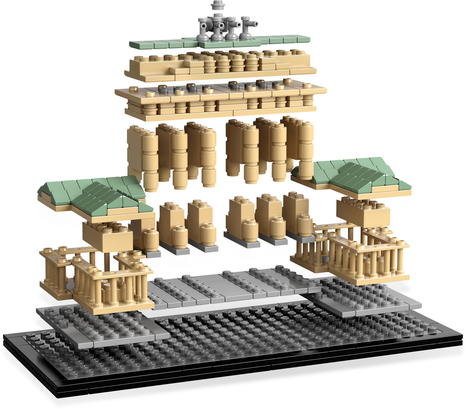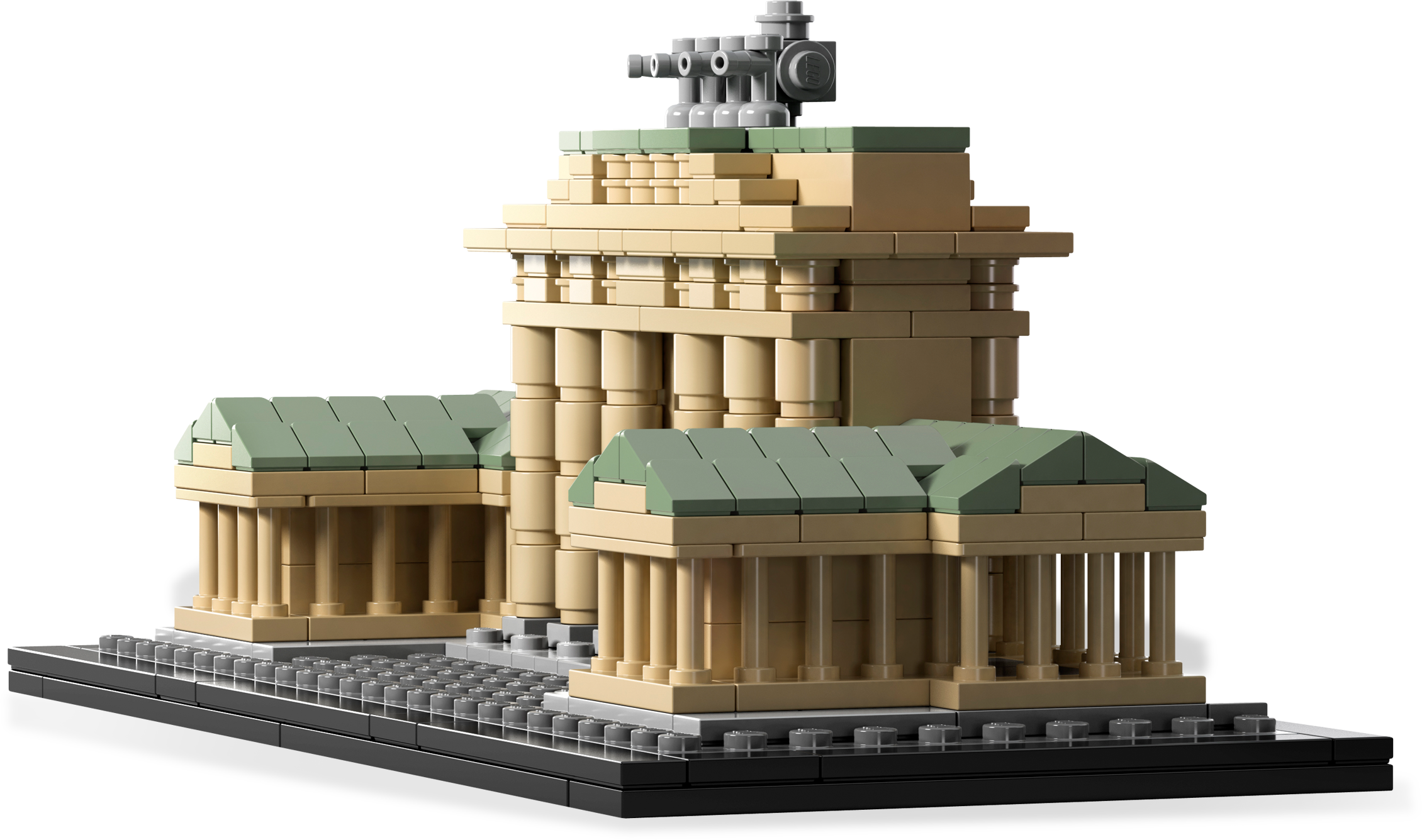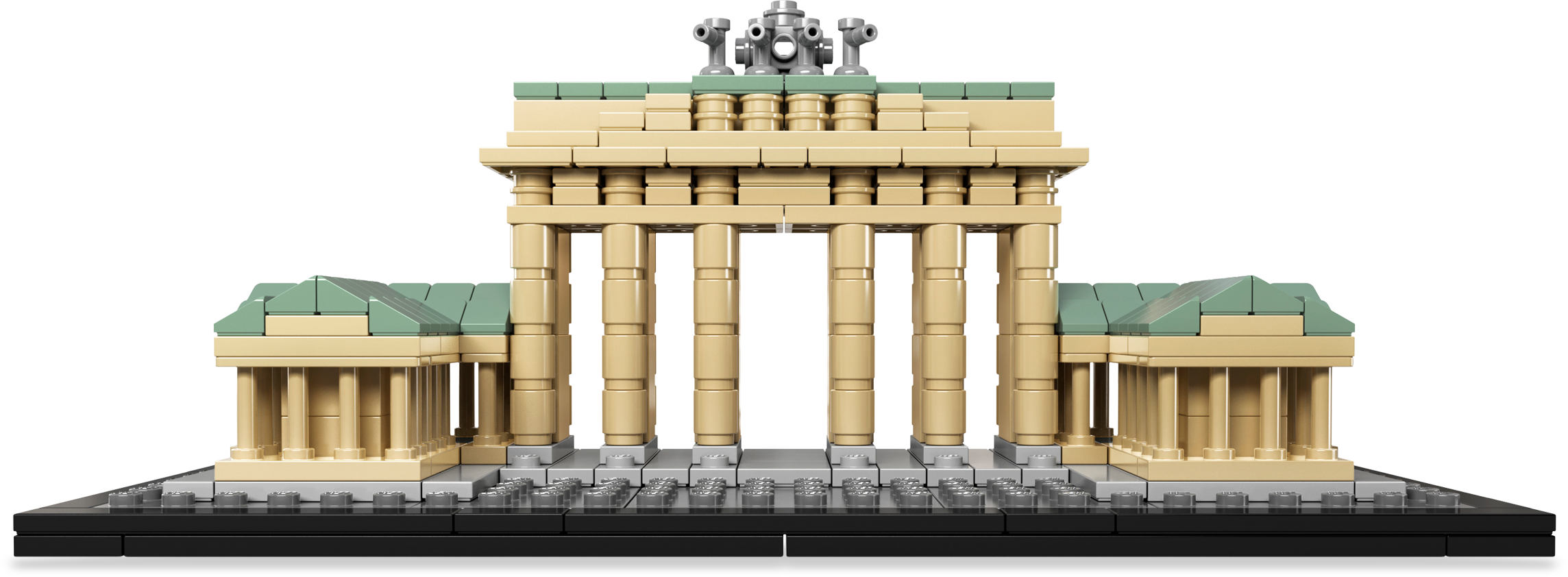 Build a LEGO® replica of the Brandenburg Gate! Commissioned by King Frederick William II of Prussia as a sign of peace, the Brandenburg Gate is one of Berlin’s most important monuments – both as an architectural landmark and historic symbol – for over 200 years. The grandest of a series of 18 gates through which the city was accessed, the Brandenburg Gate was constructed between 1788 and 1791 from the designs of architect Carl Gotthard Langhans and was inspired by the Propylaea in Athens. Built in sandstone and comprised of 12 Doric columns, the gate’s crown jewel is the Quadriga, a sculpture of a chariot and 4 horses depicting Victoria, the Roman goddess of victory, created by Johann Gottfried Schadow. This detailed LEGO model was designed by architect Adam Reed Tucker.Architectural replica of the real-world Brandenburg GateBooklet included with details on design and history. (English language only)