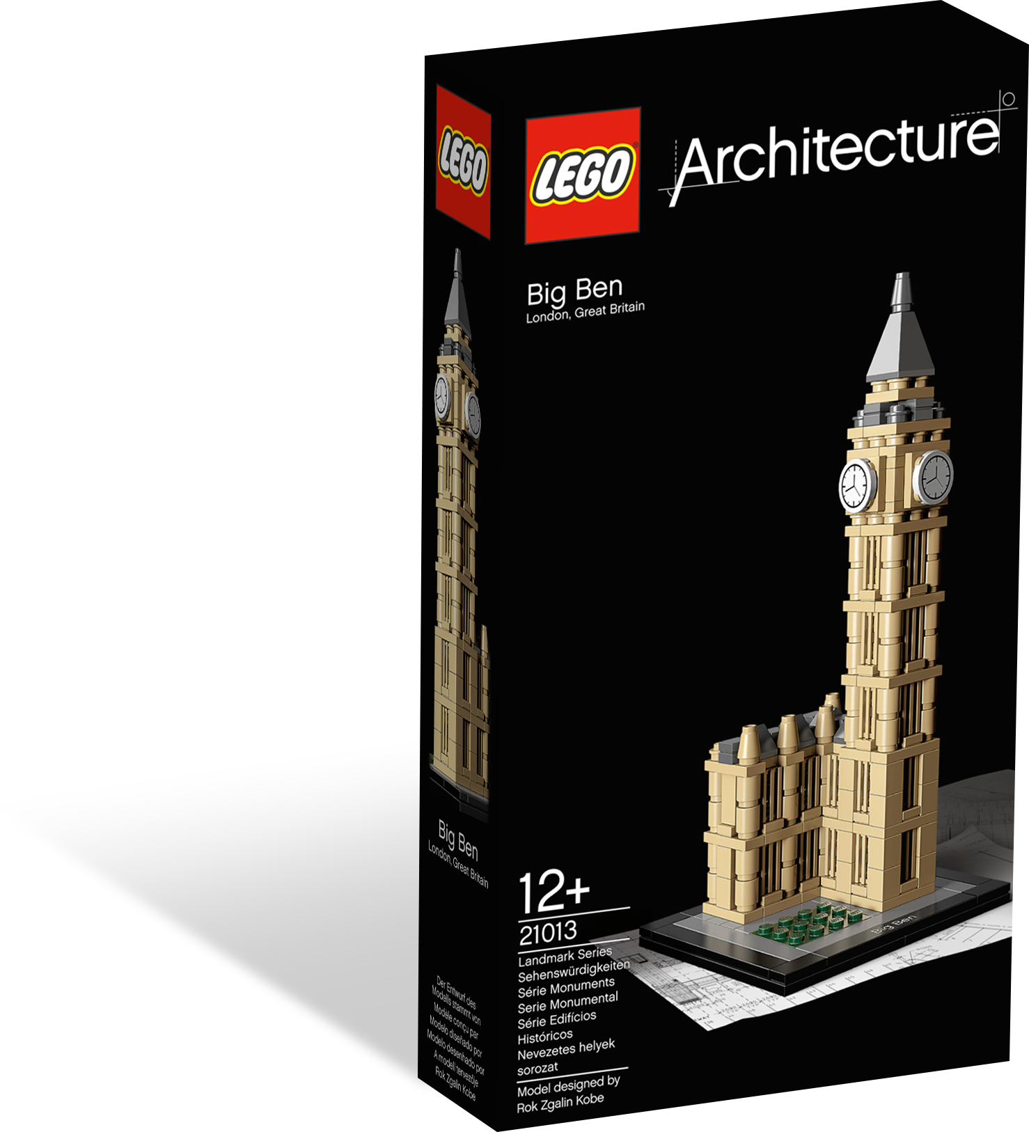Recreate the world's most iconic timepieces – the Big Ben Clock Tower! Presenting the Big Ben Clock Tower, one of the world's most instantly recognizable landmarks. Standing at the northeast corner of the Palace of Westminster in London, England, the Big Ben Clock Tower was erected from 1843–1859 following a fire that burned down much of the original palace. The clock tower features classical design with a distinct gothic influence. The clockwork itself was designed by Edward John Dent shortly after construction of the tower began. This LEGO® Architecture series interpretation of the Big Ben Clock Tower was designed by Slovenian architect Roc Z. Kobe in collaboration with the LEGO design team.Interpretation of real-world architectural landmark, the Big Ben Clock TowerBooklet included with details on design and history (English language only. Other languages available for download.)Collect the entire landmark series!LEGO® Architecture inspires future architects, engineers and designers as well as architecture fans around the world using the LEGO brick as a medium for reproducing esteemed structuresMeasures 7.7” (19.4cm) tall, 3.8” (9.6cm) wide and 3.1” (8cm) deep