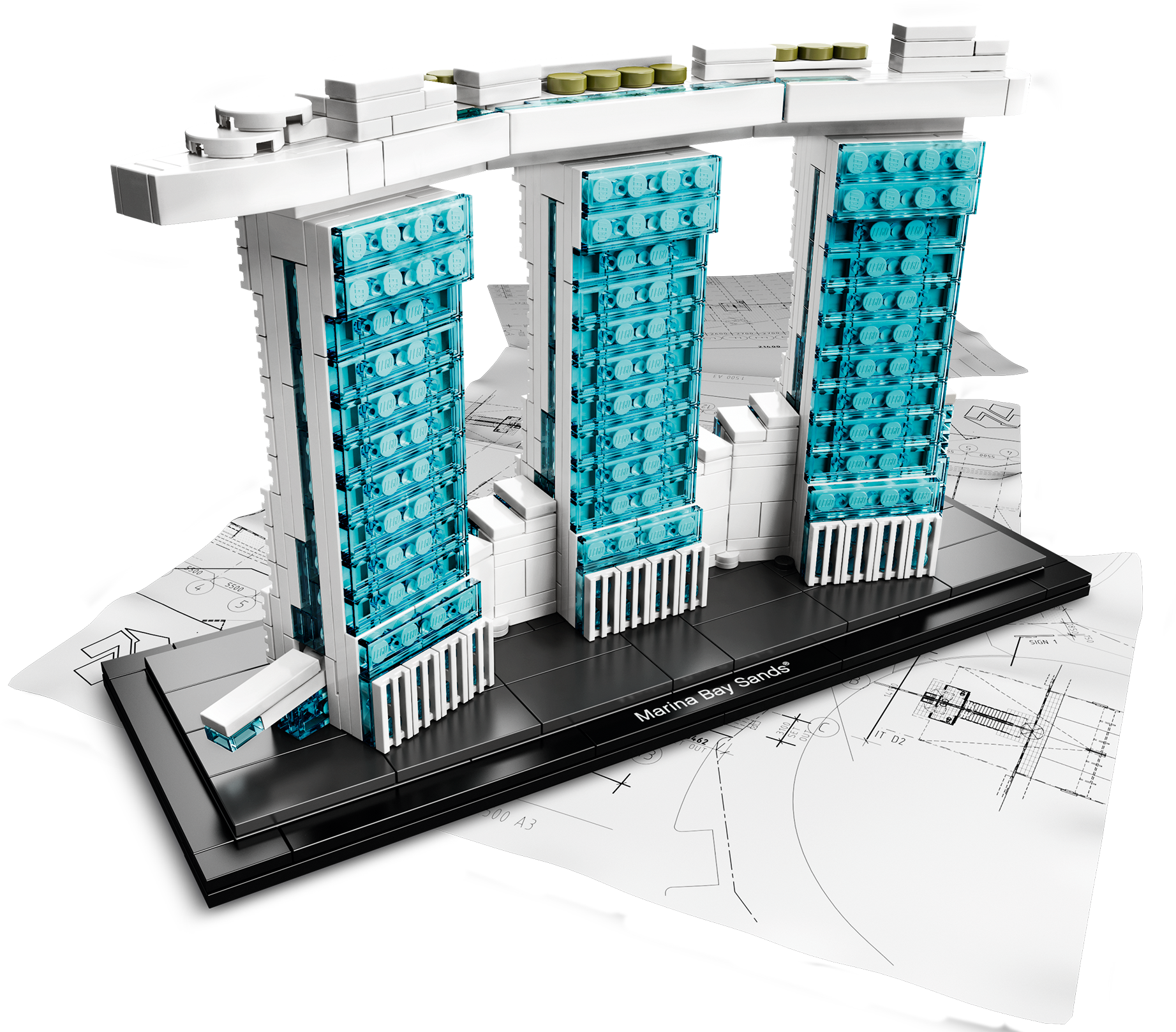 LEGO Marina Bay Sands Set from 2014. This LEGO Architecture set contains 602 pieces