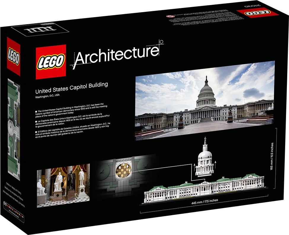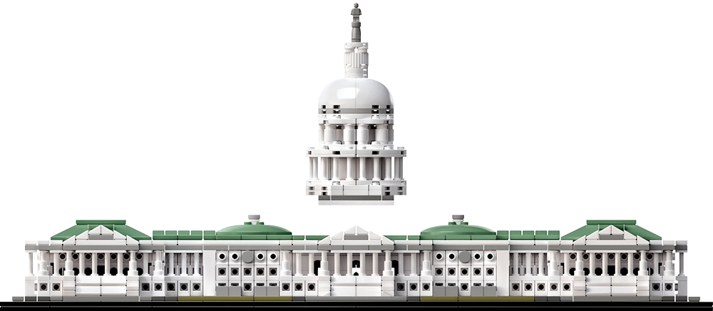 Discover the architectural secrets of the iconic United States Capitol Building with this amazing LEGO® Architecture interpretation that focuses on the structure's neoclassical style facade, steps and lawns, finished with a decorative “U.S. Capitol” nameplate. Remove the dome to access the rotunda interior depicting the National Statuary Hall, with columns, 8 statues and tiled floor. This model has been designed to deliver an interesting and rewarding building experience and is suitable for display in the home and office. It has been developed for all with an interest in travel, architectural culture, history and design. The scale of this model matches the LEGO Architecture 21022 Lincoln Memorial. LEGO® Architecture interpretation of the real-world architectural landmark, the United States Capitol Building. Features the Capitol's neoclassical façade, dome, colonnades, north and south wings, steps and lawns. Remove the dome to access the rotunda, featuring columns, 8 statue elements and a tiled floor. The included booklet contains information about the design, architecture and history of the building (English language only. Other languages available for download at LEGO.com/architecture). Collect the entire LEGO® Architecture series. LEGO® Architecture celebrates the world of architecture through the medium of the LEGO brick, and is developed for all with an interest in travel, design, history and architecture. This set includes over 1,000 LEGO® pieces. The scale of this model matches the LEGO® Architecture 21022 Lincoln Memorial. This set offers an age-appropriate building experience for ages 12+. Measures over 6” (16cm) high, 17” (44cm) wide and 5”(14cm) deep.