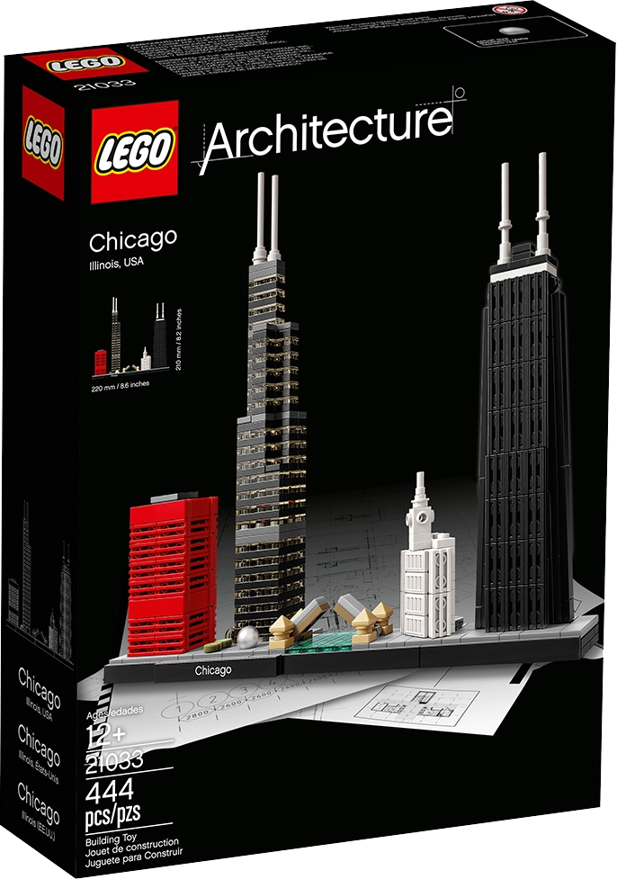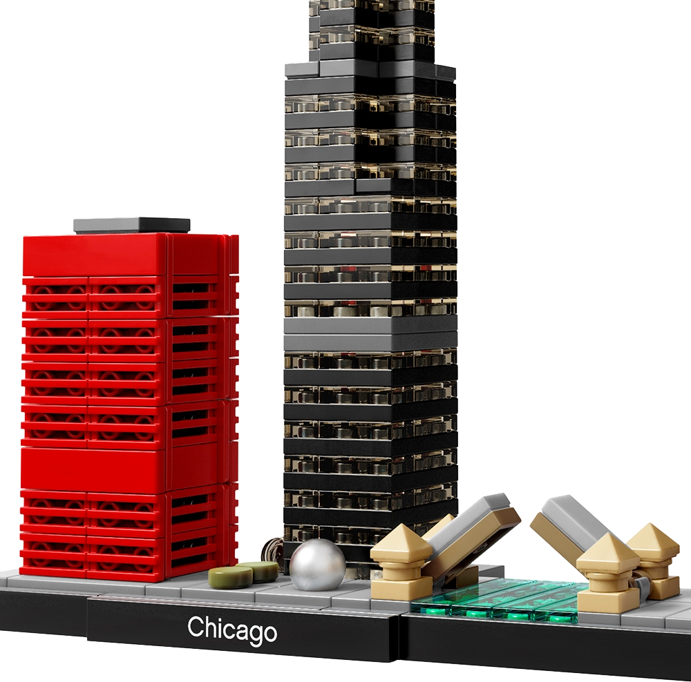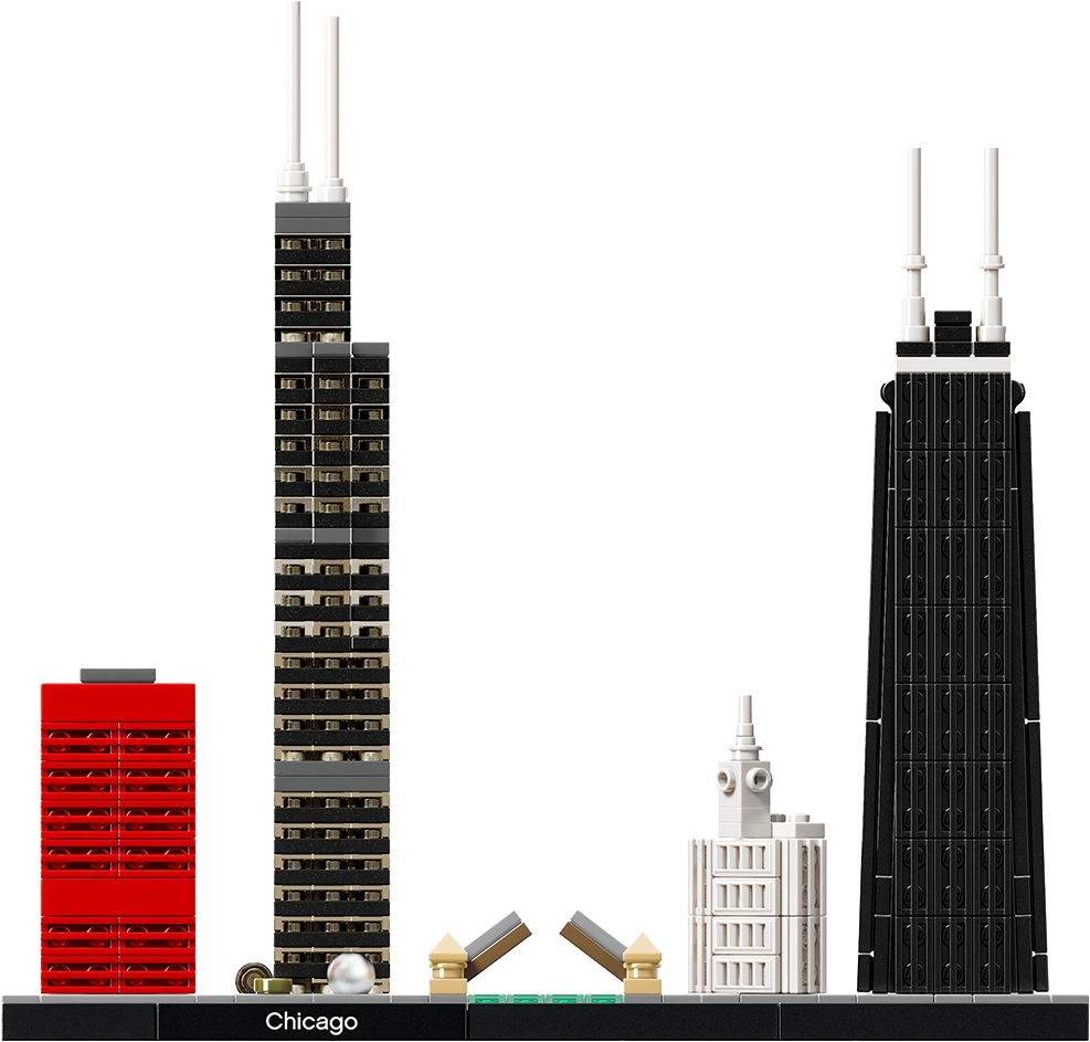 Recreate Chicago’s blend of historical and modern architecture with this realistic LEGO® brick model. The LEGO Architecture Skyline Collection offers models suitable for display in the home and office, and has been developed for all with an interest in travel, architectural culture, history and design. Each set is scaled to give an accurate representation of the comparative size of each structure, with true-to-life color depiction. This set features the Willis Tower™, John Hancock Center, Cloud Gate, DuSable Bridge, Wrigley Building and the Big Red, and is finished with a decorative “Chicago” nameplate. LEGO® Architecture interpretation of Chicago. Features the Willis Tower™, John Hancock Center, Cloud Gate, DuSable Bridge, Wrigley Building and the Big Red. The Chicago River is represented in the tiled baseplate and the DuSable Bridge opens and closes. The included booklet contains information about the designer, architecture and history of each structure, as well as historical facts about Chicago and its architectural heritage (English language only. Other languages available for download at LEGO.com/architecture). Includes a 4x32 tiled base with a decorative “Chicago” nameplate. Recreate the world's most beautiful cities with the LEGO® Architecture Skyline Collection. LEGO® Architecture celebrates the world of architecture through the medium of the LEGO brick, and is developed for all with an interest in travel, design, architecture and history. This set includes over 440 LEGO® pieces and offers an age-appropriate building experience for ages 12+. Measuresover 7” (20cm) high, 8” (22cm) wide and 1” (5cm) deep.