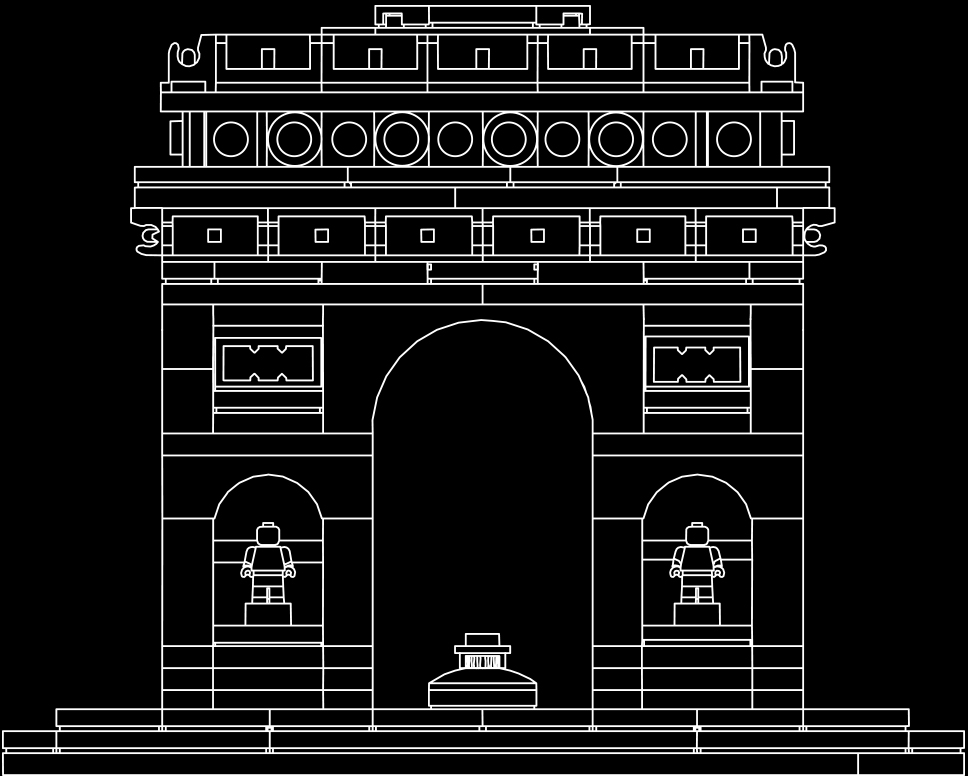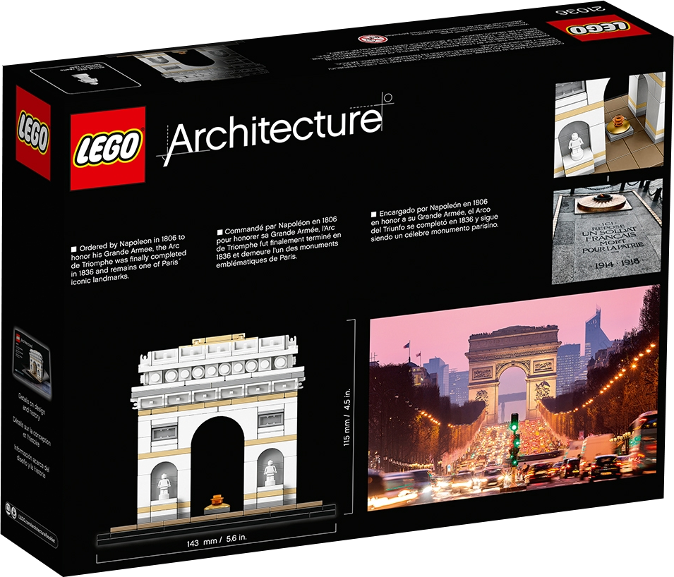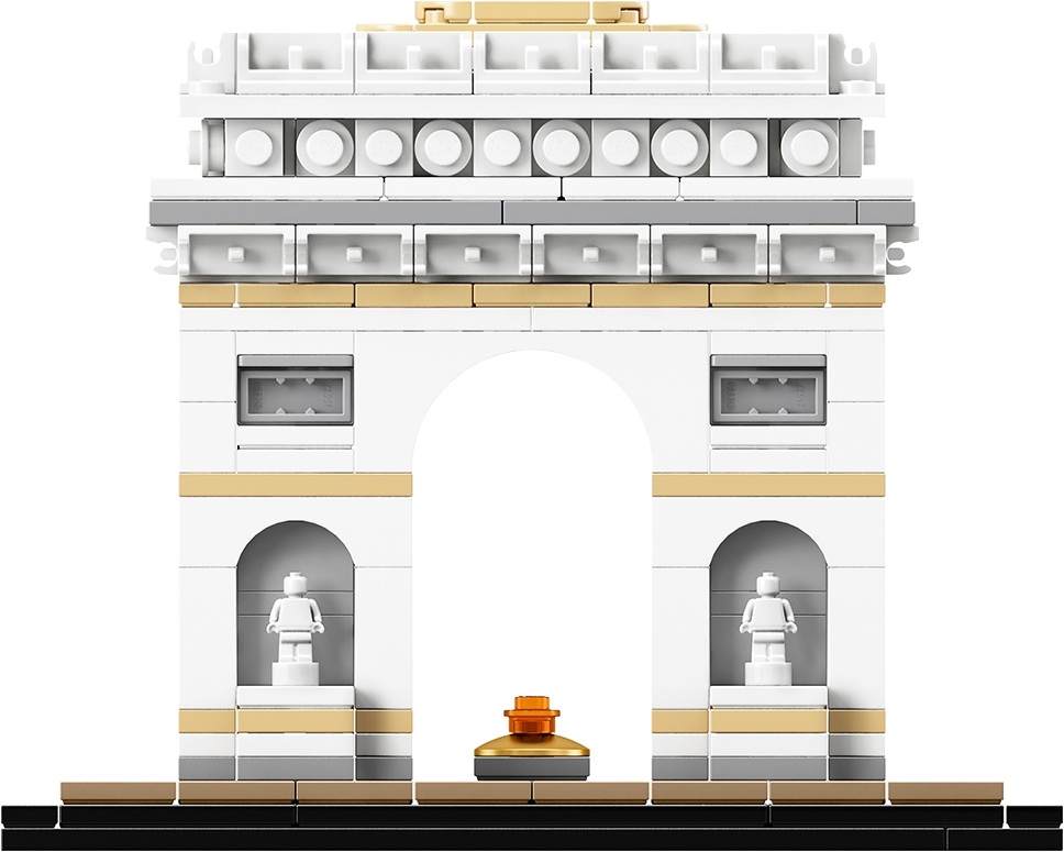 Capture the architectural elegance of one of the world’s best-known monuments with this impressive LEGO® Architecture interpretation of the Arc de Triomphe. This detailed model faithfully reproduces Paris’ iconic masterpiece, with statue-adorned pillars, sculptural reliefs and subtle coloring that adds warmth while emphasizing the model’s bold lines, curves and contours. It also includes a golden plate to represent the Tomb of the Unknown Soldier, a LEGO interpretation of the eternal flame and a decorative “Arc de Triomphe” nameplate. This LEGO brick model has been designed to deliver a pleasantly challenging and rewarding building experience for all with an interest in architecture, travel, history and design, and makes a perfect display piece for the home or office. LEGO® Architecture interpretation of the real-world architectural landmark, the Arc de Triomphe. Features statue-adorned pillars, sculptural reliefs and subtle coloring that adds warmth and emphasis to the model’s bold lines, curves and contours. Also includes a golden plate to represent the Tomb of the Unknown Soldier and a buildable LEGO® interpretation of the eternal flame. Includes a decorative “Arc de Triomphe” nameplate. The included booklet contains information about the design, architecture and history of the monument (French and English languages only. Other languages available for download at LEGO.com/architecture/booklet). LEGO® Architecture celebrates the world of architecture through the medium of the LEGO brick, and is developed for all with an interest in travel, architecture, history and design. Delivers a pleasantly challenging and rewarding building experience. Measures over 4” (11cm) high, 5” (14cm) wide and 3” (9cm) deep.