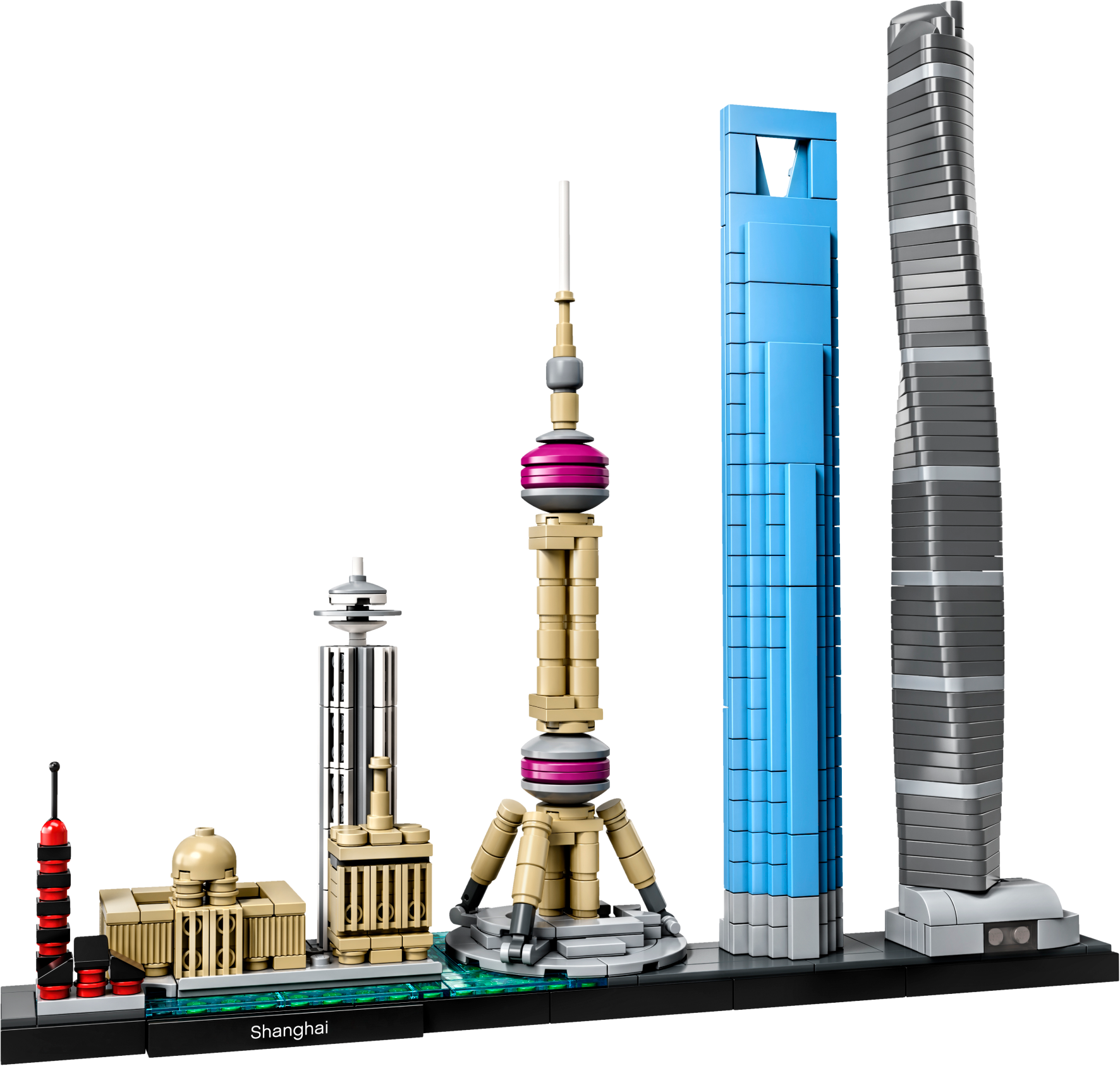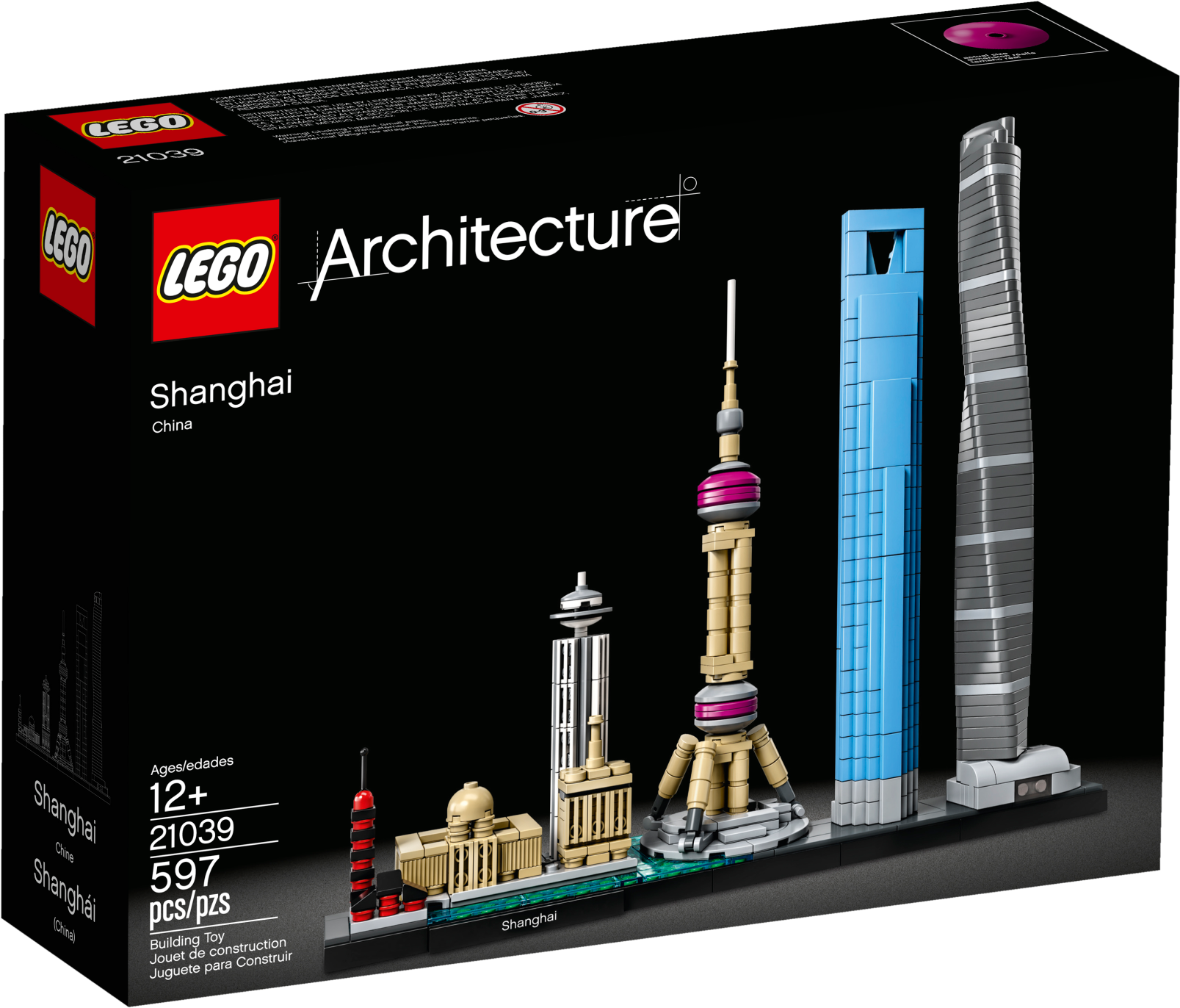 Recreate Shanghai in China's blend of historical and modern architecture with this realistic 21039 LEGO® Architecture Skyline Collection model. This LEGO brick collectible toy features the city's iconic points of interest, including Chenghuang Miao Temple, Longhua Temple and Pagoda, Radisson Blu Hotel, Bund area, Oriental Pearl, World Financial Center, the Shanghai Tower and Huangpu River, and is finished with a decorative Shanghai nameplate. The LEGO Architecture Skyline Collection offers models suitable for display in the home and office, and has been developed for all with an interest in travel, architectural culture, history and design. Each set is scaled to give an accurate representation of the comparative size of each structure, with realistic color depiction.