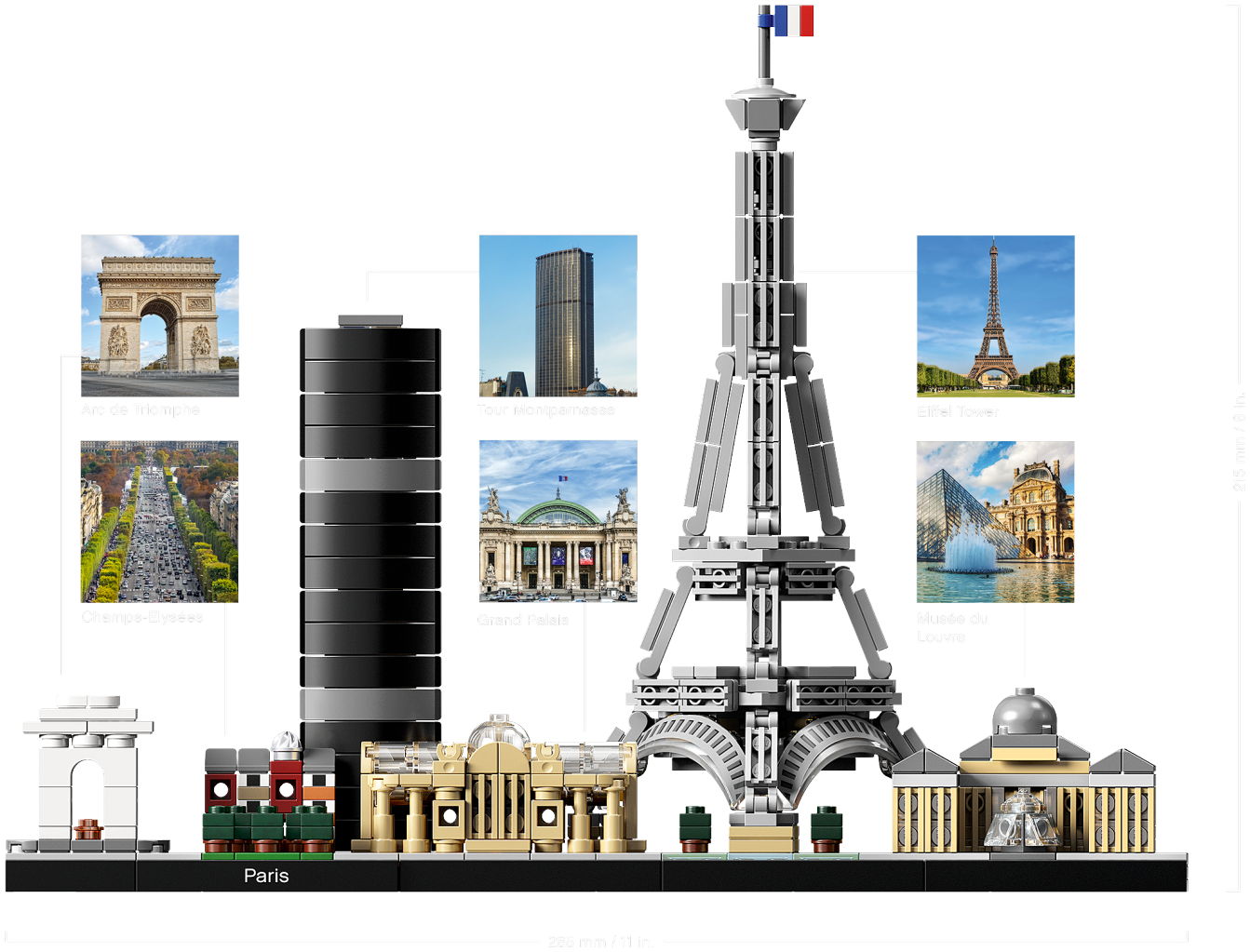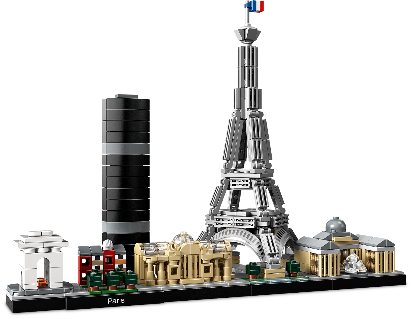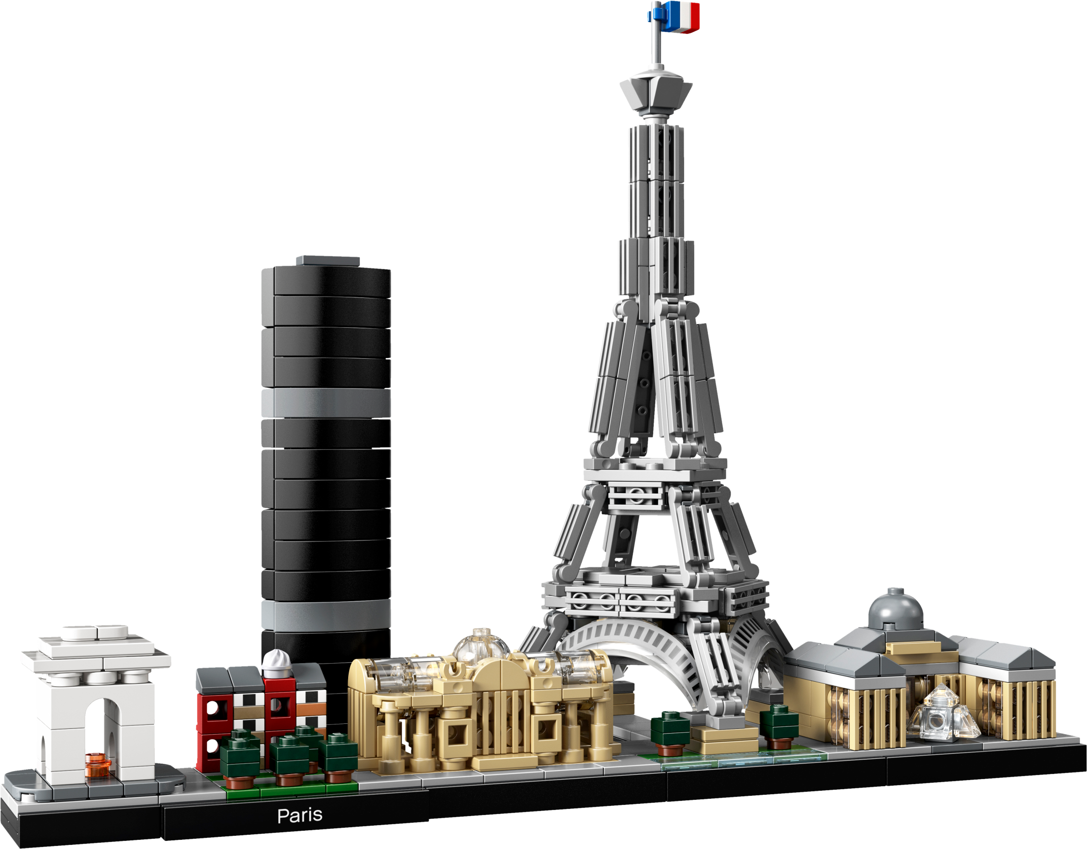 Bring together iconic Paris landmarks with this magnificent Paris skyline model. The 21044 LEGO® Architecture Skyline Collection set features the Arc de Triomphe, Champs-Elysées, Tour Montparnasse, Grand Palais, Eiffel Tower and the Louvre, and is finished with grass and tree areas and a decorative Paris nameplate. This set has been designed to deliver a rewarding and relaxing building experience to all with an interest in architecture, travel, history and design, and makes a truly “mangnifique” centerpiece for the home or office. Each skyline model is scaled to give an accurate representation of the comparative size of the featured structures, with realistic color depiction.