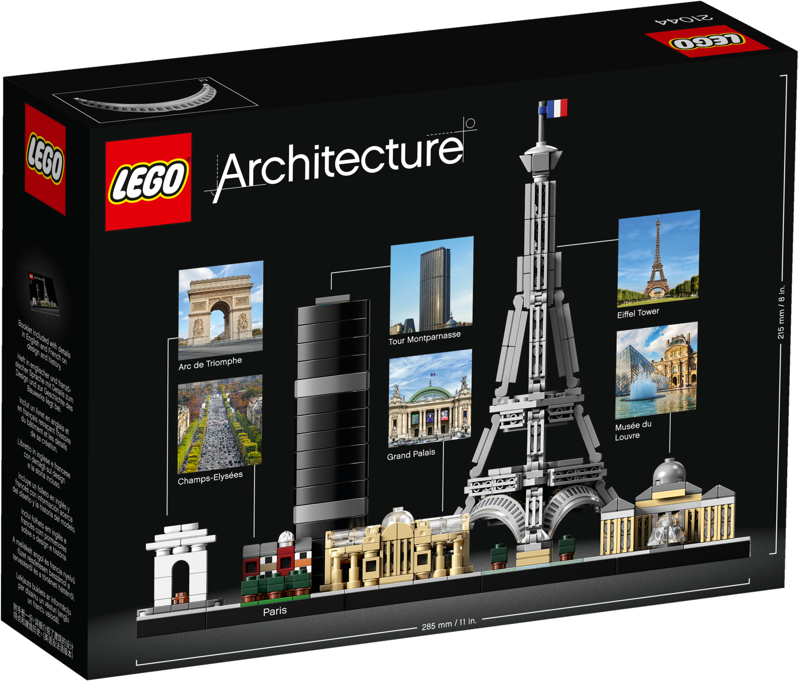 The included booklet contains information about the designer, architecture and history of each structure, as well as historical facts about Paris and its architectural heritage. (French and English languages only. Other languages available for download at LEGO.com/architecture.)