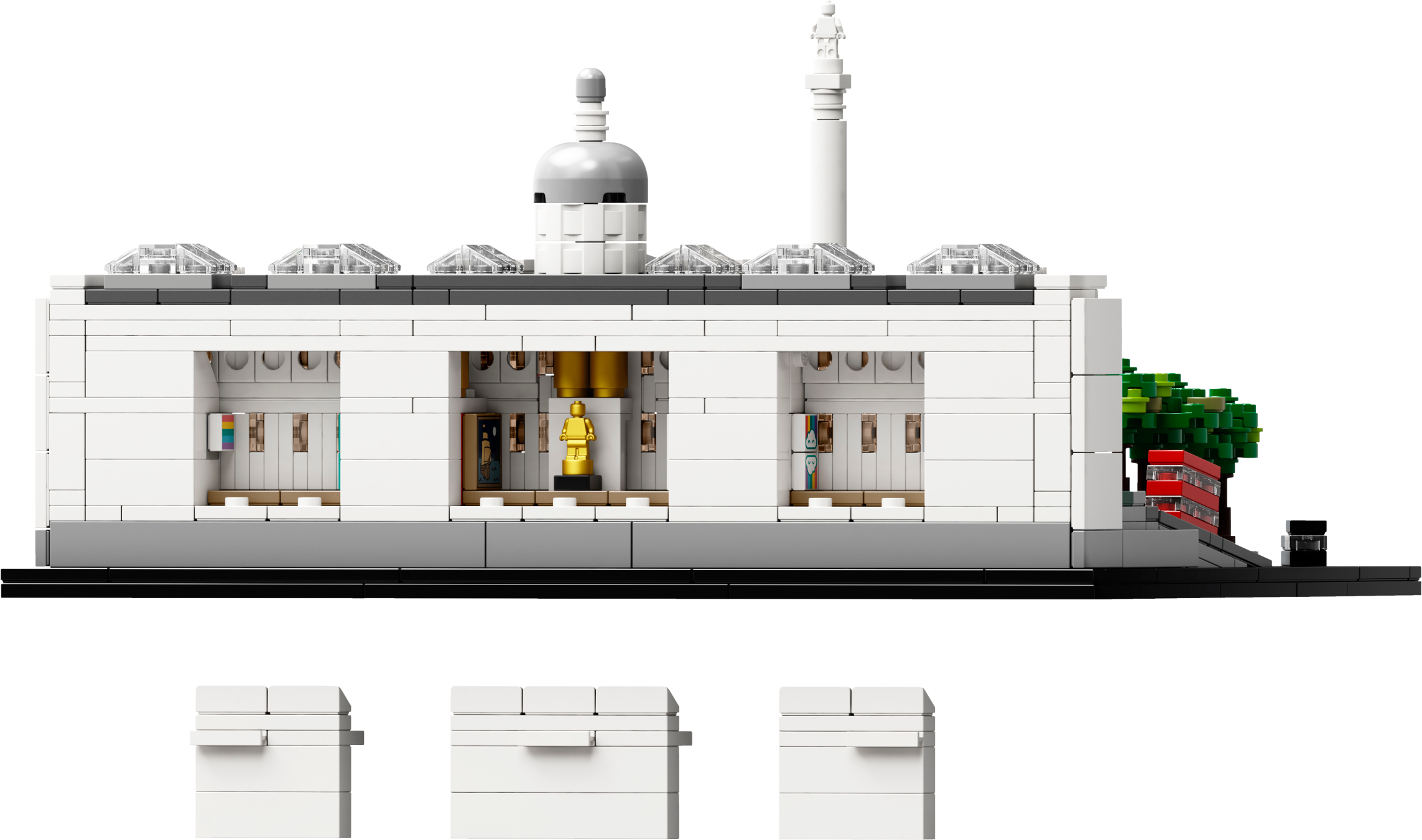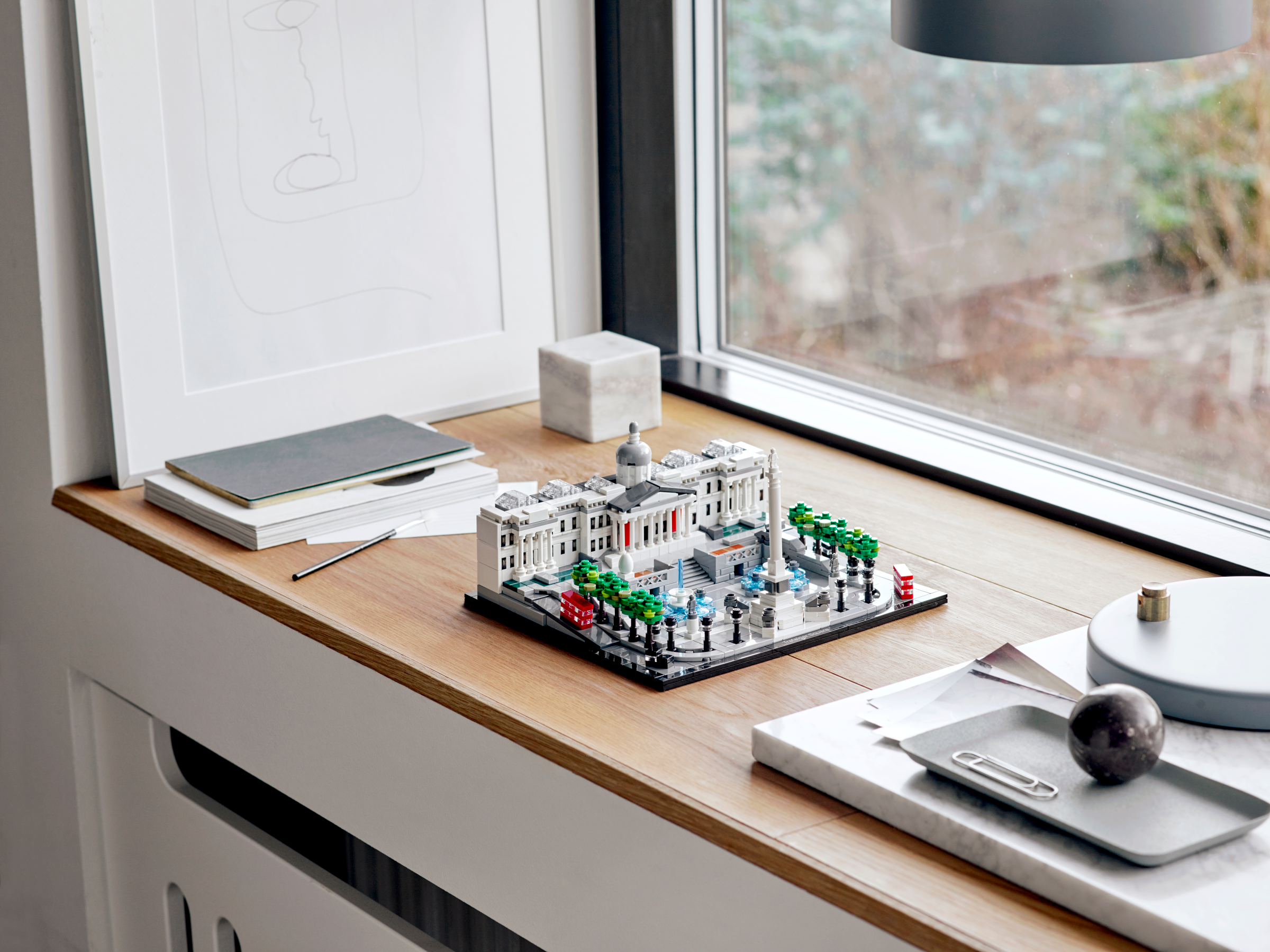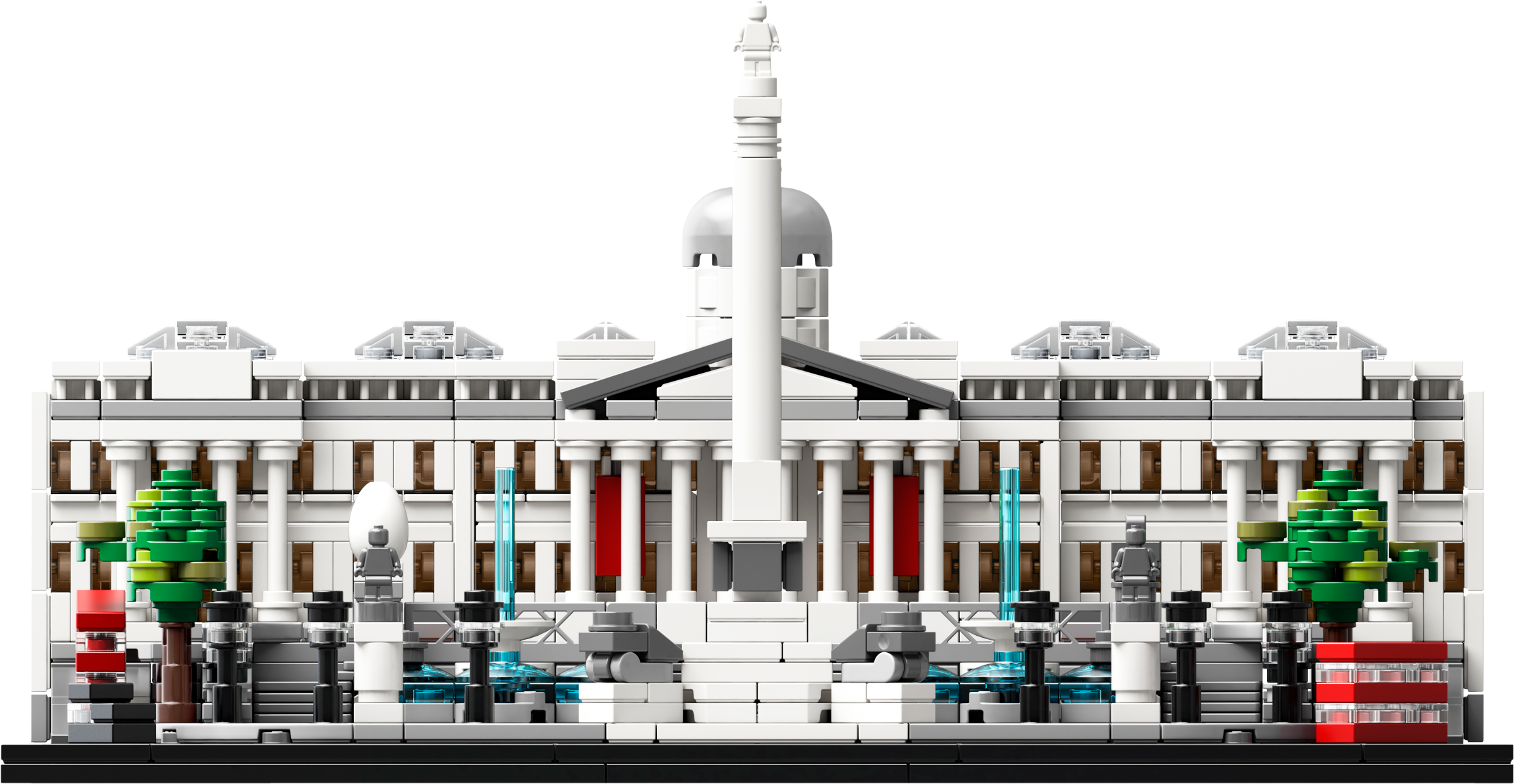 Capture the essence of a historical London landmark with the LEGO® Architecture 21045 Trafalgar Square set. Named in honor of Lord Horatio Nelson following his 1805 naval victory over Napoleon, the square has since become a popular tourist attraction and preferred location for political and community gatherings. This detailed LEGO interpretation depicts the domed National Gallery complete with columned facade, Nelson's Column flanked by 4 lions, the square's famous fountains and 4 sculpture plinths. The sections at the rear of the National Gallery structure can be removed for access to a detailed interior with brick-built statue and paintings. Tree-lined borders, ornate lampposts, 2 London buses, 2 black cabs and a tiled baseplate depicting the square and surrounding roads complete the model. Finished with a decorative nameplate, this collectible building set delivers a highly satisfying building experience to all with an interest in architecture, travel, history and design, and makes a truly iconic centerpiece for the home or office. LEGO® Architecture interpretation of the real-world London landmark, Trafalgar Square. Features the National Gallery, Nelson’s Column flanked by 4 lions, 2 fountains, 4 sculpture plinths, 10 trees, 6 lampposts, and a tiled baseplate depicting the square and road areas complete with 2 London buses and 2 black cabs. The included booklet contains information about the architecture and history of each structure, as well as historical facts about Trafalgar Square and its architectural heritage. (English language only. Other languages available for download at LEGO.com/architecture). Includes a decorative Trafalgar Square nameplate. LEGO® Architecture celebrates the world of architecture through the medium of the LEGO building brick and is developed for all with an interest in travel, architecture, history and design. This set includes over 1,190 pieces. Enjoy a pleasantly challenging and rewarding building experience with this LEGO® Architecture set. Measures over 4” (12cm) high, 9” (24cm) wide and 7” (20cm) deep.