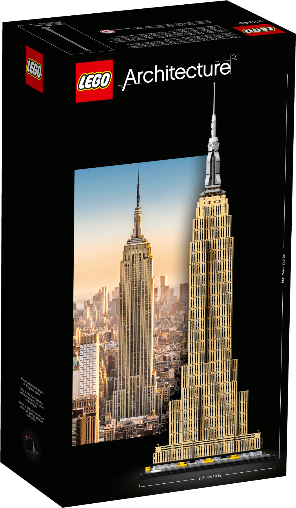 Elevate your LEGO® building skills to a higher level with this LEGO Architecture 21046 Empire State Building set. Located at the heart of New York City, the Empire State Building towers above the surrounding skyscrapers. Construction of the building began on March 17, 1930 and just one year and 45 days later, on May 1, 1931 it was opened for business. The height of the structure was increased in 1950 with the addition of the iconic antenna tower. At 21” (55cm), the tallest LEGO Architecture model to date (July 2019), this highly detailed, collectible replica accurately recreates the symmetrical lines of the building’s 4 curtain wall facades and art deco antenna tower. The tiled baseplate depicts Fifth Avenue and surrounding roads complete with yellow cabs, and the model is finished with a decorative nameplate. This 360°-displayable model delivers an interesting and rewarding building experience and makes a truly iconic centerpiece for the home and office. It has been developed for all with an interest in travel, architectural culture, history and design. LEGO® Architecture interpretation of the real-world New York landmark, the Empire State Building. This 360°-displayable model features 4 highly detailed facades, a silver-colored antenna tower and a tiled baseplate depicting Fifth Avenue and the surrounding roads, complete with 6 yellow cabs. At 21” (55cm) high, this Empire State Building model is the tallest LEGO® Architecture model to date (July 2019). The included booklet contains information about the designer, architecture and history of the structure, as well as historical facts about the Empire State Building and its architectural heritage. (English language only. Other languages available for download at LEGO.com/architecture). Includes a decorative Empire State Building nameplate. LEGO® Architecture celebrates the world of architecture through the medium of the LEGO brick, and is developed for all with an interest in travel, architecture, history and design. This set includes over 1,750 pieces. Enjoy a pleasantly challenging and rewarding building experience with this LEGO® Architecture set. Measures over 21” (55cm) high, 7” (20cm) wide and 4” (12cm) deep.