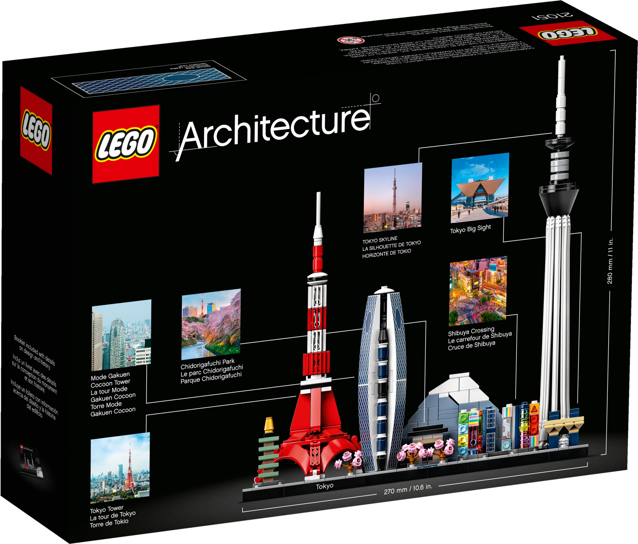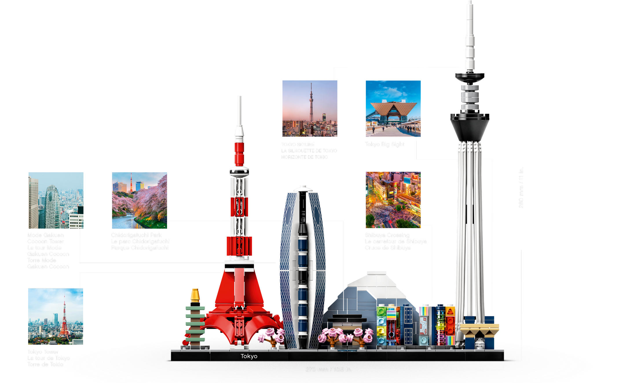 Recreate some of Tokyo’s most famous buildings with this detailed LEGO® Architecture Skyline Collection 21051 desk toy. It’s a great souvenir for Tokyo visitors and an ideal gift for adults who live or have lived in Japan’s capital city or who dream of visiting. Even LEGO newcomers can zone out from busy lives and enjoy this relaxing building experience.Iconic buildingsThis toy construction set includes scale models of TOKYO SKYTREE, the world's tallest freestanding tower, Tokyo Tower, Mode Gakuen Cocoon Tower and Tokyo Big Sight. The cherry-tree-filled Chidorigafuchi Park, a classic pagoda tower and Shibuya Crossing are also featured. Together on the baseplate with a ‘Tokyo’ nameplate, they create a compact, impactful display piece.Introducing LEGO Architecture…LEGO Architecture sets capture the essence of the world's best-known buildings, monuments and cities. From iconic landmarks to city skyline models, there's something for anyone interested in architecture, travel, history and design.Build this striking LEGO® Architecture Tokyo skyline souvenir for adults, featuring authentically detailed models of iconic buildings and landmarks, and display your passion for this vibrant city.This collectible construction set features buildable models of the Tokyo Tower, Mode Gakuen Cocoon Tower, Tokyo Big Sight, TOKYO SKYTREE, Chidorigafuchi Park, Shibuya Crossing and more to evoke nostalgic memories.This home or office desk model includes a base with a Tokyo nameplate. And learnmore about Tokyo and the model designer in the booklet (English language only. Download other languages at LEGO.com/architecture.)Even new LEGO® architects can enjoy this easy-to-build architecture model kit, and it makes a cool creative Japanese gift for adults aged 16+ who have been to Tokyo, dream of visiting, or live/have lived there.This buildable skyline measures over 11” (28cm) high, 10” (27cm) wide and 3” (10cm) deep – you don't need a lot of space to display it, but its vibrantcolors and authentic details will catch the eye of every passerby!No batteries required – this architecture construction set for adults offers a stress-relieving, relaxing build with LEGO® bricks only. So, forget your worries, zone out and create a beautiful display model!Thinking of buying this unique Tokyo gift for someone new to LEGO® building kits? No problem. It comes with easy-to-follow, printed building instructions. Open the box and away they go!Ideal for display, collectible LEGO® Architecture models of iconic landmarks and city skylines offer a variety of rewarding building experiences for anyone interested in architecture, travel, history and design.LEGO® building bricks meet the highest industry standards, which ensures they are consistent, compatible and connect and pull apart easily every time.LEGO® bricks are tested in every way you can imagine to ensure that every LEGO Architecture building set meets the highest safety standards and your Tokyo souvenir model is as robust as it is beautiful.