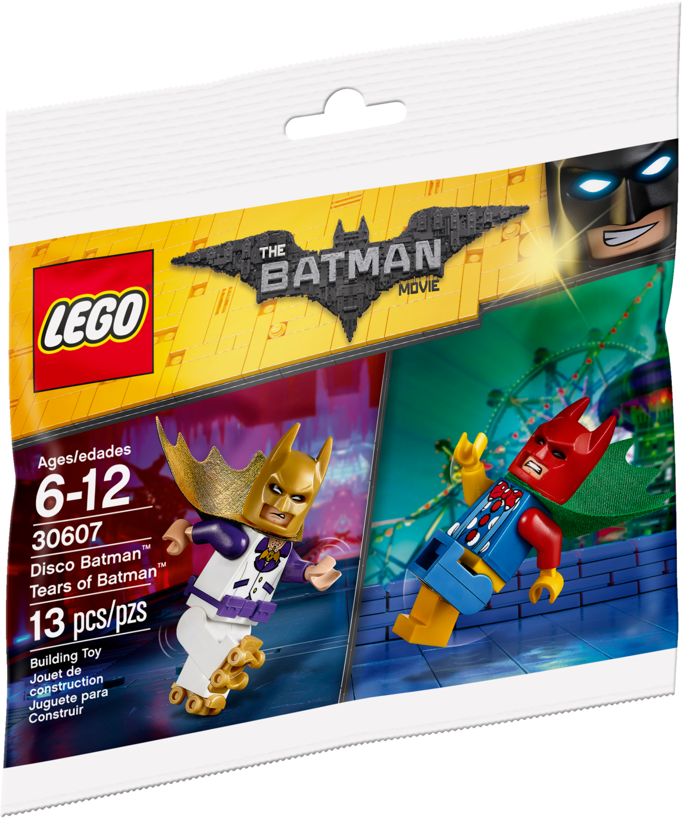 Raid the Batcave’s huge wardrobe of Batman™ costumes and step out in style with these Disco Batman™ and Tears of Batman™ minifigures.