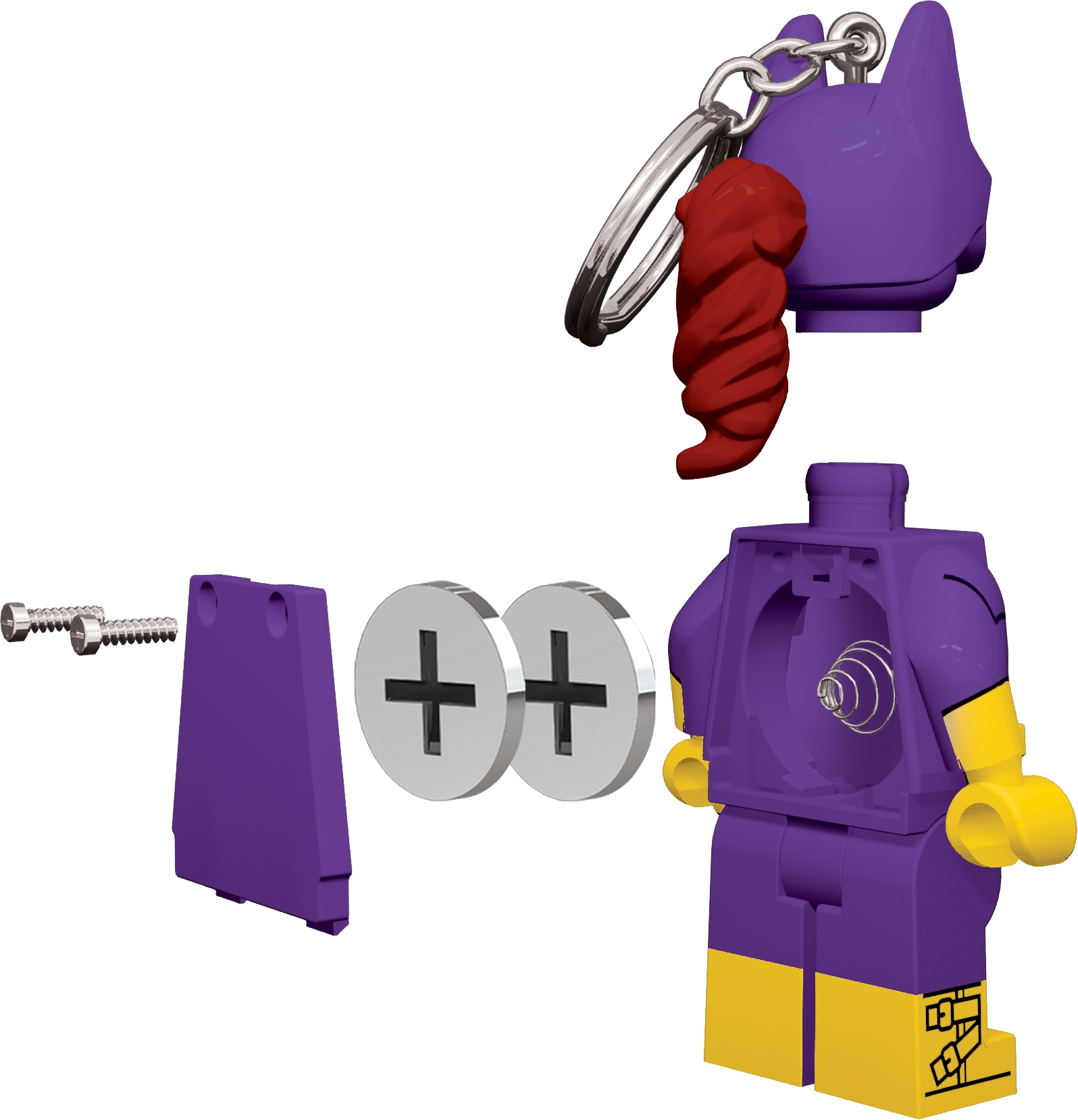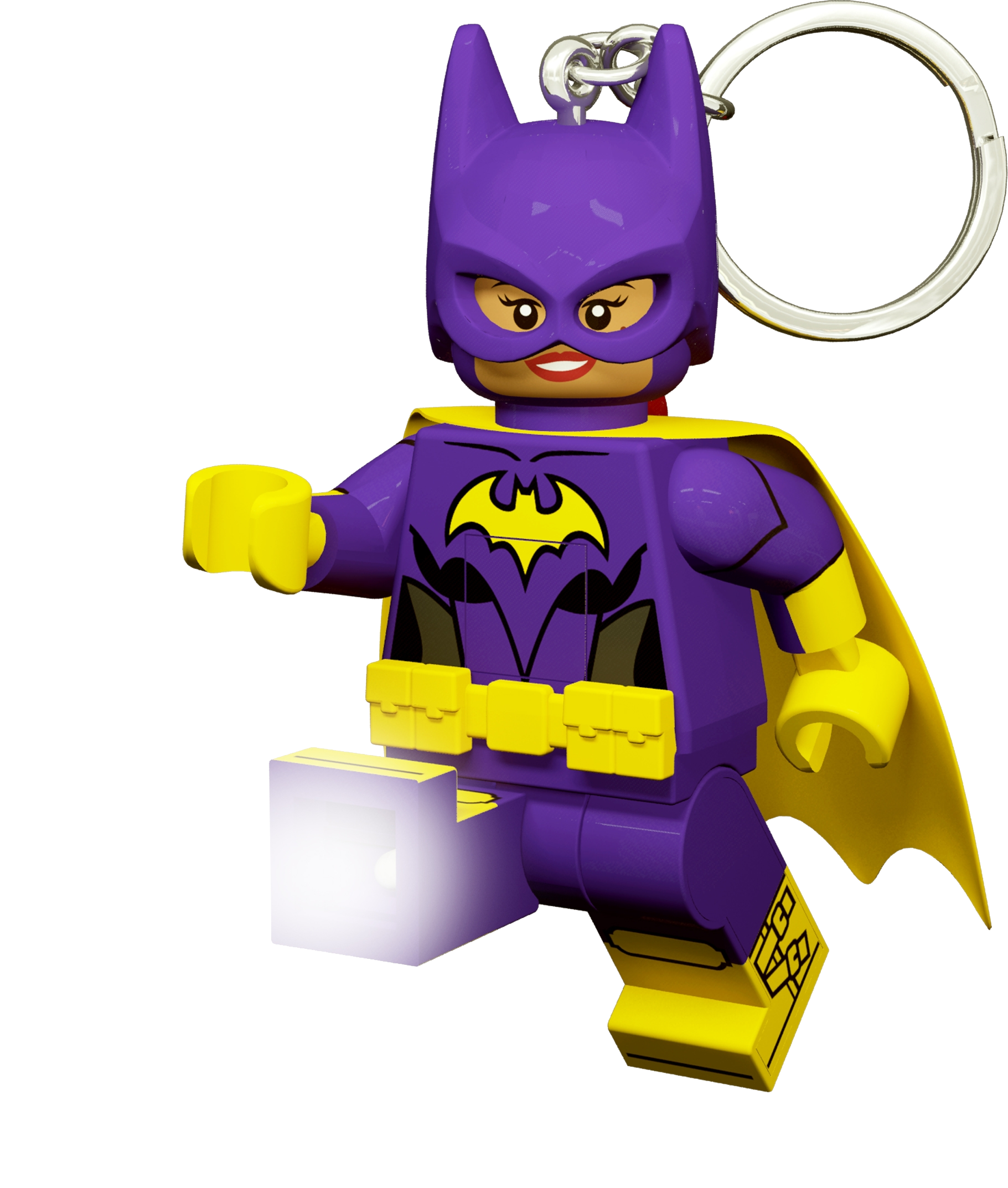 Light up the night sky (or a keyhole) with THE LEGO® BATMAN MOVIE Batgirl™ Key Light! This large posable minifigure of the fearless super hero has bright LED lights in both feet—simply press the button on her body to turn the lights on and move her legs to aim the beams in different directions.Features a large posable Batgirl™ minifigure key chain with 2 bright LED lights in the feet.Push the button on the body to activate the lights.Pose the arms and move the legs to aim the light beams in different directions.Switch with auto shut-off saves battery power.Batteries are included.Large Batgirl™ minifigure stands over 3” (8cm) tall.