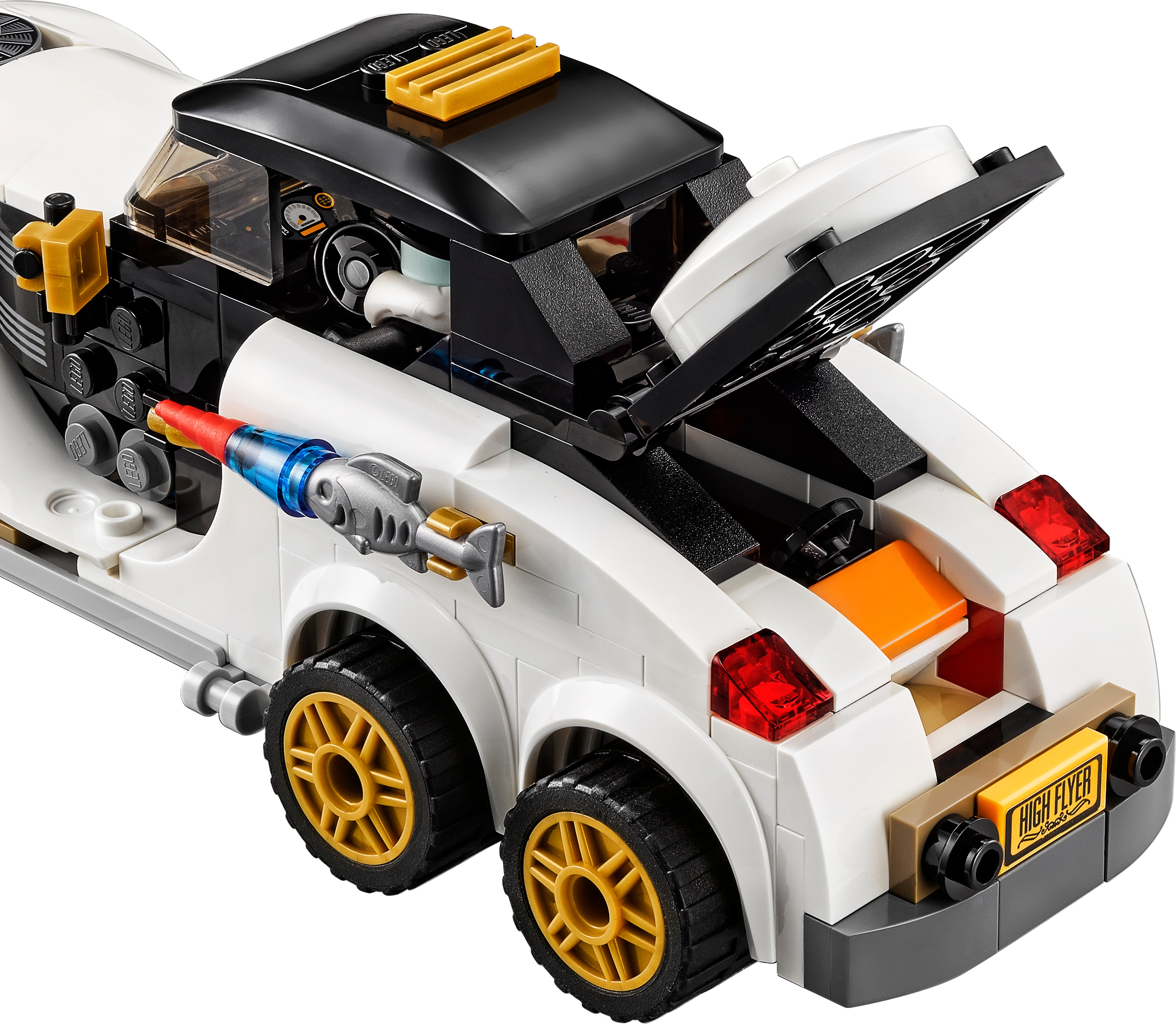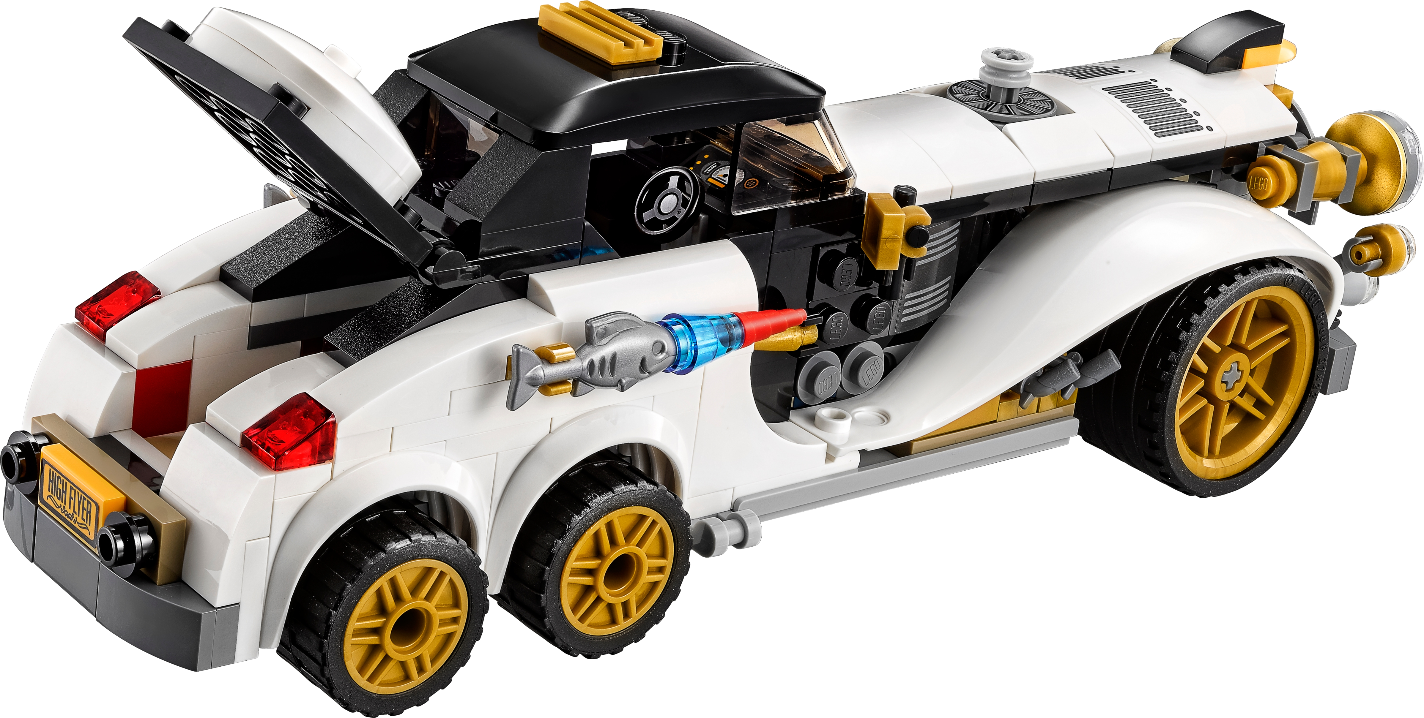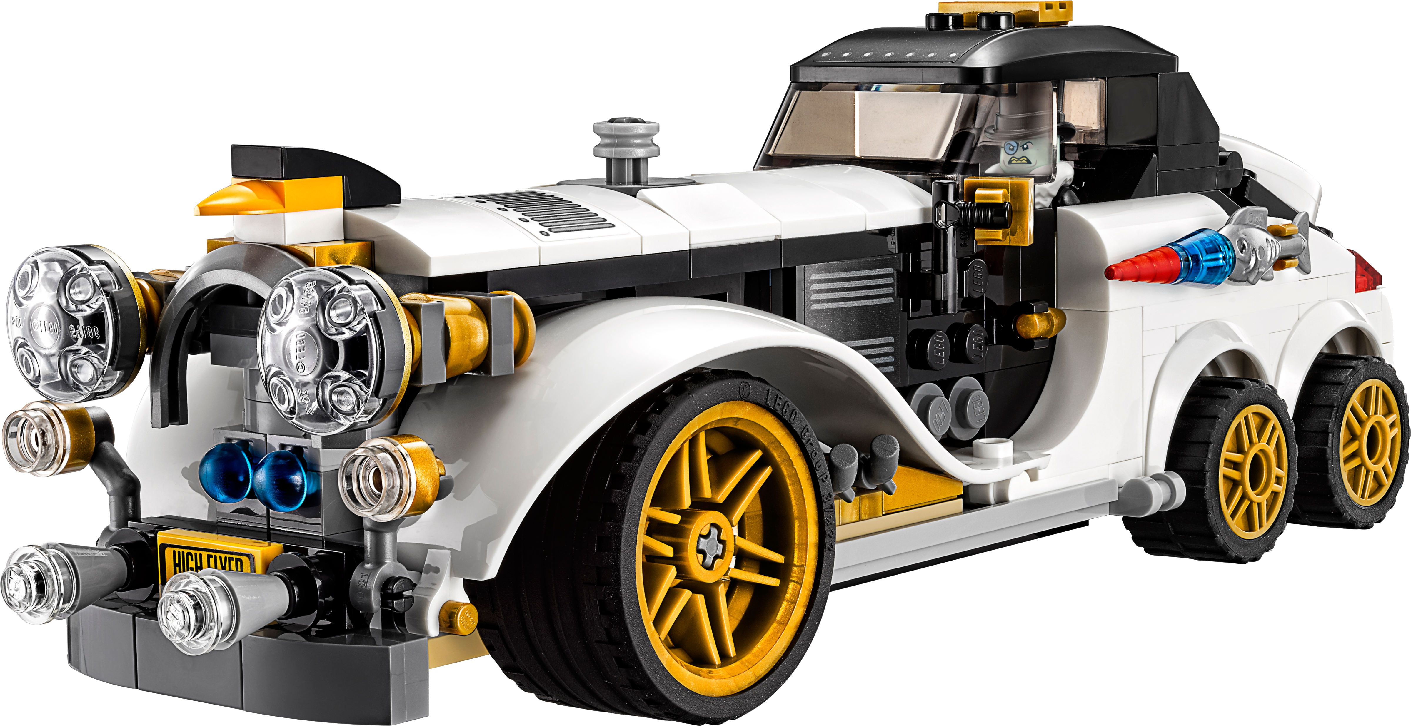 Join Batman’s pursuit of The Penguin in THE LEGO® BATMAN MOVIE: The Penguin™ Arctic Roller set. The Arctic Roller vehicle features a minifigure cockpit with removable roof, dual spring-loaded shooter and loads of quirky penguin details. Add an extra dimension to the chase by opening the trunk and placing The Penguin™ on his penguin mini escape pod. Includes two minifigures. Includes two minifigures: Batman™ and The Penguin™. The Arctic Roller features a minifigure cockpit with removable roof, six wheels with rubber tires and golden-colored trims, dual spring-loaded shooter, an opening trunk with penguin mini escape pod, fish missile details on either side of the car, penguin-head hood ornament and translucent headlight-style elements. Press the button on the hood to fire the spring-loaded shooters. The penguin mini escape pod has an open minifigure cockpit, steering wheel element and penguin details. Includes Batman’s Batarang. Accessory elements include Batman’s cape and new-for-spring-2017 molded utility belt, and the Penguin’s collar, top hat and umbrella. This set offers an age-appropriate build and play experience for ages 8+. Arctic Roller measures over 2” (7cm) high, 8” (22cm) long and 2” (7cm) wide.