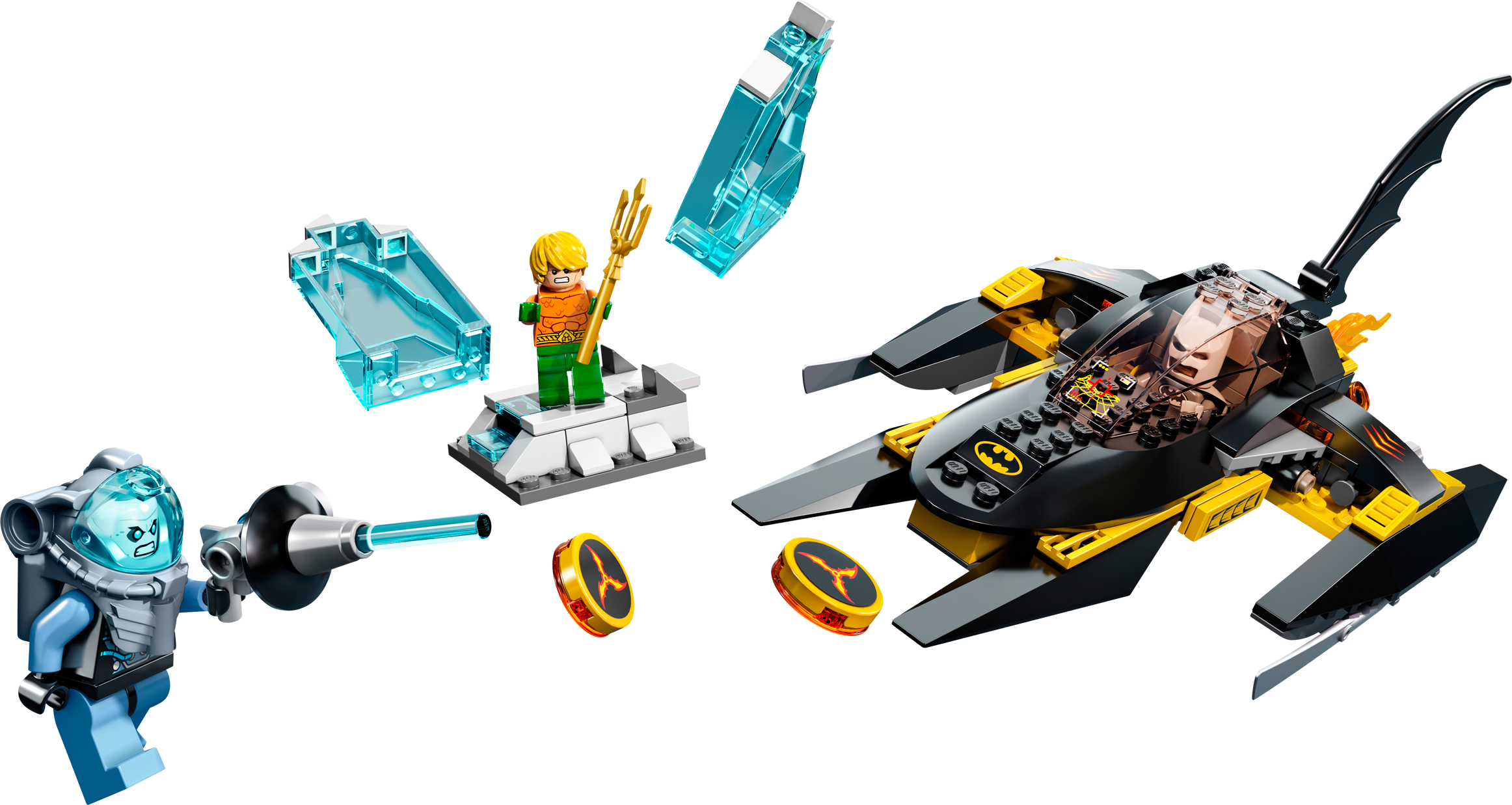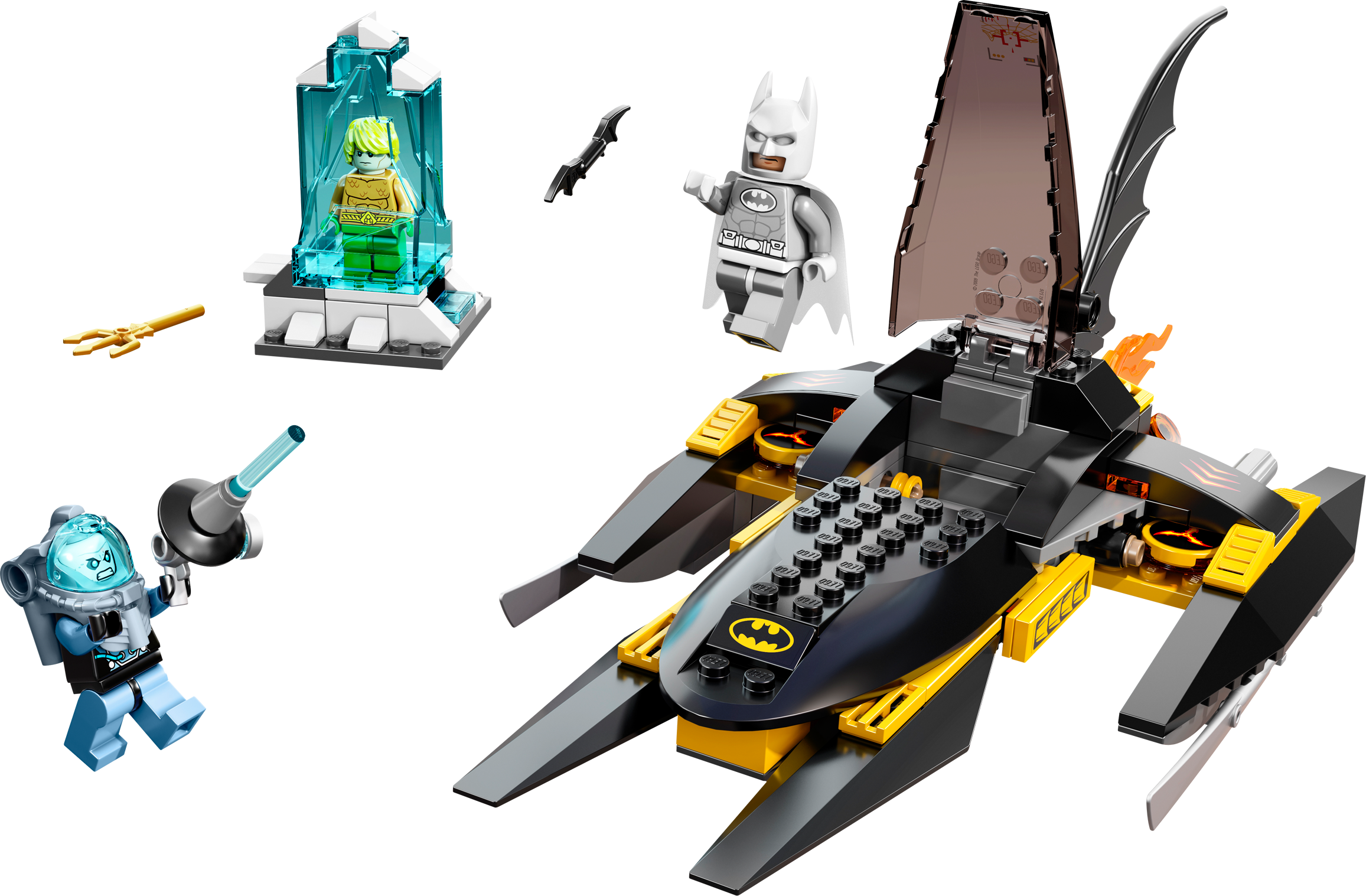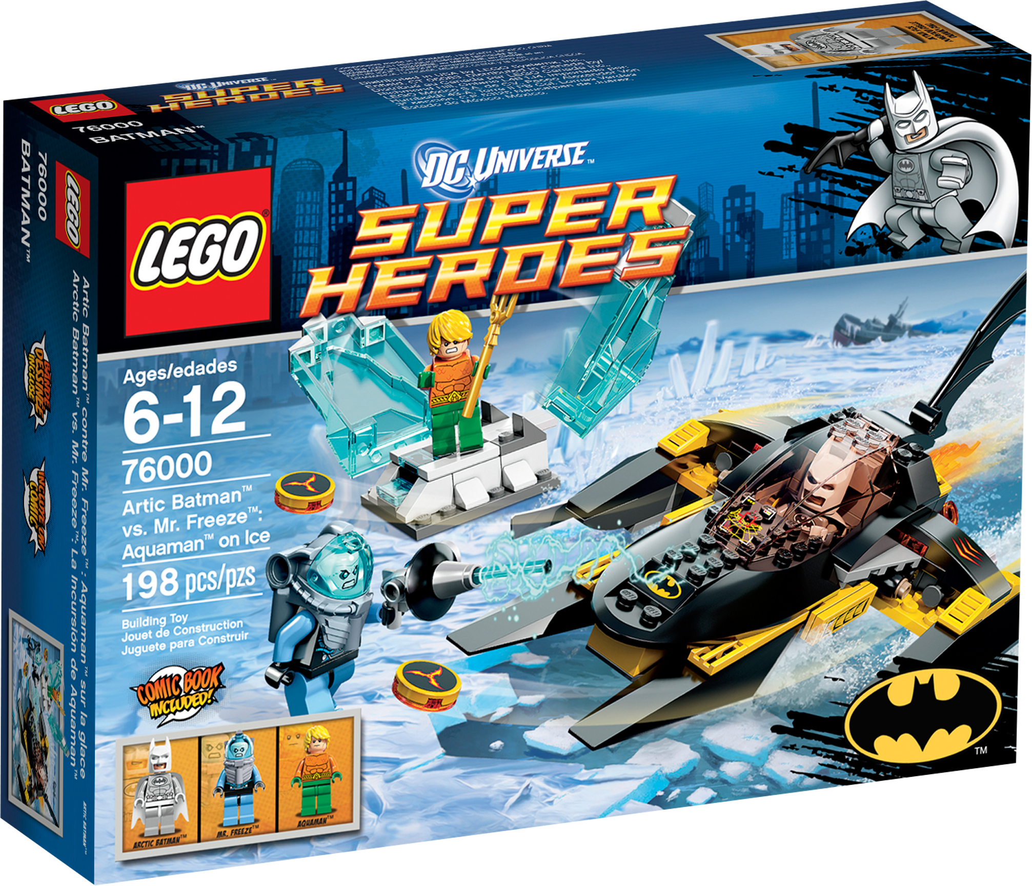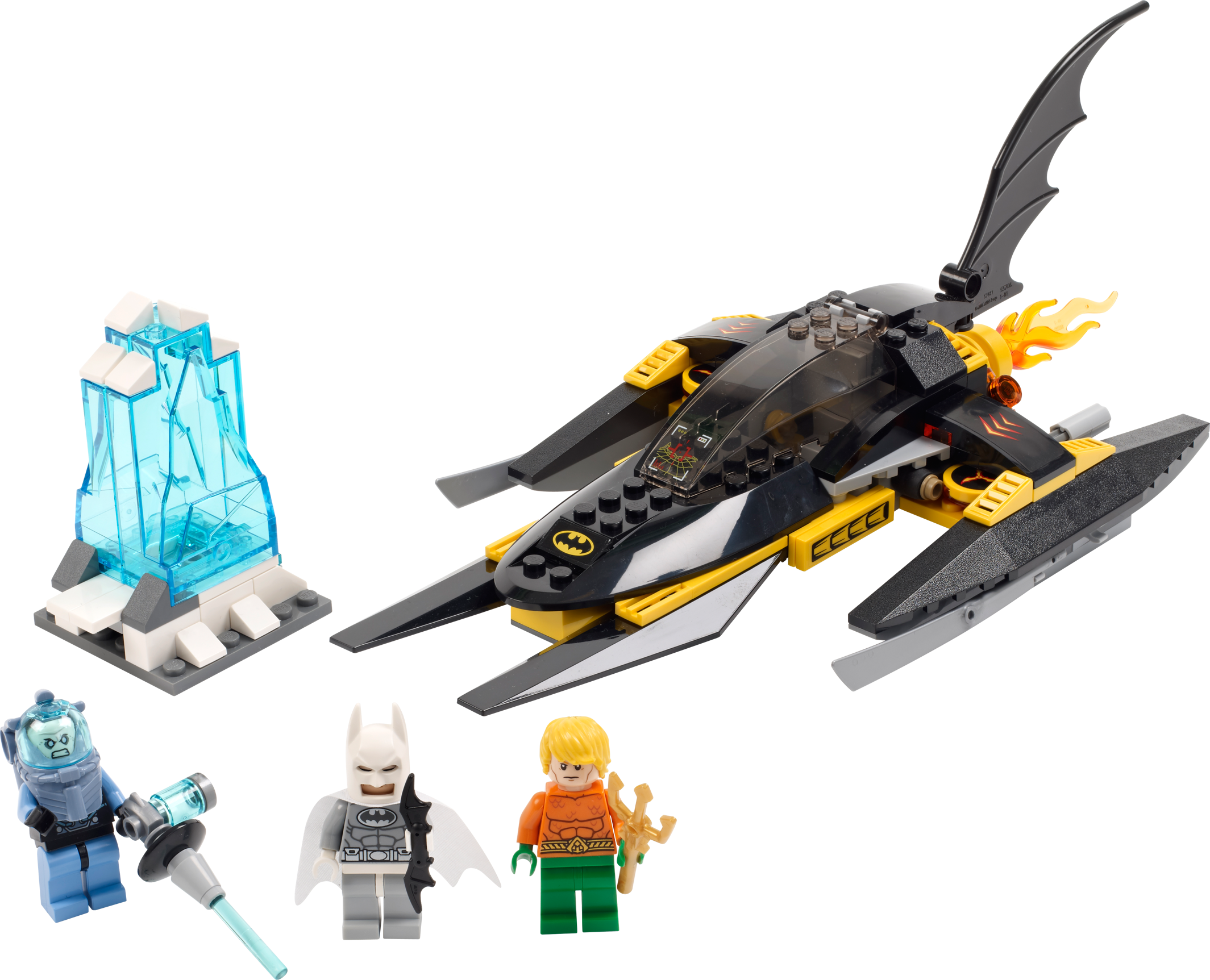 Put the heat on Mr. Freeze and come to the rescue of Aquaman! Mr. Freeze has trapped Aquaman in a block of ice and only Batman™ can release him! Speed to the rescue in the powerful Batboat with exhaust flames, deploy the missiles and release the bombs to bust that block of ice. It's time to turn the heat up on Mr. Freeze! Includes 3 minifigures: white Arctic Batman™, Mr. Freeze and Aquaman, all with assorted weapons.• Includes 3 minifigures: Arctic Batman™ in white polar suit, Mr. Freeze and Aquaman with assorted weapons• Features Batboat and exploding ice block• Batboat features flick discs, deployable bombs, batwing fin element, exhaust flames and opening cockpit• Weapons include freeze gun, trident and batarang• Shoot the discs and bombs!• Free Aquaman from the ice with the explosion function!• Collect the Arctic Batman in his white polar suit!• Batboat measures over 3"" (9cm) high, 10"" (26cm) long and 4"" (12cm) wide• Ice block measures over 2"" (7cm) high, 1"" (4cm) wide and 2"" (5cm) deep