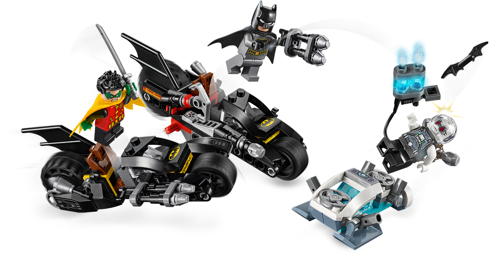 This super-hero toy playset includes 3 LEGO® minifigures: Batman™, Robin™ and Mr. Freeze™.