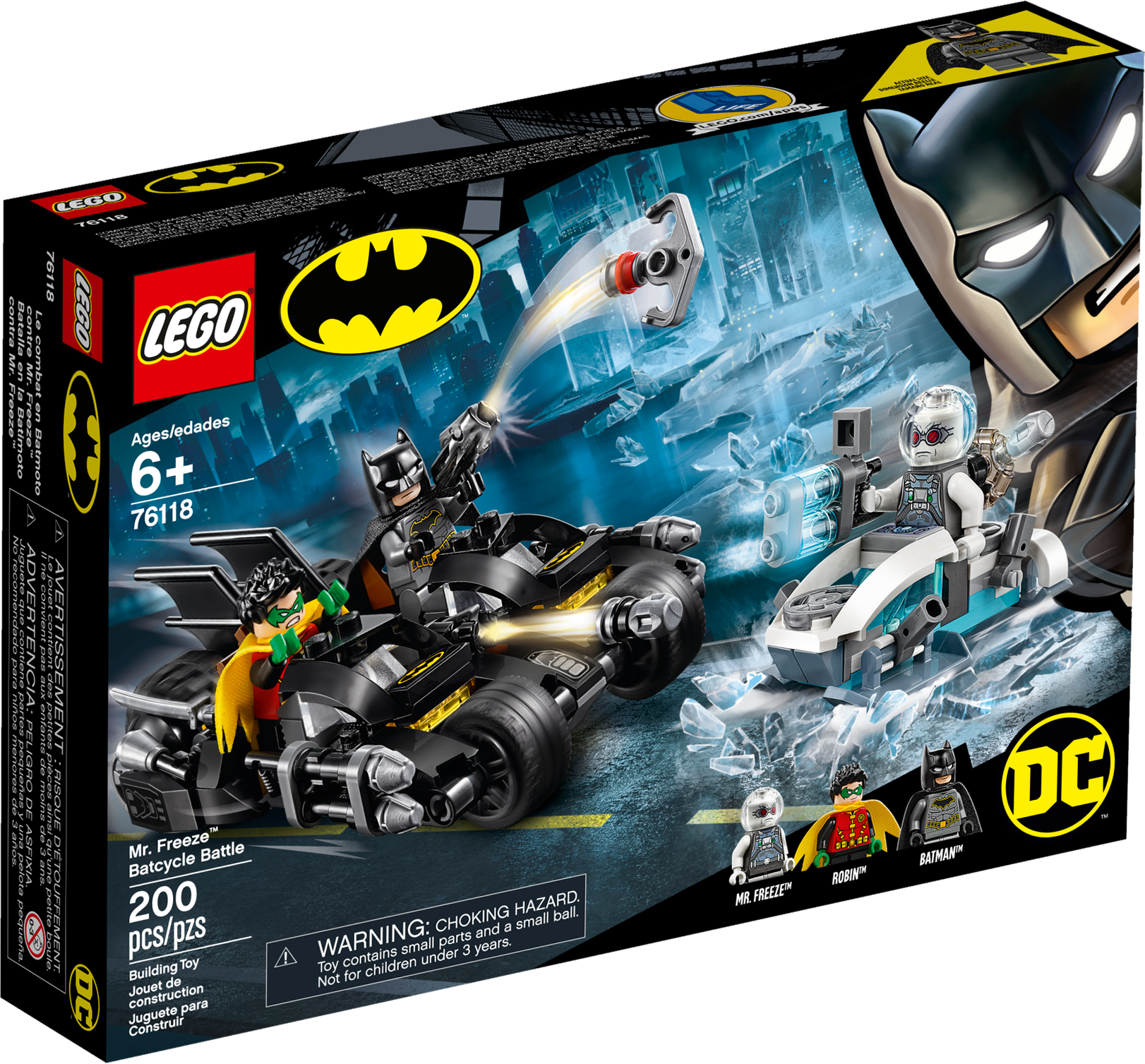 Accessory elements include Mr. Freeze’s new-for-June-2019 helmet and backpack with an attached, non-shooting freeze gun, plus 10 assorted Action Pack elements to customize builds, minifigures and weapons.
