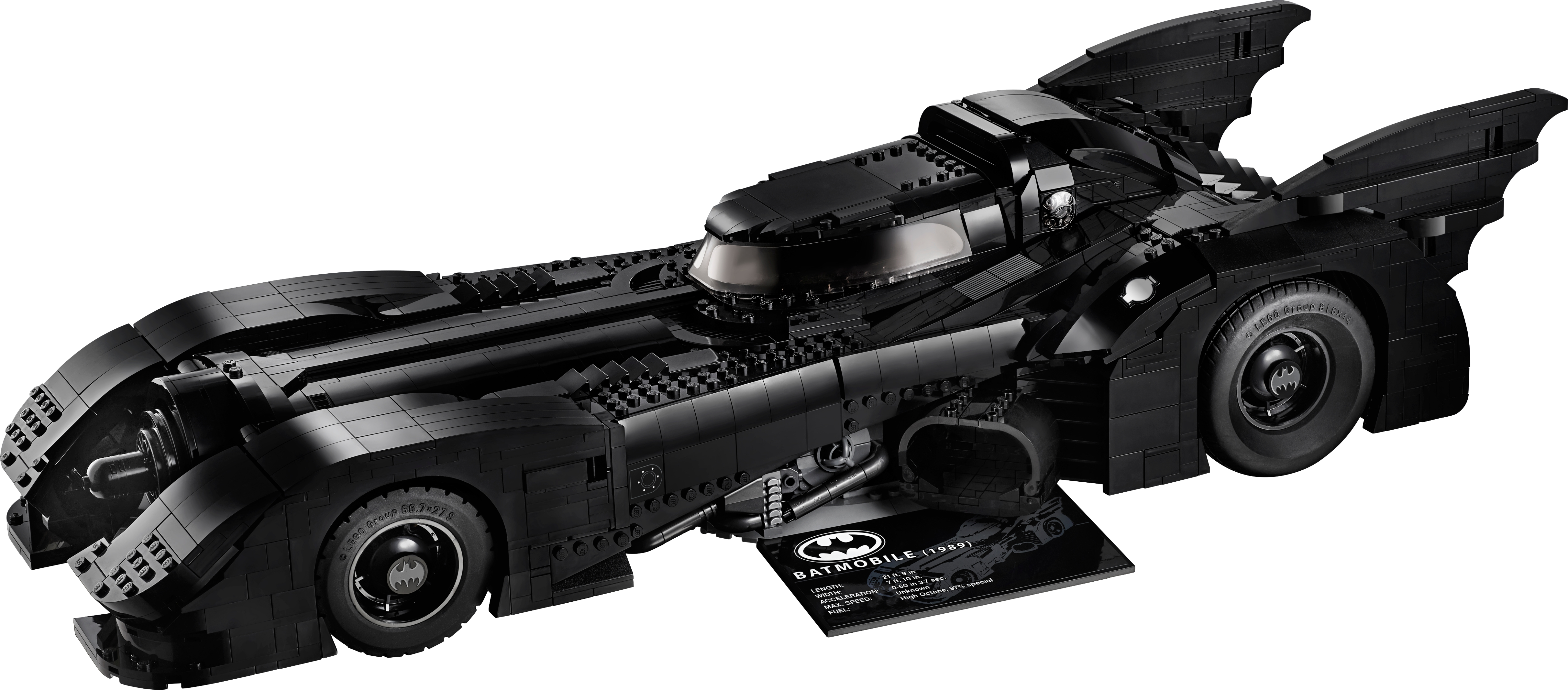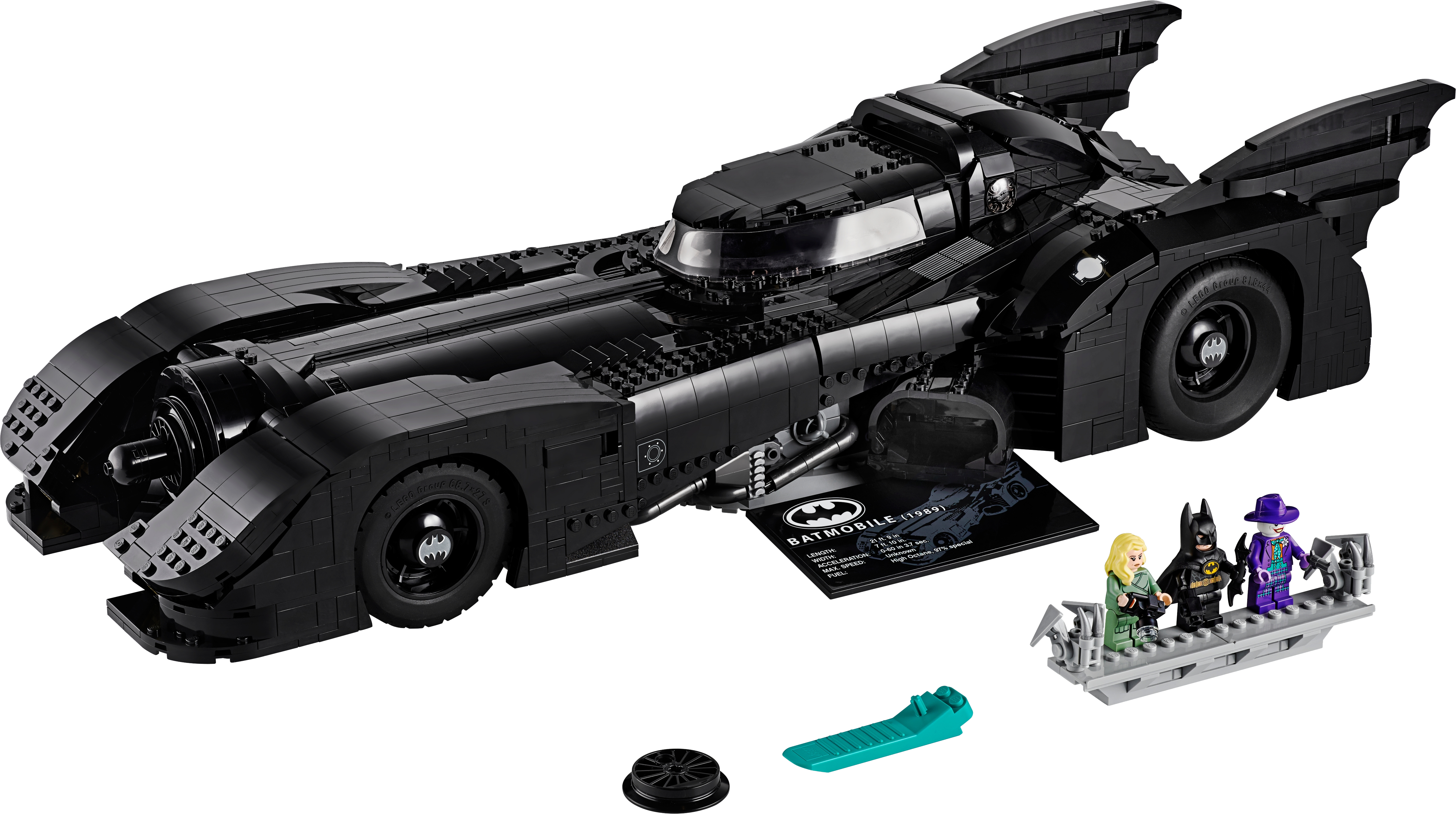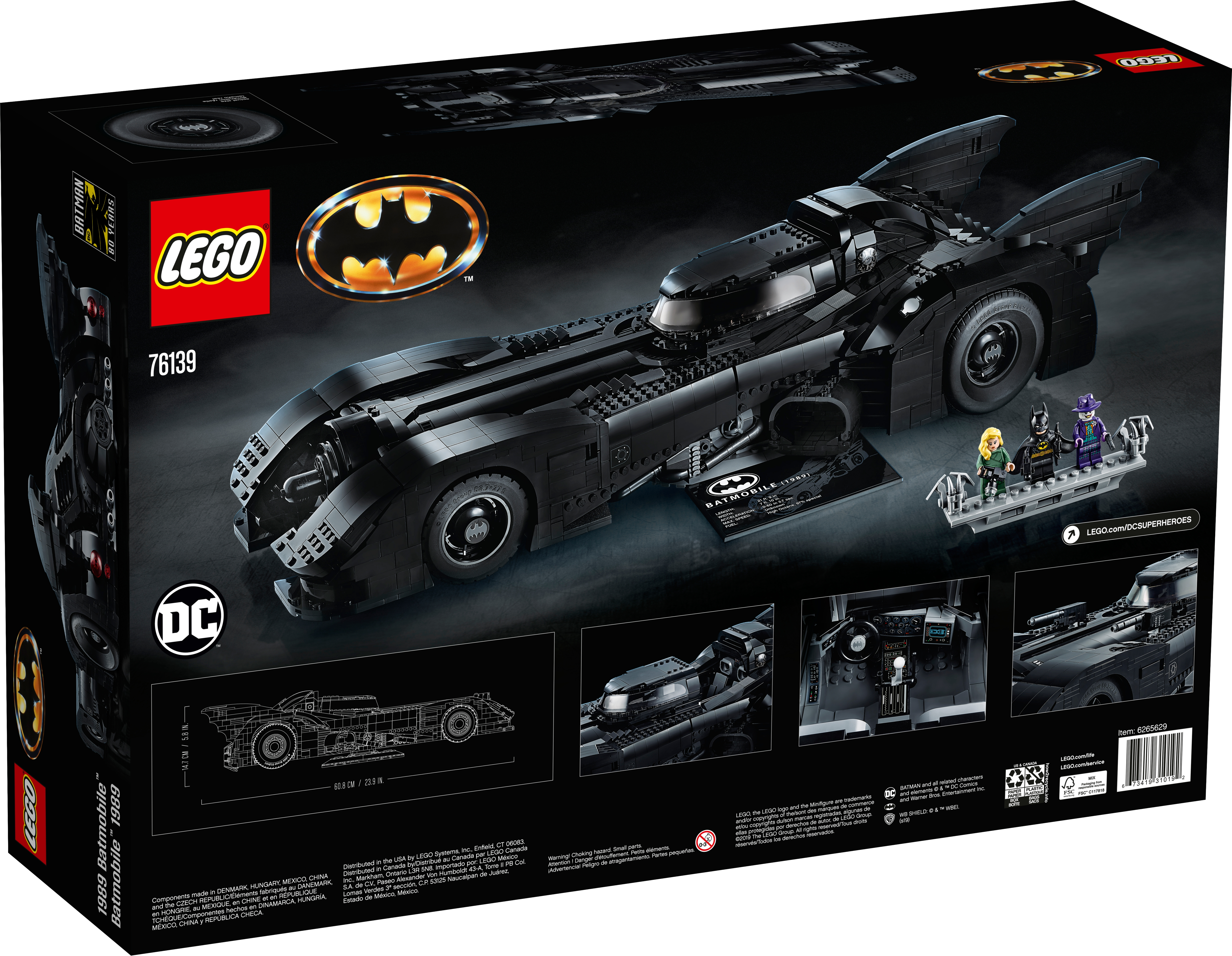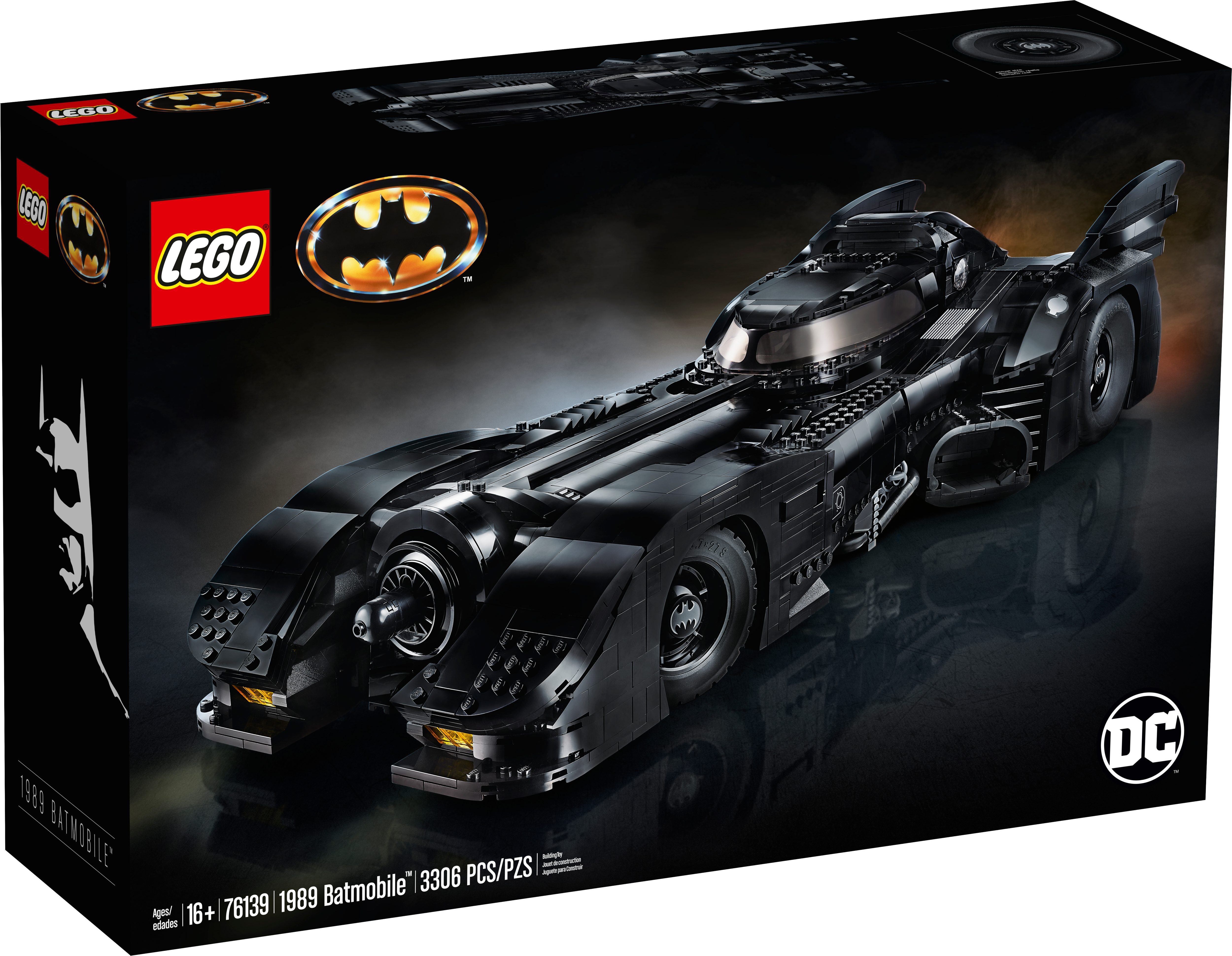 Batman™ fans and anyone who appreciates cool cars will love the LEGO® DC Batman 76139 1989 Batmobile™ model car kit for adults. This beautifully detailed LEGO brick building toy replicates the classic curves of the famous Batmobile car, as seen in the 1989 Batman movie. Measuring over 60cm long and built from 3,306 pieces, the model offers a challenging and rewarding build. Die-hard fans will love authentic features such as the slide-open cockpit with a new-for-November-2019 wraparound windshield element, 2 hidden machine guns with a pop-up function activated by turning the turbine exhaust, and decorative grappling hooks on each side of the vehicle. The Batman toy car comes with a rotating display stand (with an attached information plate with 1989 Batmobile™ statistics) for ease of viewing from any angle. A must-have for all Batman fans, this super-hero toy construction set also includes 3 new-for-November-2019 minifigures—Batman with a cape that matches his 1989 movie outfit, The Joker™ and Vicki Vale™—plus a brick-built minifigure display stand. This super-hero toy includes 3 new-for-November-2019 LEGO® minifigures: Batman™ (new torso decoration), The Joker™ (new face and torso decoration) and Vicki Vale™ (new torso and legs), plus a brick-built minifigure display stand. This LEGO® brick version of the 1989 Batmobile™ features a slide-open cockpit with a new-for-November-2019 wraparound windshield element, 2 minifigure seats, a steering wheel, stick shift and dashboard stickers, 2 hidden, non-shooting machine guns under the bonnet with a pop-up function activated by rotating the turbine exhaust, 2 decorative grappling hooks, wheel trims with the Bat logo and specially designed tyres for the front wheels, batwings and other iconic design details. This LEGO® set also includes a brick-built rotating display stand for the Batman™ toy car with an attached information plate with 1989 Batmobile™ statistics. Weapons include Batman’s Batarang and a gun and The Joker’s gun. Accessories include Batman’s new-for-November-2019 cape that matches his 1989 movie outfit and Vicki Vale’s brick-built camera. This LEGO® Batman™ model car kit for adults includes over 3,300 pieces and makes a wonderful nostalgic holiday gift or birthday present for any Batman fan. 1989 Batmobile™ measures over 4” (12cm) high, 23” (60cm) long and 8” (22cm) wide.