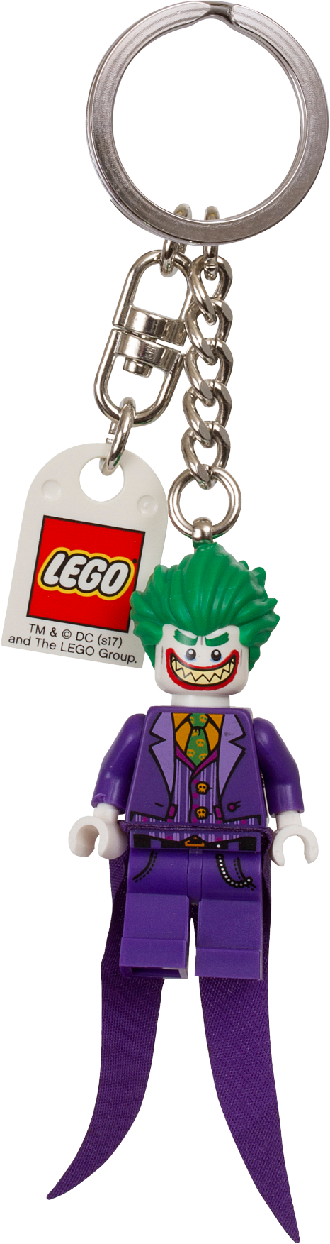 Attach this colorful key chain to your keys or backpack and take a Super-Villain with you on your daily adventures. Featuring The Joker™ minifigure with a durable metal ring and chain, this makes a villainous accessory for fans of THE LEGO® BATMAN MOVIE. Features The Joker™ minifigure attached to a durable metal ring and chain. Attach it to your keys or backpack. Minifigure is not detachable from metal chain.