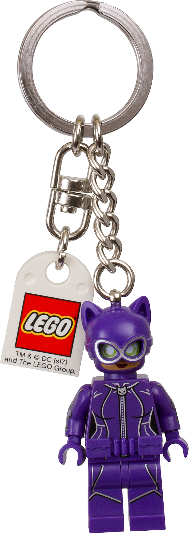 Gear up for awesome adventures when you attach THE LEGO® BATMAN MOVIE Catwoman™ Key Chain to your keys or backpack. Featuring a Catwoman minifigure with a sturdy metal ring and chain, this makes a fun accessory for all fans of THE LEGO BATMAN MOVIE.Features a Catwoman™ minifigure attached to a durable metal ring and chain.Attach it to your keys or backpack.Minifigure is not detachable from metal chain.