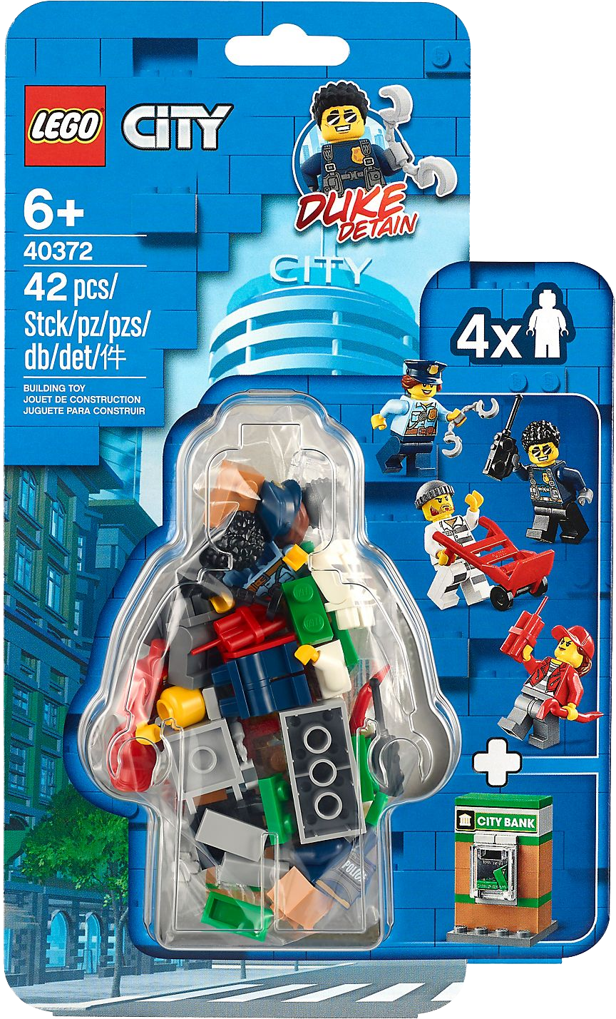 Kids can ramp up the action with this LEGO® City Police MF Accessory Set (40372), including LEGO City Adventures TV series hero Duke DeTain, a police officer and 2 crook minifigures. Fans of the TV series can enjoy creating and reenacting scenes from the show. And with a bank ATM setting, crook's sack truck, plus walkie-talkie, crowbar and dynamite accessories, the scene is set for hours of imaginative, crook-catching fun.