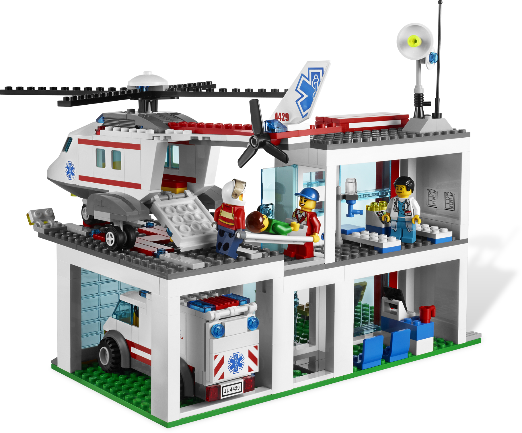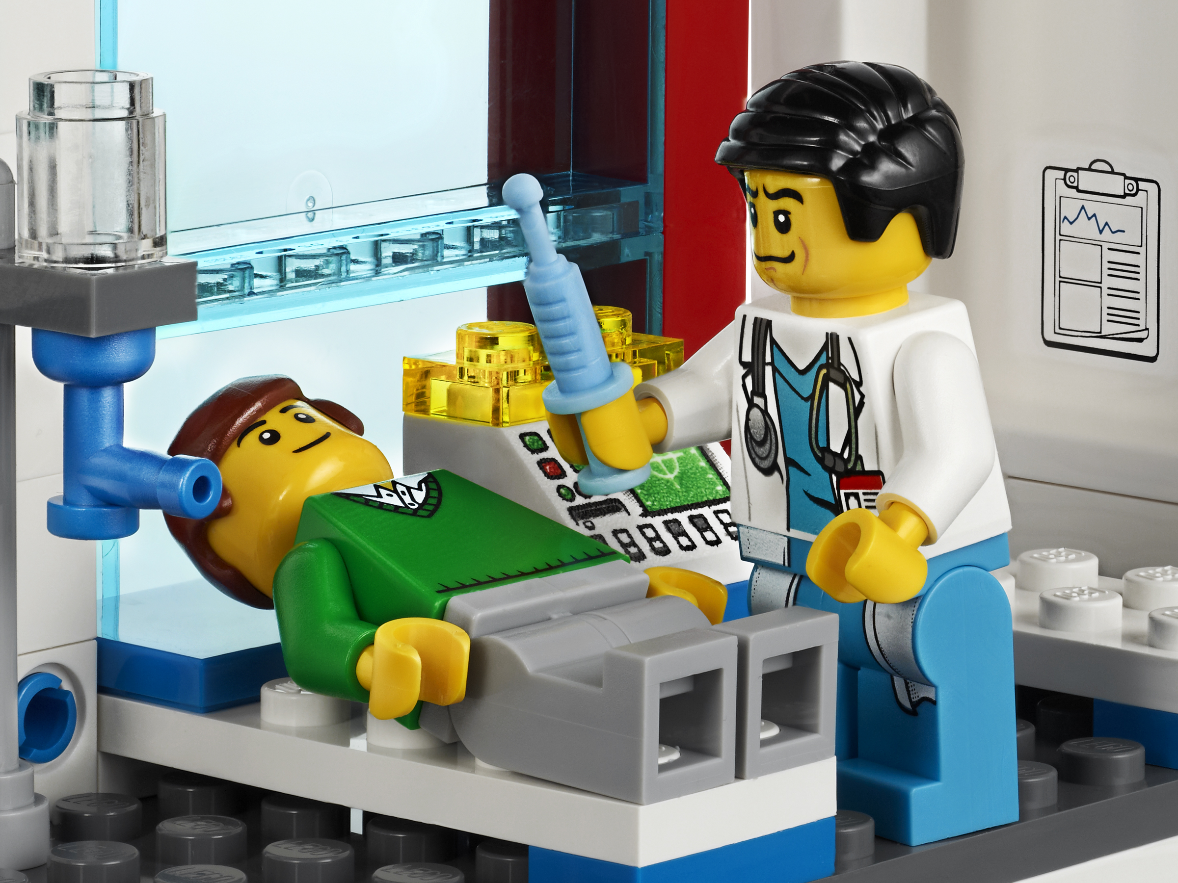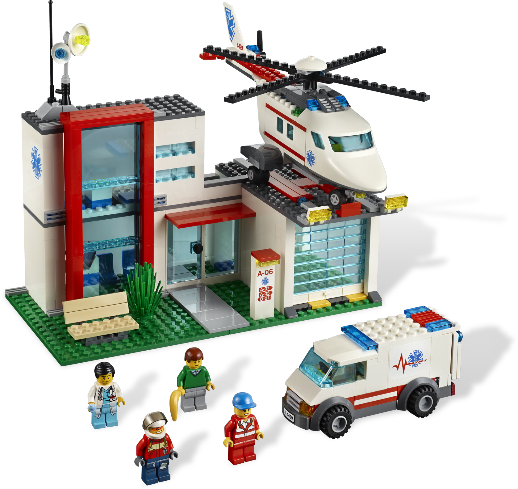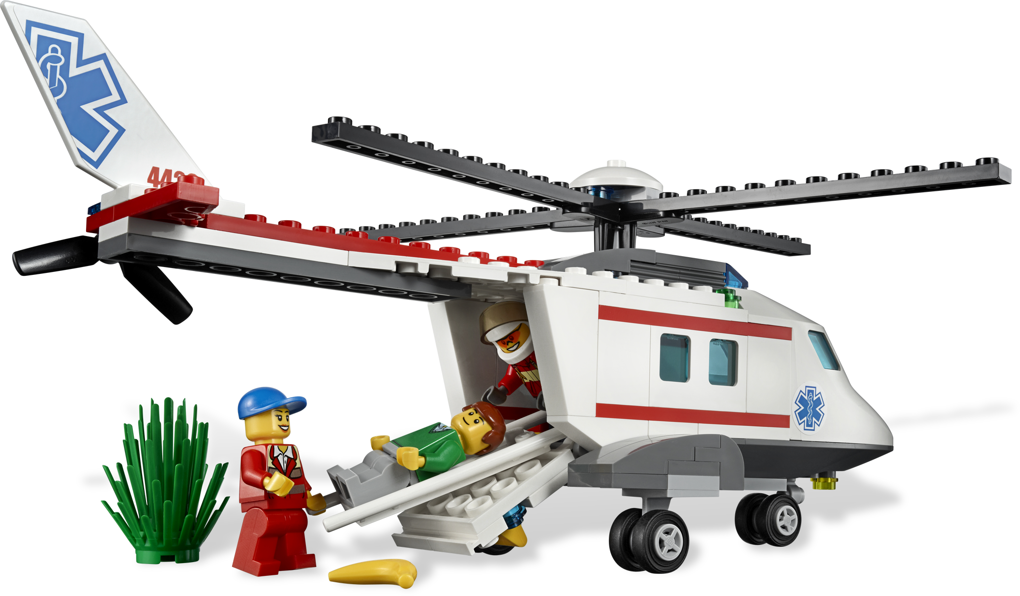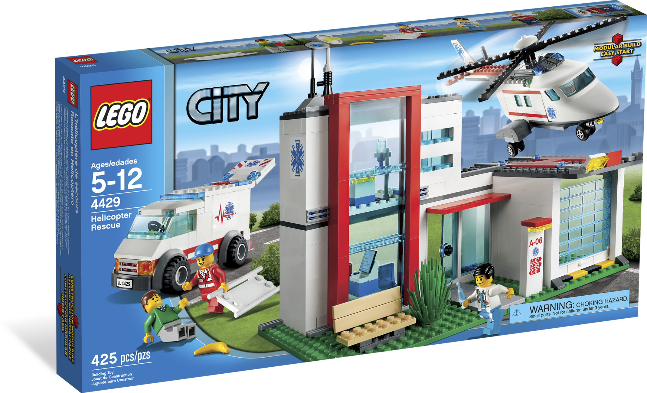 Rescue the patient and treat him at the hospital! It's a building emergency! The minifigure has slipped on the banana peel and needs help from the LEGO® City rescue team. If the speedy ambulance can't make it in time, the rescue helicopter will make sure that he gets to the hospital for treatment by the doctor. There's always someone to rescue in LEGO City! Includes 4 minifigures: helicopter pilot, ambulance driver, doctor and patient.• Includes 4 minifigures: helicopter pilot, ambulance driver, doctor and patient• Features hospital, rescue helicopter and ambulance• Doctor's syringe and banana peel also included• Hospital features patient ward, 2 beds, helipad, garage and more• Rescue helicopter features spinning rotors• Ambulance features opening rear door and stretcher• Rescue the patient!• Land on the helipad!• Load the stretcher onto the ambulance!• Measures over 3” (10cm) high, 3” (8cm) wide and 9” (25cm) long• Hospital measures over 9” (22cm) high, 9” (22cm) wide and 6” (16cm) deep• Ambulance measures over 1” (5cm) high, 1” (5cm) wide and 4” (12cm) long