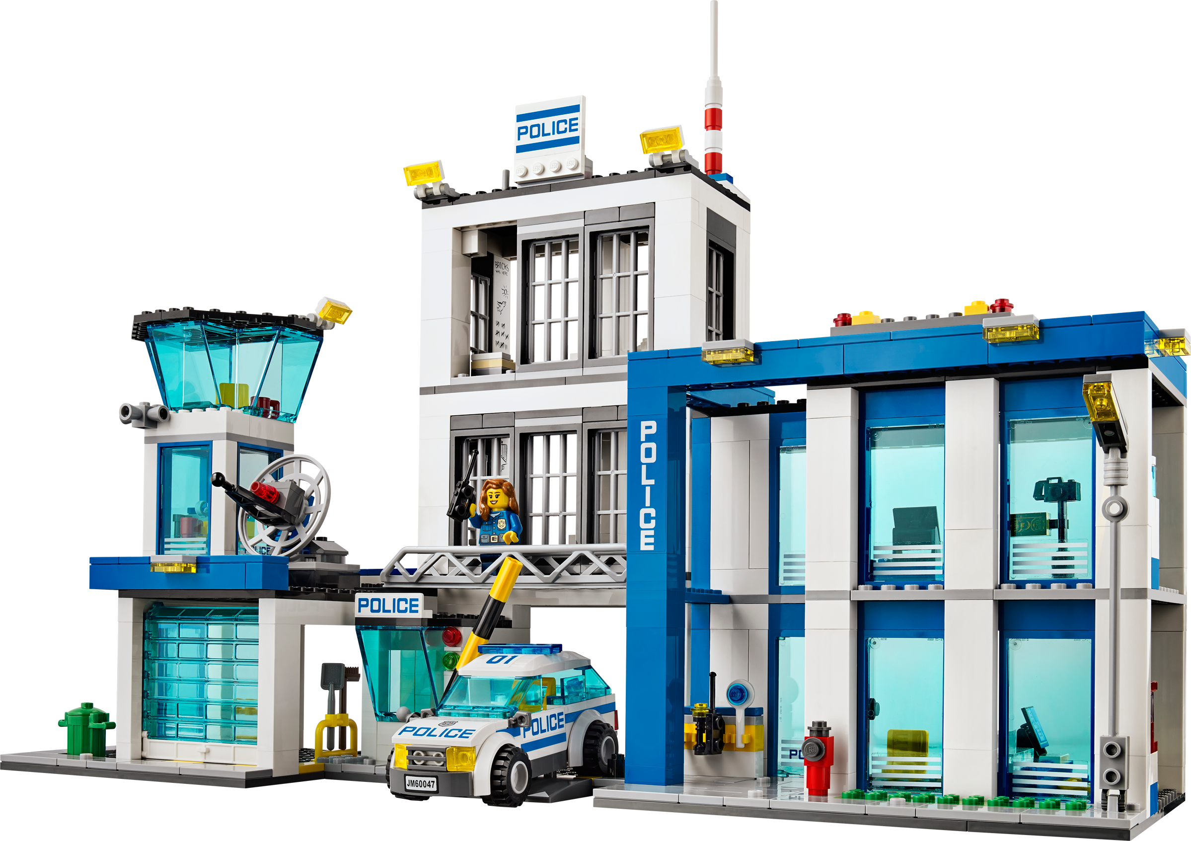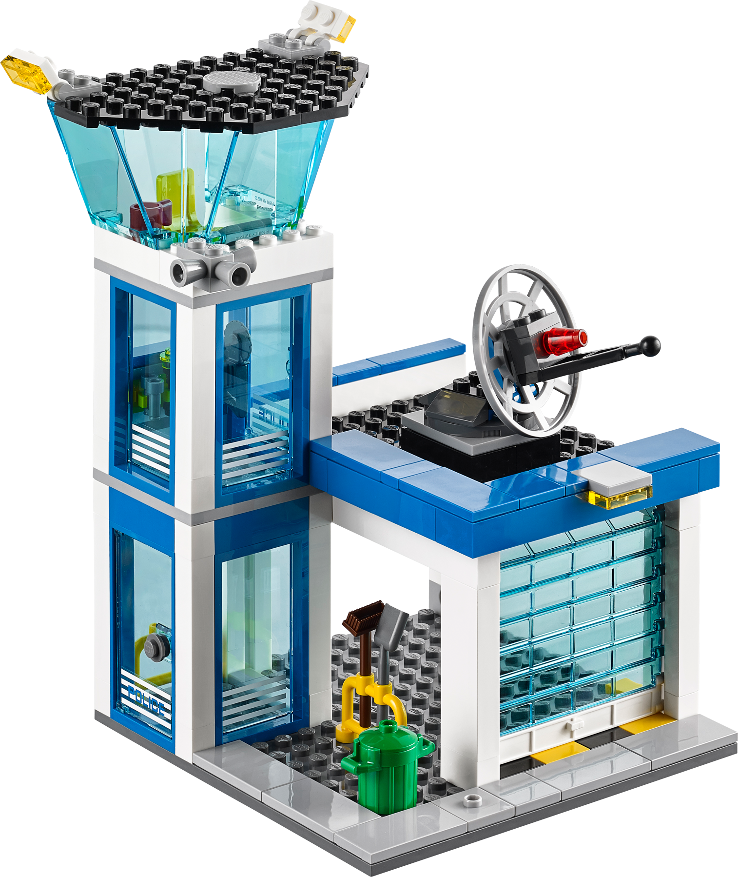 Catch the crooks breaking out of LEGO® City Police Station! Sound the Police Station alarm! The tow truck has yanked the jail window clean off with the chain and is helping the prisoner escape! Another prisoner is making off through the roof hatch, while another has dug a secret escape route through the toilets! There’s no time to lose! Take off in the police helicopter and spot the runaways from the sky and then zoom after them in the police car and motorbike before they get away for good! Includes 7 minifigures with assorted accessories: 3 policemen, a policewoman and 3 crooks.Includes 7 minifigures: 3 policemen, a policewoman and 3 crooks with assorted accessoriesFeatures a police station with offices, control tower, rotating radar dish, a garage with opening door, lifting barrier, helipad, a roof hatch and 2 jail cells with 4 break-out windows, a toilet, bed and 2 surveillance camerasVehicles include a police car, police motorbike, helicopter with 2 side compartments and a crook’s tow truck with a grappling hookAlso includes a police dogAccessories include 4 handcuffs, 3 walkie talkies, 2 crowbars, a flashlight, a pair of binoculars, 2 balls and chains, 3 coffee mugs, 2 bank notes, a back pack, megaphone and a laptopRip out the jail doors using the grappling hook on the crook’s truckFlip down the toilets for a secret escape routeFind the hatch and make a rooftop escapeCatch the runaway prisoners!Police station measures over 12” (32cm) high, 17” (45cm) wide and 6” (16cm) deepPolice car measures over 1” (5cm) high, 4” (11cm) long, and 1” (5cm) widePolice helicopter measures over 3” (8cm) high, 7” (20cm) long, and 1” (5cm) widePolice motorbike measures over 2” (7cm) high, 2” (6cm) long, and 1” (4cm) wideCrook’s tow truck measures over measures over 2” (6cm) high, 4” (12cm) long, and 1” (5cm) wide