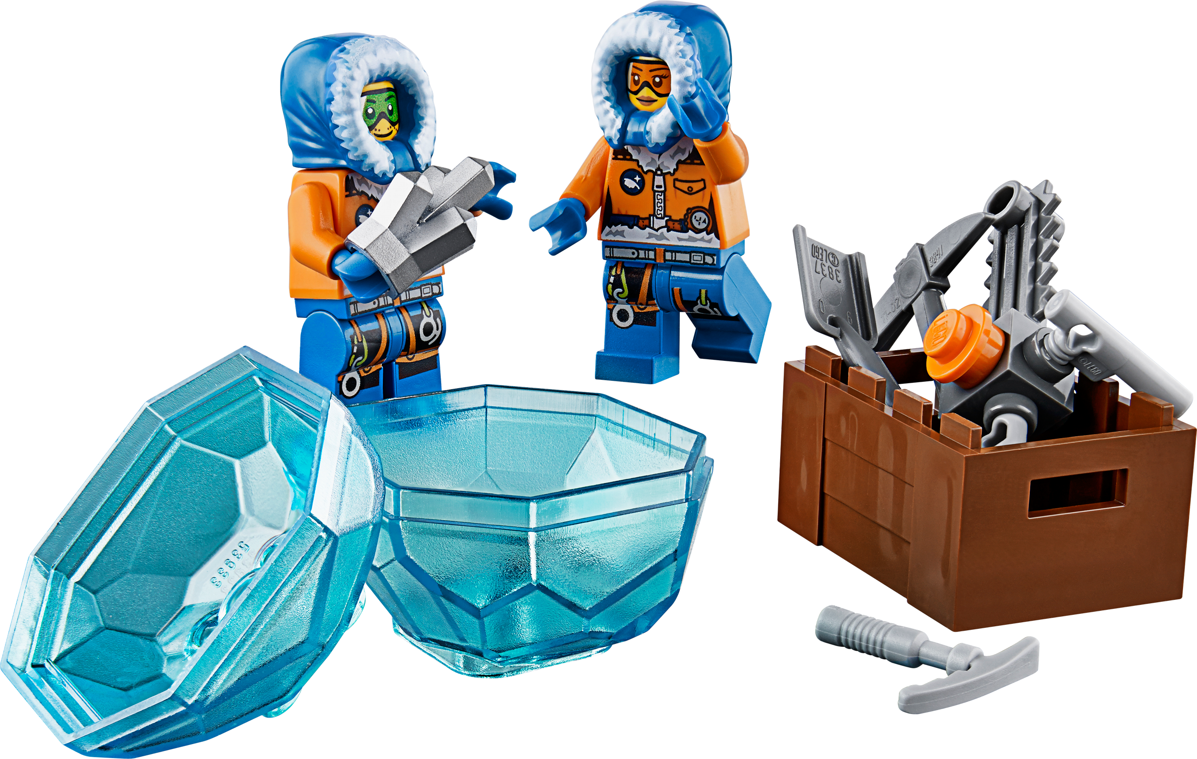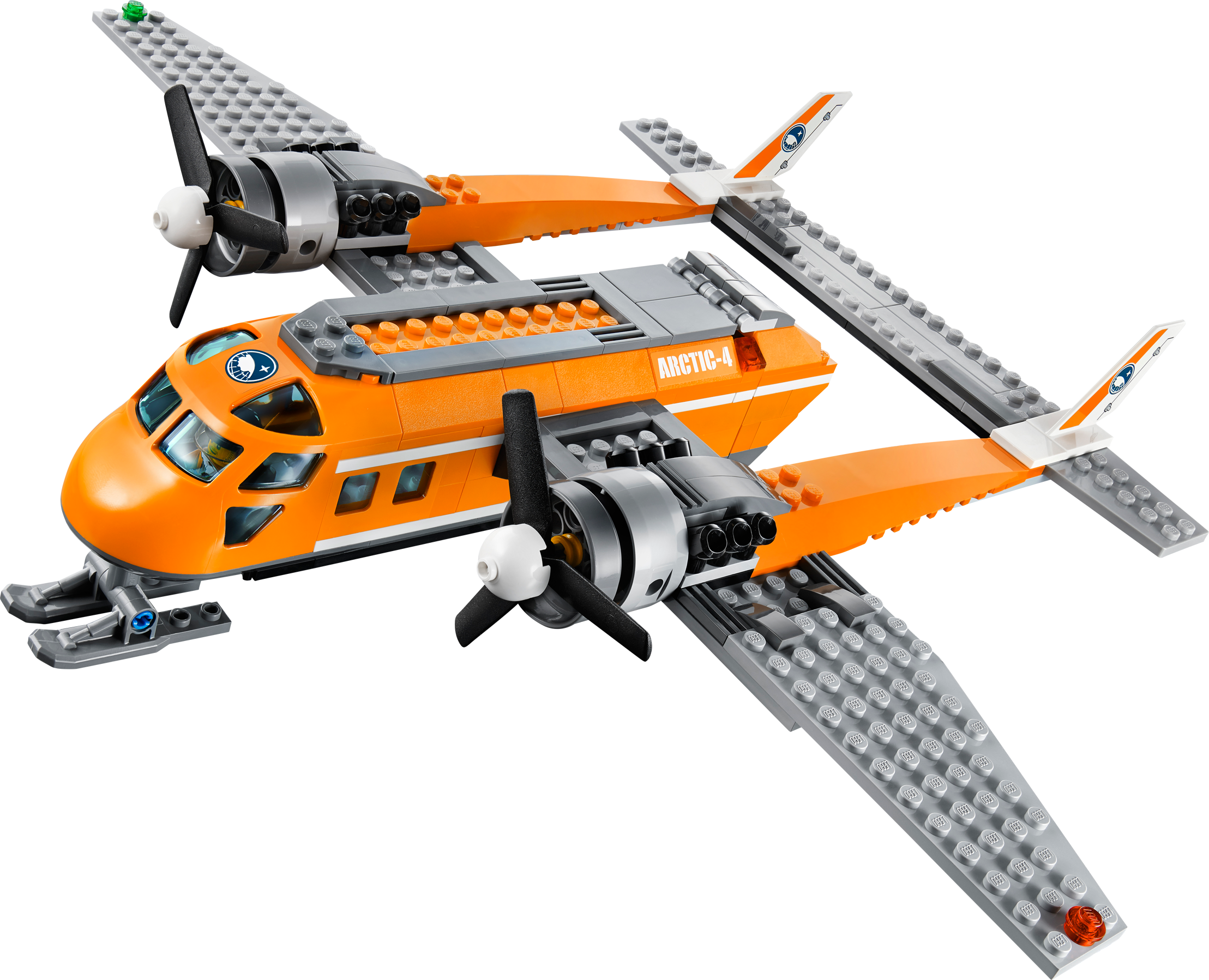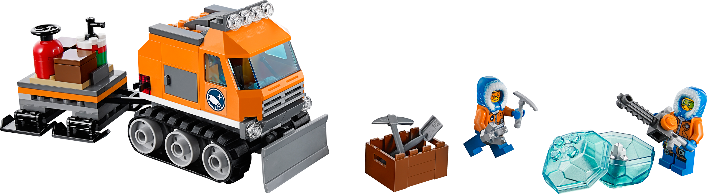 Fly out supplies to the explorers with the LEGO® City Arctic Supply Plane! Fly out important supplies to the explorers in the ice-cool LEGO® City Arctic Supply Plane! This aircraft features an opening dual cockpit with computer dashboard, 2 huge spinning propellers, an opening rear cargo compartment and skis for a smooth landing. On the ground, load the pallet containing the gas cylinder, oil drum and boxes onto the trailer and clip onto the powerful utility vehicle. Equipped with many lights, cool rubber tracks, a huge snow-moving shovel plus two small trunks for tools, this vehicle can cope with the harshest Arctic conditions to transport the cargo to base camp. Includes 3 minifigures: 2 explorers and a pilotArctic Supply Plane features an opening dual cockpit with computer dashboard, 2 huge spinning propellers, opening rear cargo compartment and skisUtility vehicle features an opening driver’s cabin, lights, rubber tracks, large front snow shovel, 2 small trunks, pickaxe and coffee mug, plus a detachable trailer with skisAlso includes a pallet with 2 boxes, gas cylinder and an oil drum, a chainsaw, translucent blue ice block with a crystal and a box with a crystal elementAccessories include Arctic explorer hoodsPlace 2 minifigures at the controls in the dual cockpitSpin the rotors and launch into the skyMake a smooth landing on the skisUnload the cargo onto the utility vehicle’s trailer and drive to base camp!Arctic Supply Plane measures over 3” (9cm) high, 12” (32cm) long and 15” (39cm) wideUtility vehicle measures over 3” (8cm) high, 3” (9cm) long and 2” (6cm) wideTrailer measures over 1” (4cm) high, 3” (9cm) long and 2” (5cm) wideCombine with the 60036 Arctic Base Camp for the ultimate Arctic research and discovery mission