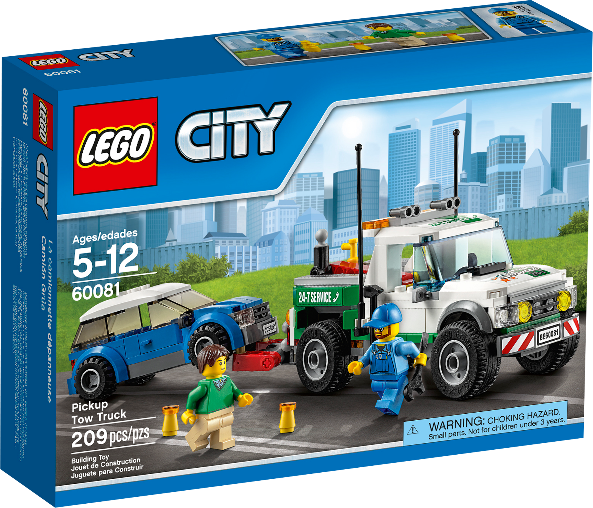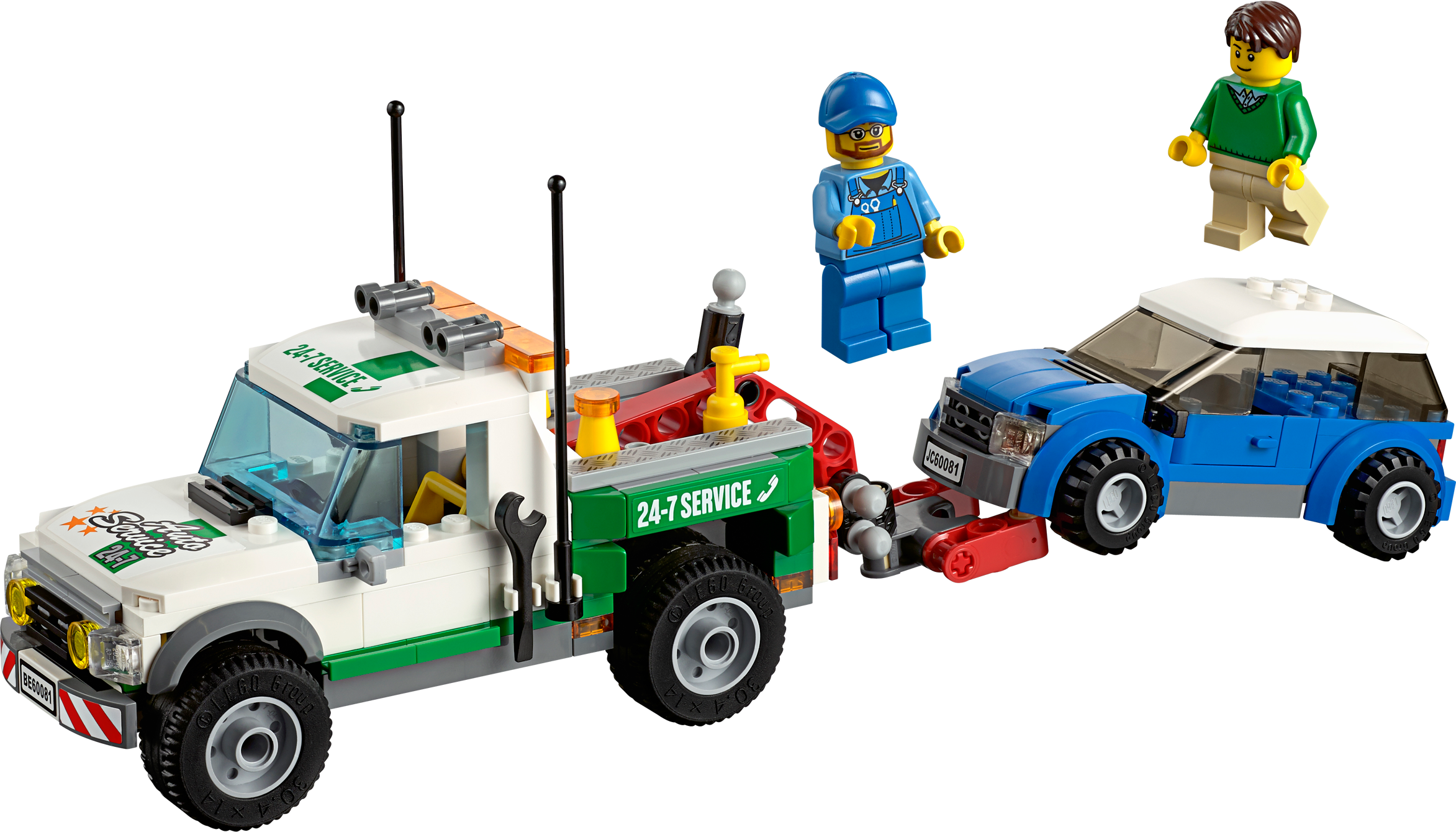 Oh no… the car has broken down! Another job for the LEGO® City roadside recovery service! Jump aboard the Pickup Tow Truck, turn on the warning beacon and race to the stranded driver’s assistance. If a quick repair isn’t possible, hook up the broken down vehicle, operate the hoist to lift its front wheels from the road and tow it to the nearest repair shop. All in a day’s work for a Pickup Tow Truck driver! Includes 2 minifigures with assorted accessories: a motorist and a mechanic.