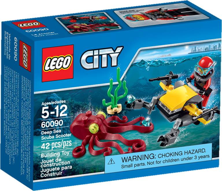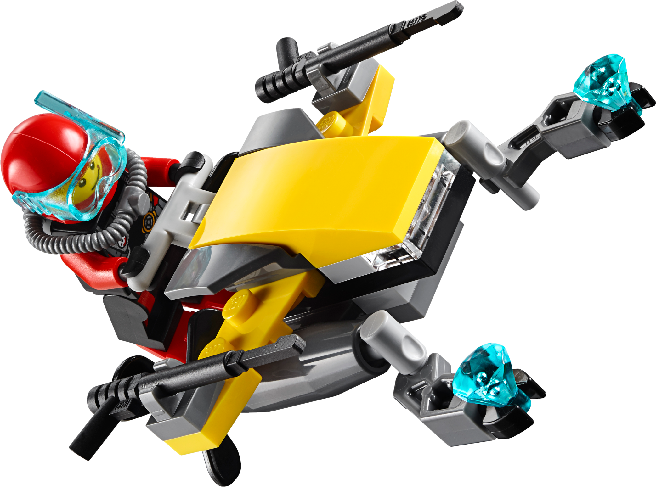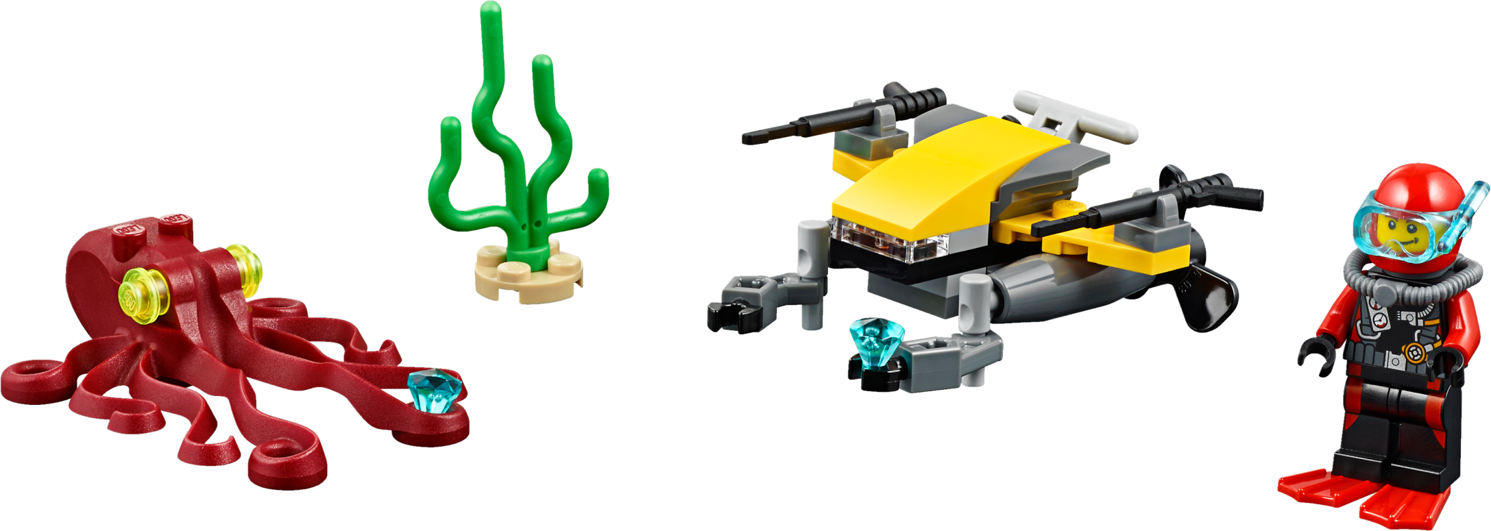 Dive for lost treasure with the Deep Sea Scuba Scooter! Join the scuba diver on a deep-sea exploration for lost treasure with the Deep Sea Scuba Scooter! Steer the awesome scuba scooter through the clear water and down to the depths. Then use the robotic arms to grab the precious crystal, but watch out for the giant octopus lurking in the seaweed! It also has a crystal gripped tightly in one of its long tentacles! Can you retrieve the precious crystal? Includes a scuba diver minifigure. Includes a scuba diver minifigure Features a scuba scooter with spinning propellers, 2 robotic arms and 2 harpoons, octopus, seaweed and 2 crystals Search for sunken treasure Take control of the awesome scuba scooter Grab the crystals with the scuba scooter’s robotic arm Watch out for the huge octopus! Scuba scooter measures over 1” (3cm) high, 2” (7cm) long and 2” (6cm) wide
