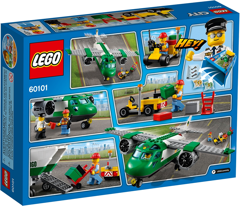 Load up the Cargo Plane and get ready to fly! Help the pilot and the airport worker get the packages ready for delivery! Use the hand truck to load the packages on the airport service car and drive them to the back of the plane for loading. Fit all the packages in and then make sure the back is closed before letting the pilot know he's good to go. Take off for some fun package delivery in LEGO® City! Includes 2 minifigures: a pilot and an airport worker. Features a cargo plane with a back hatch that opens, turning nosewheel, big engines and an accessible cockpit. Also includes an airport service car with space for packages and a detachable hand truck. Accessory elements include a walkie-talkie and 4 packages. Use the hand truck to load the packages onto the service car. Open the back hatch of the plane to load the packages in. This set offers an age-appropriate building experience for ages 5 and over. Cargo Plane measures over 3” (10cm) high, 9” (24cm) long and 10” (27cm) wide. Airport service car measures over 1” (4cm) high, 2” (6cm) long and 1” (3cm) wide.