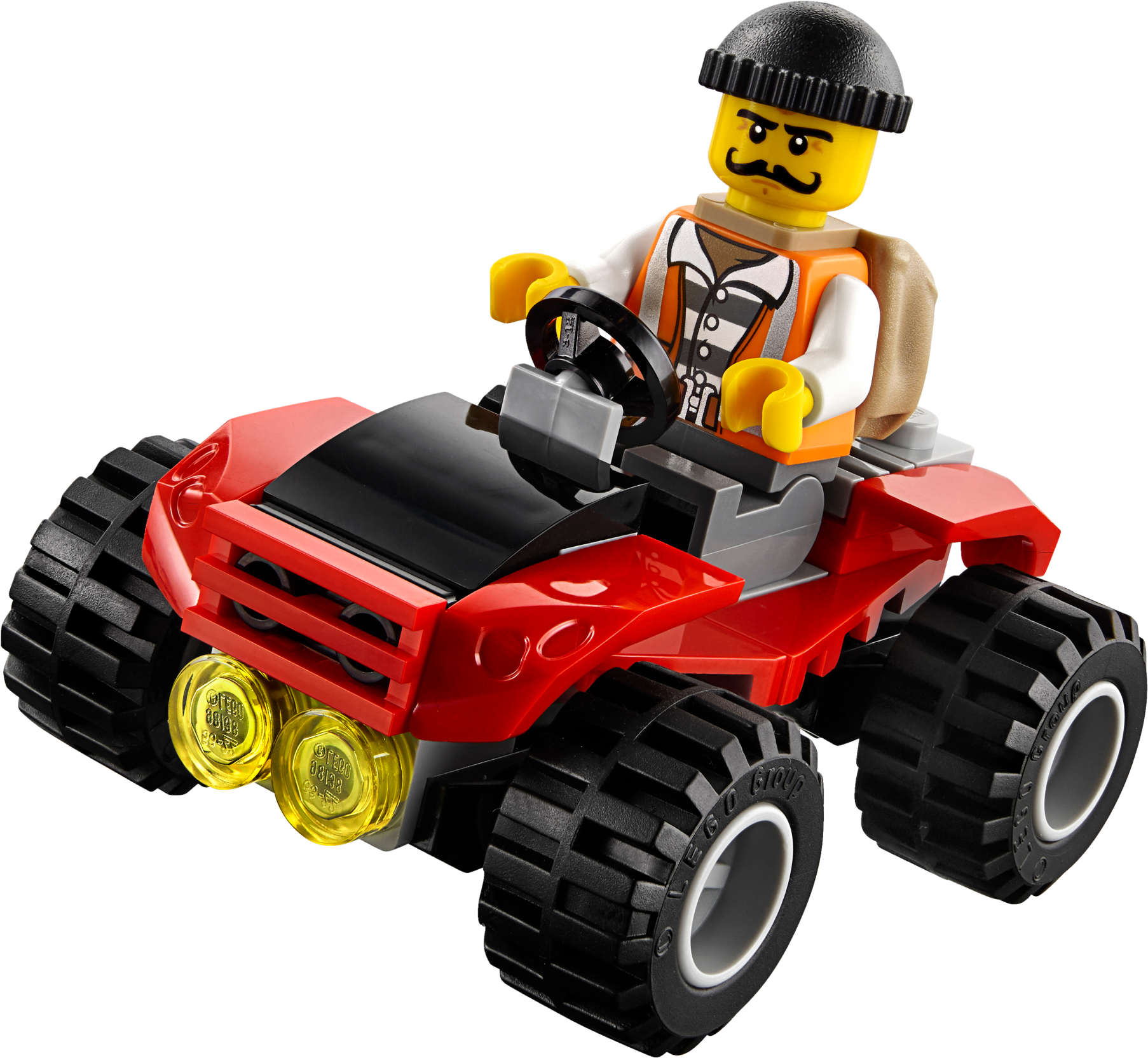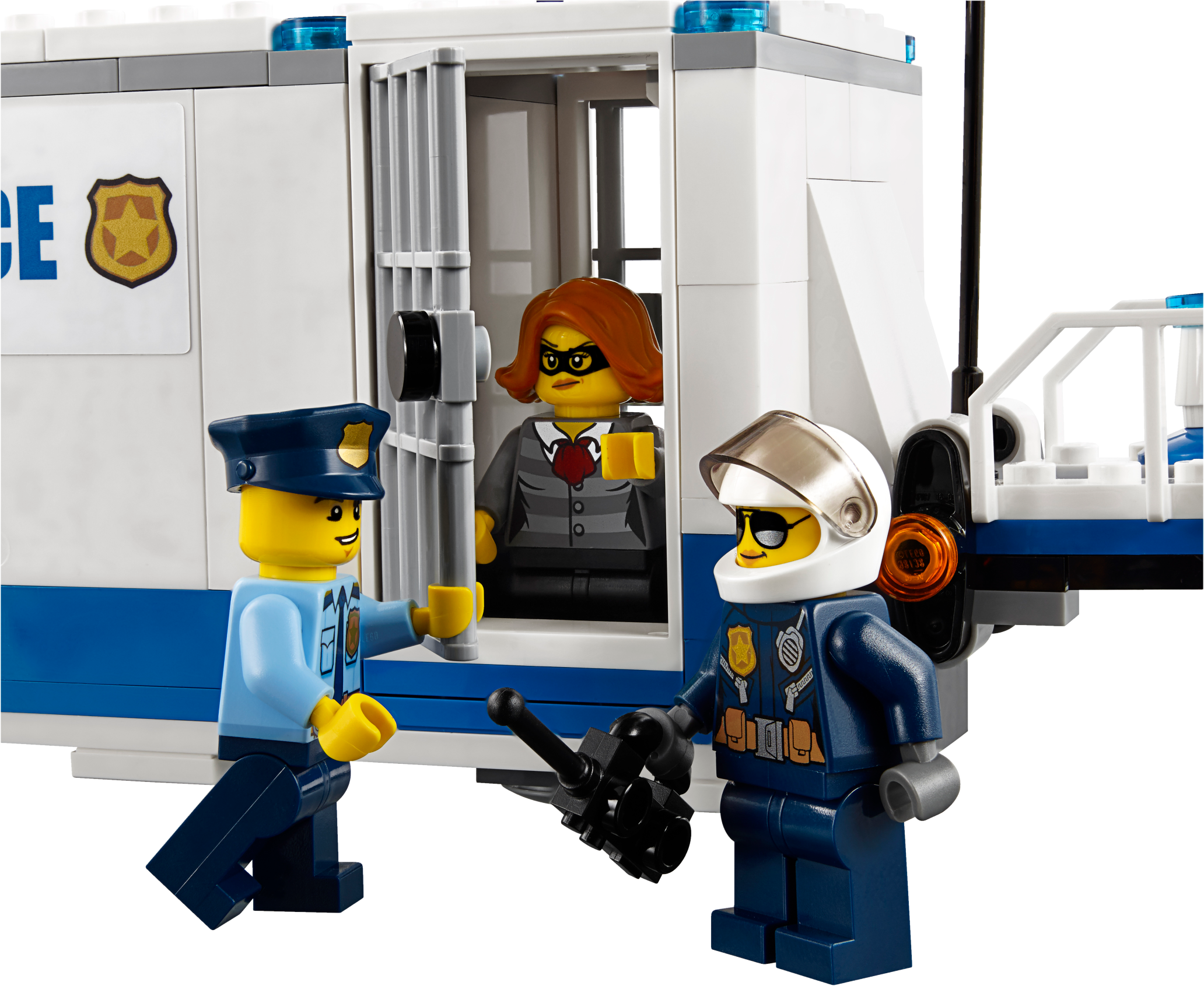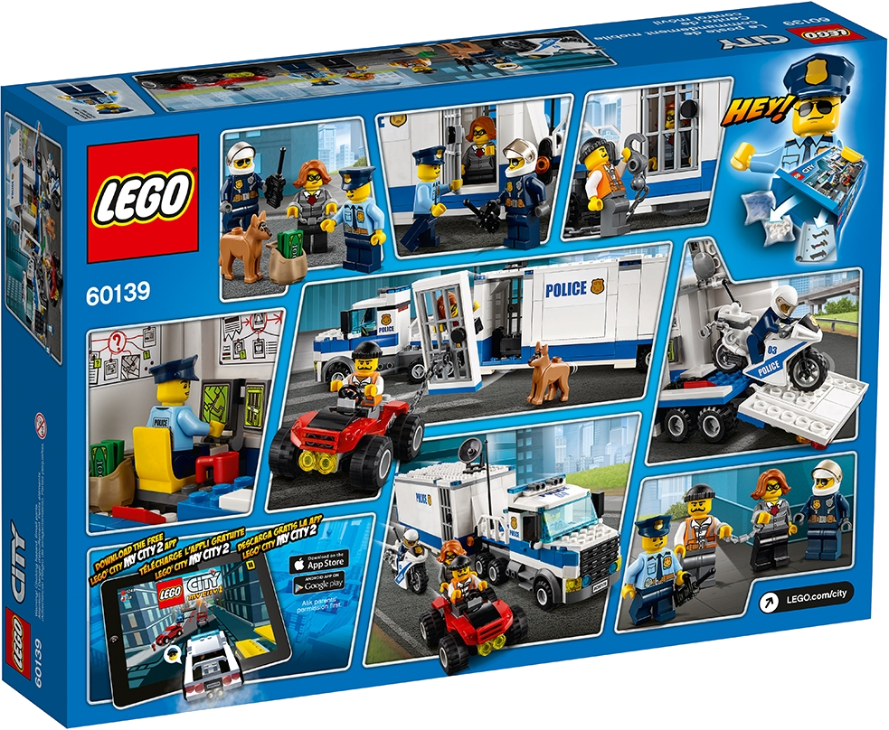 Be part of the action with the LEGO® City police as they stop the crook’s escape from the jail cell in the Mobile Command Center, featuring a detachable truck cab, room for two minifigures, monitoring room with screens, satellite dish, opening roof, side doors and rear ramp, storage area for the motorbike and tools and a jail cell breakout feature, plus the crooks’ ATV. Includes four minifigures and a police dog figure. Includes four minifigures: two police officers and two crooks, plus a police dog figure. Features a Mobile Command Center, police motorbike and crook’s ATV. Mobile Command Center features a detachable cab, jail cell with breakout feature and room for two minifigures, monitoring room with screens, satellite dish on the roof, desk, seat and storage area for the motorbike and tools at the back of the trailer. Crooks' ATV features a chain and hook. Attach the ATV's hook and chain to the jail cell door bars to break out the crook. Set up the Mobile Command Center and unload the police motorbike. Catch the crooks and lock them back up in the cell. Accessory elements include a mug, backpack, two money bills, two cones, wrench, walkie-talkie, lollypop stop sign and a set of handcuffs. This set offers an age-appropriate build and play experience for ages 6-12. Truck cab measures over 3” (8cm) high, 5” (13cm) long and 2” (7cm) wide. Mobile Command Center measuresover 4” (11cm) high, 9” (23cm) long and 2” (6cm) wide. ATV measures over 1” (3cm) high, 2” (7cm) long and 1” (5cm) wide. Motorbike measures over 1” (3cm) high, 2” (7cm) long and under 1” (2cm) wide.