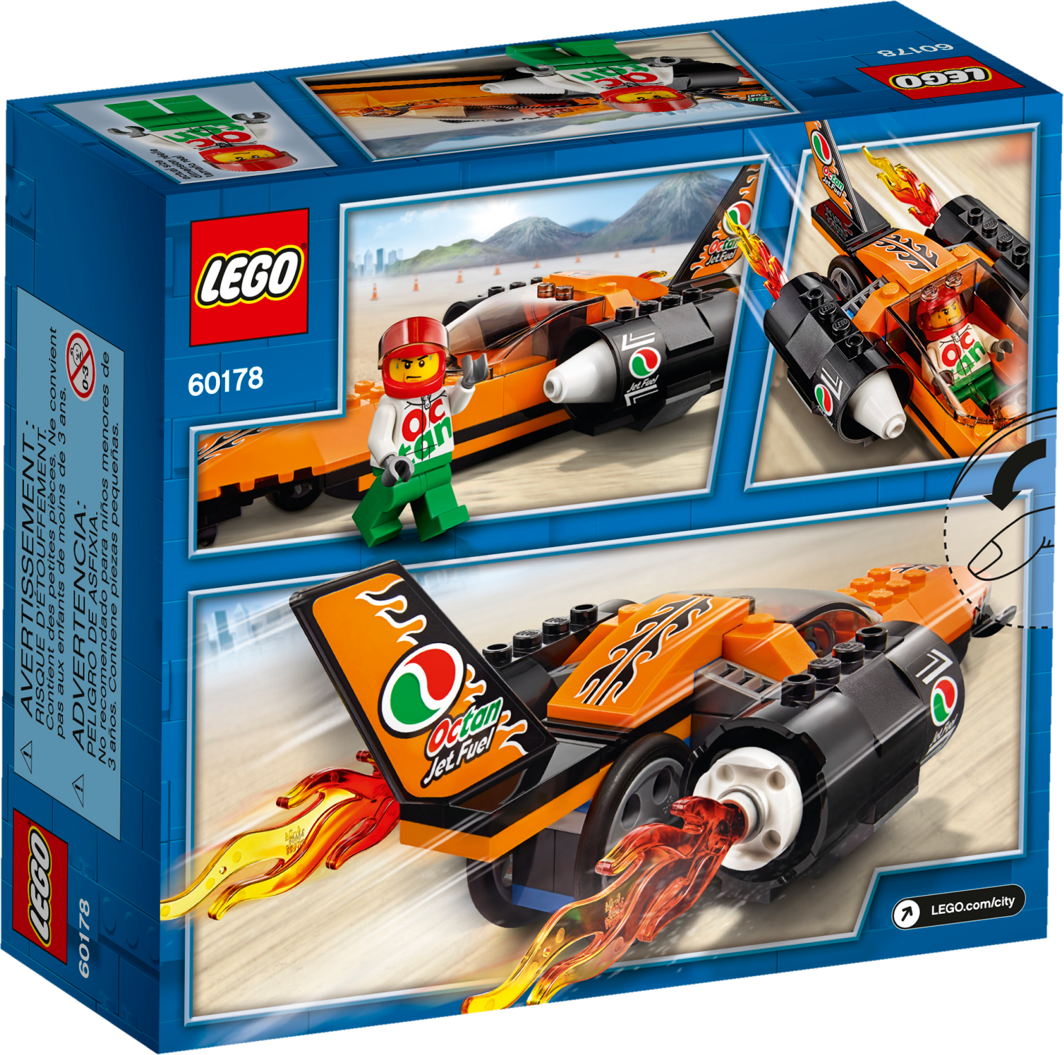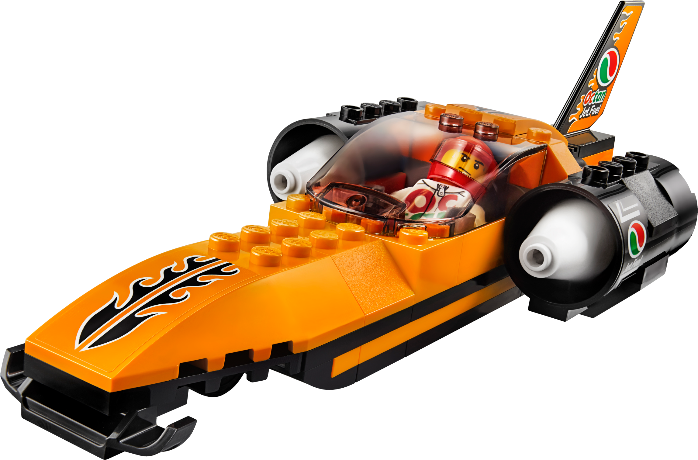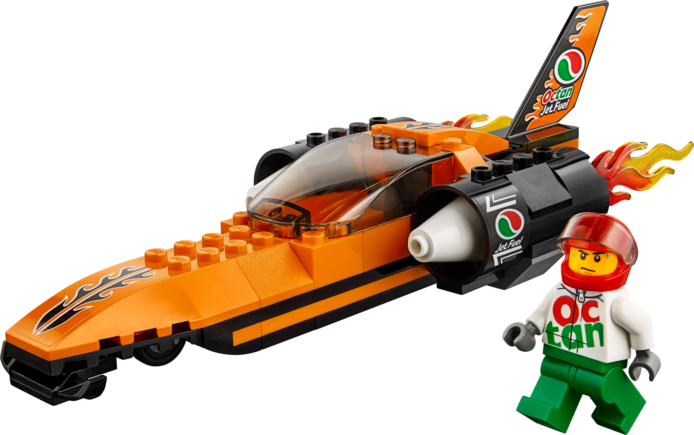 Take the wheel and wait for the green light with the powerful LEGO® City Speed Record Car! This fast vehicle construction toy features an opening cockpit, iconic flame elements and a large rear wing. Includes a minifigure.