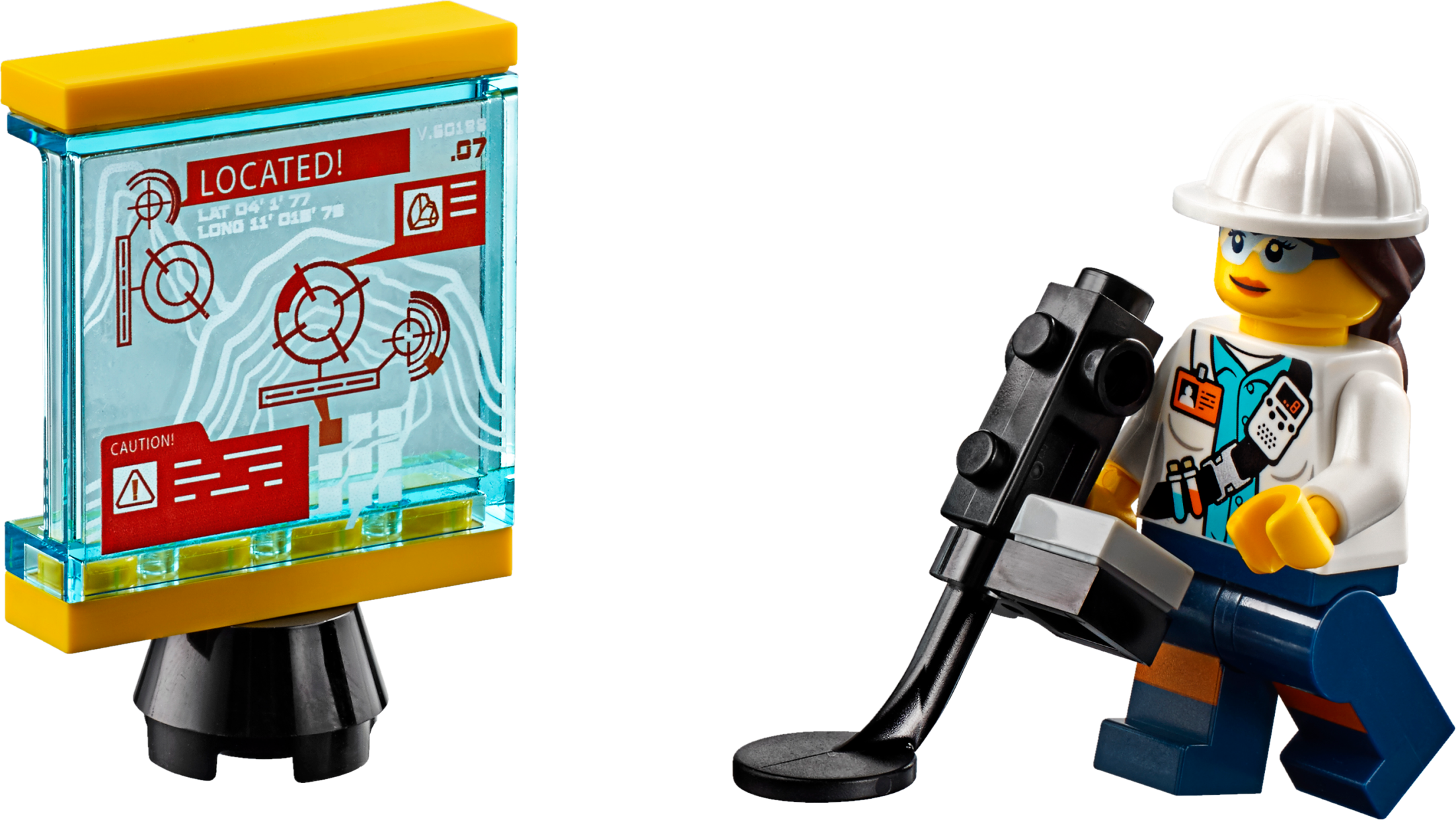 Includes 6 minifigures: 2 drivers, a demolition expert, miner, scientist and a chief, plus bear and spider figures.
