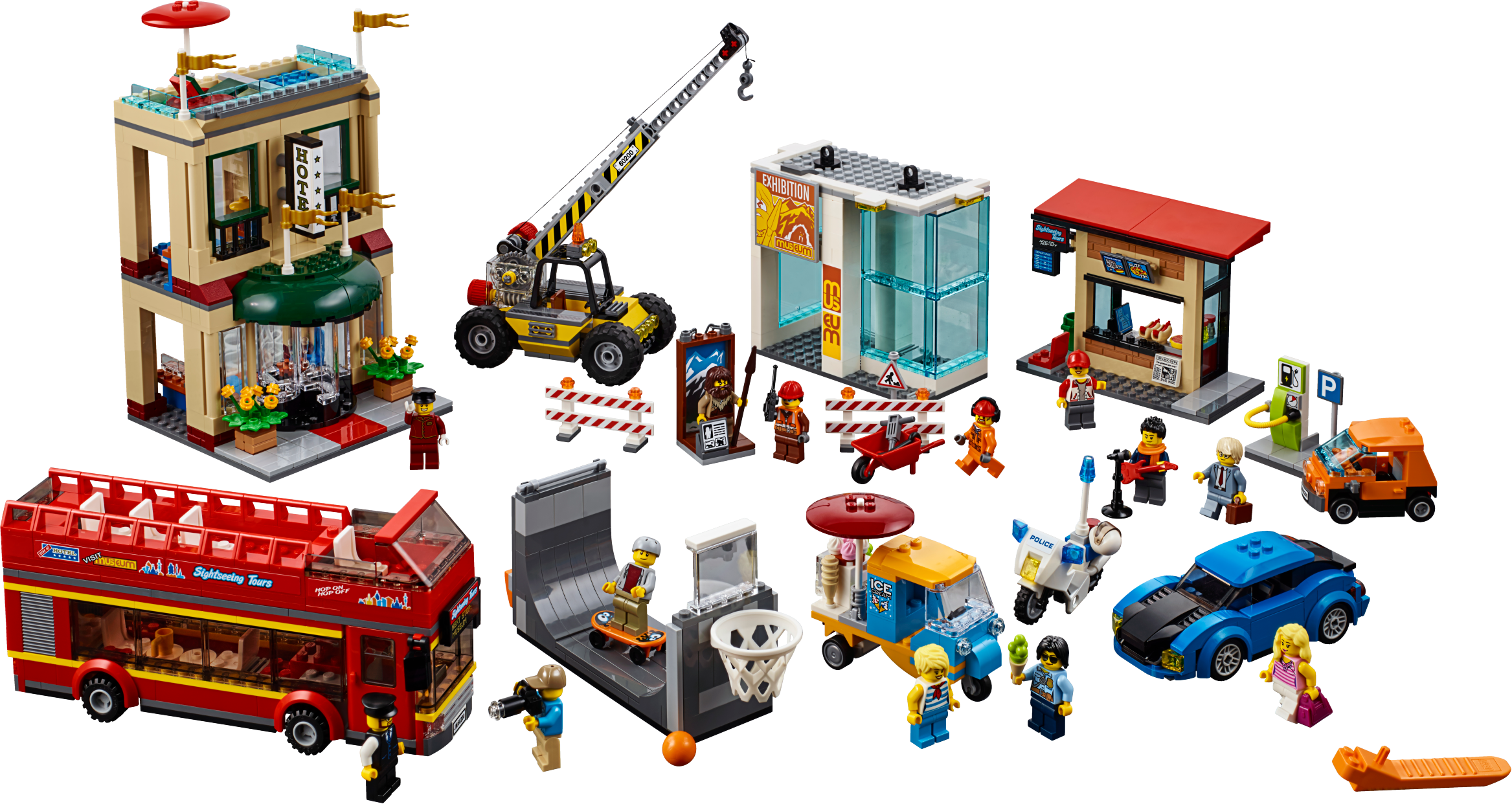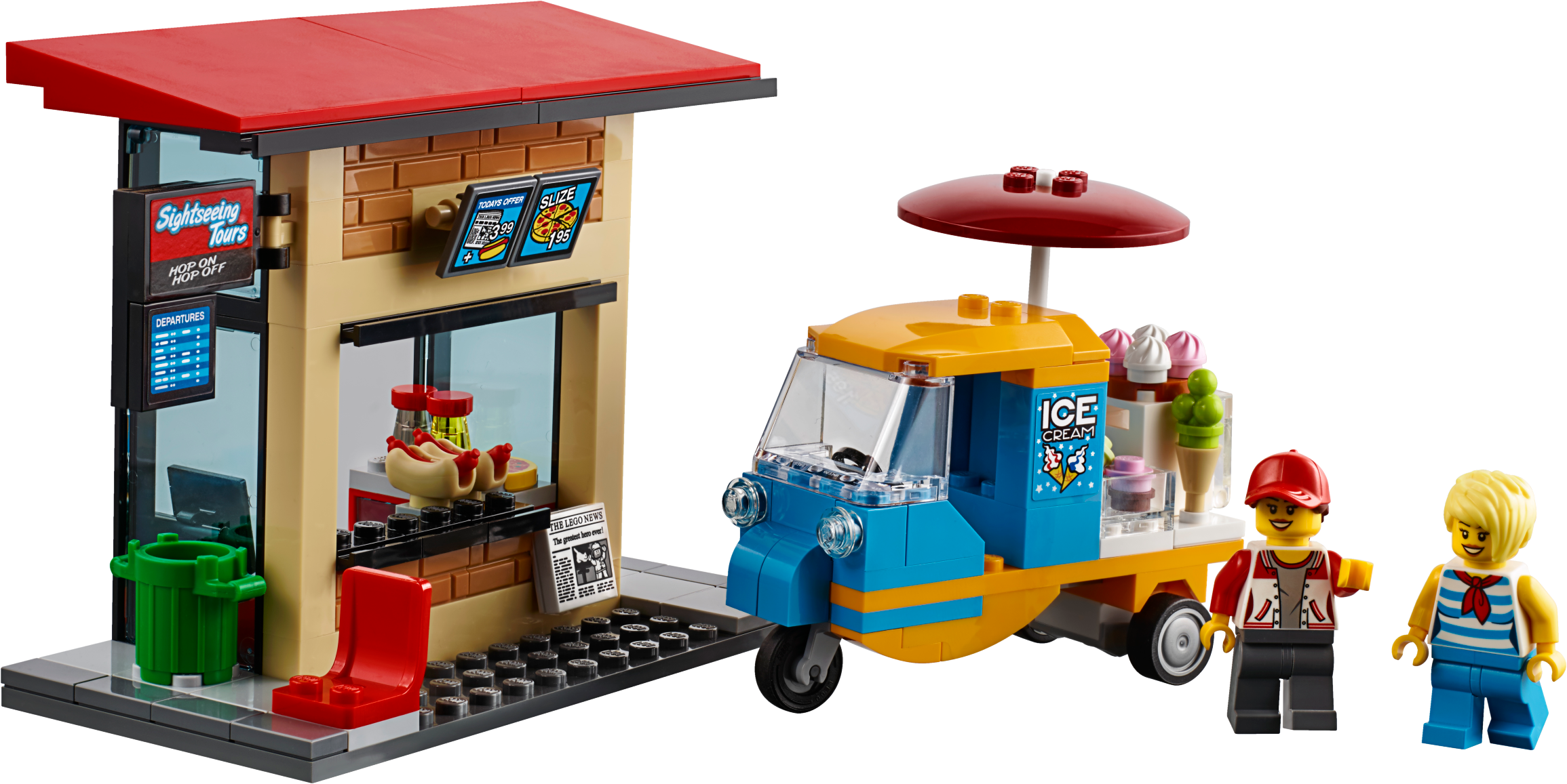 Includes 13 LEGO® minifigures: a hotel bellhop, hotel customer, bus driver, ice cream attendant, skateboarder, street musician, city traffic cop, 2 construction workers, tourist, IT businessperson, kiosk attendant and a museum caveman.