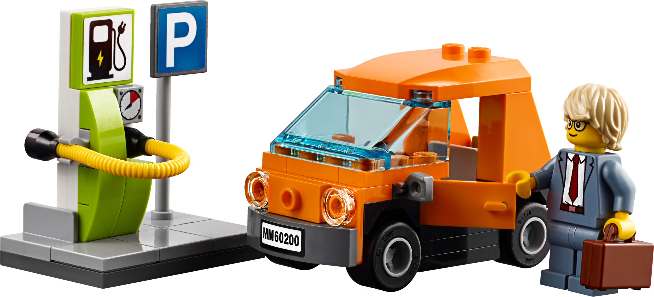 Plug the electric car into the charging station to pretend to recharge for the drive home.