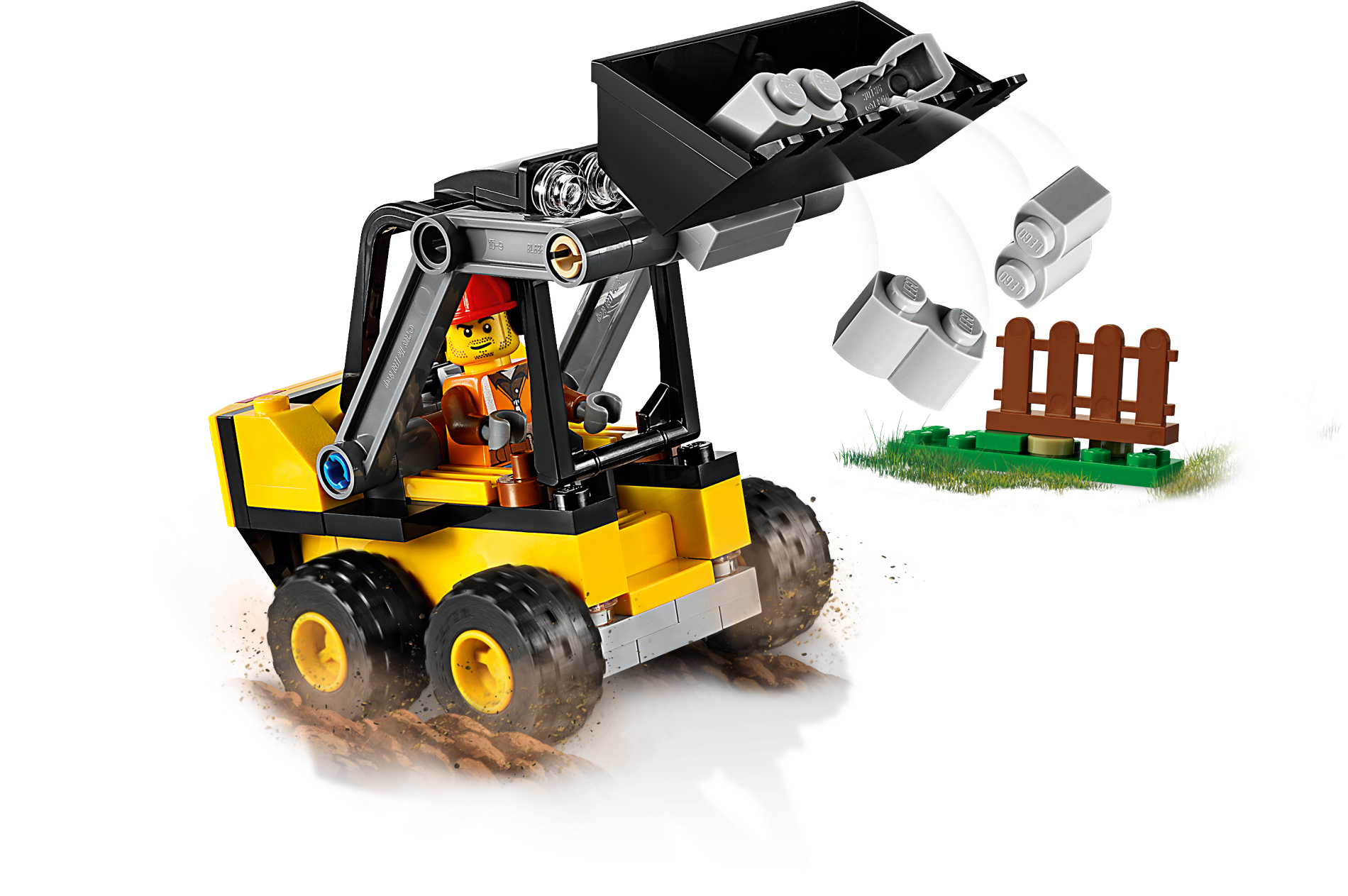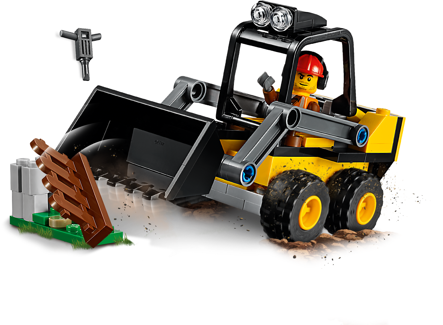 Help maintain the LEGO® City streets with the sturdy 60219 Construction Loader! This iconic construction toy set features a loader with raising front arm, tilting bucket and a roll cage, plus a small fence, jackhammer, buildable pile of concrete and a minifigure. Includes a LEGO® City road worker minifigure. Features a construction loader building toy truck with raising front loader arm, tilting bucket and roll cage. Accessory elements include a jackhammer and a small build featuring a fence and pile of concrete. Raise the front loader arm to remove the fence after you break the concrete apart with the toy jackhammer. Tilt the bucket on the toy excavator and scoop up the broken concrete to clean up the street. Raise the roll cage and climb down from the loader after a hard day’s work. Construction loader measures over 2” (7cm) high 4” (12cm) long and 1” (5cm) wide. Fence and concrete pile build measures over 1” (4cm) wide.