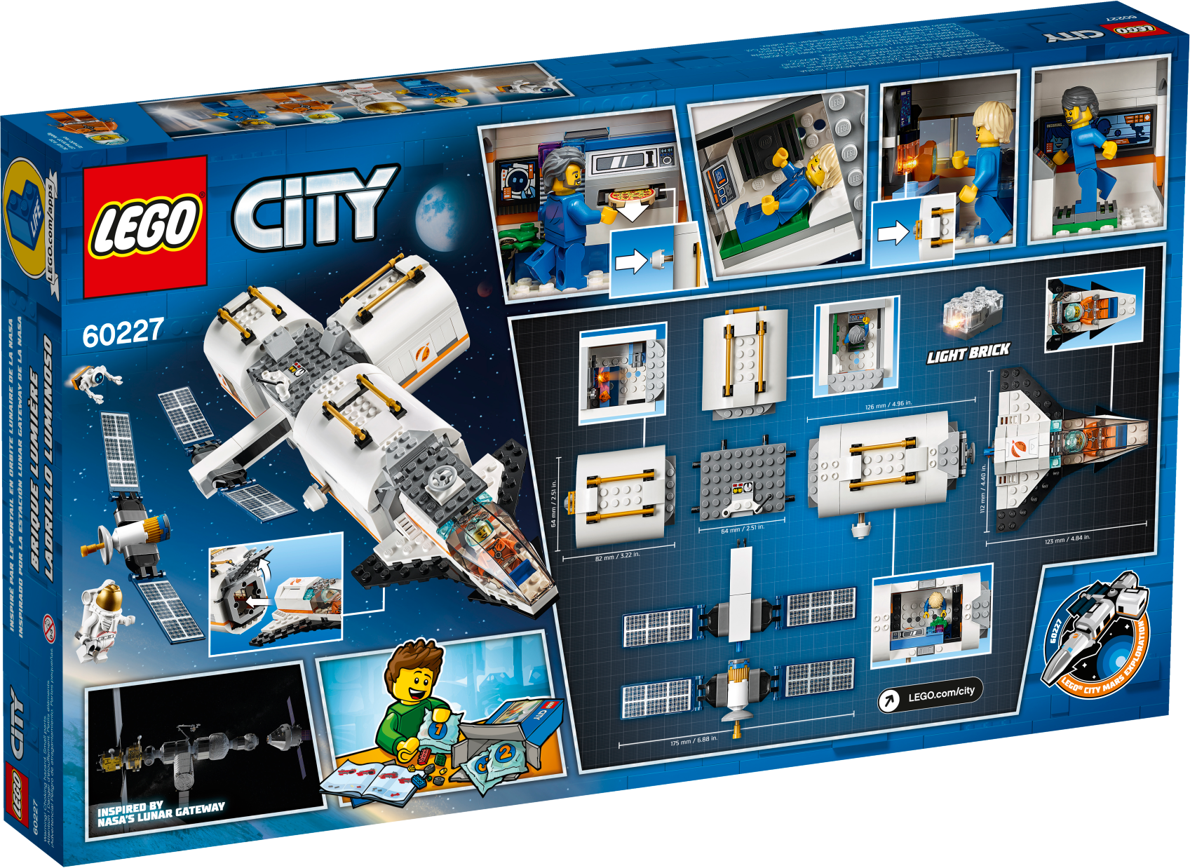 Give young space adventurers a treat with a NASA-inspired modular space station toy. This detailed LEGO® City 60227 Lunar Space Station toy set features 3 detachable, modular compartments that can be customized and rearranged however you like. There's a kitchen module, living module for sleeping and training and a lab module with light brick, central airlock compartment, detachable satellite and detachable shuttle with opening cockpit and storage space, plus 4 minifigures and a robot figure. Give any LEGO builder an amazing building experience with Instructions PLUS, available in the LEGO Life app for smartphones and tablets. The easy-to-use, intuitive building instructions let them zoom, rotate and visualize their creation using the special ghost mode as they go. Instructions PLUS is also great for younger builders, guiding them through the building process for a greater sense of independence and achievement.