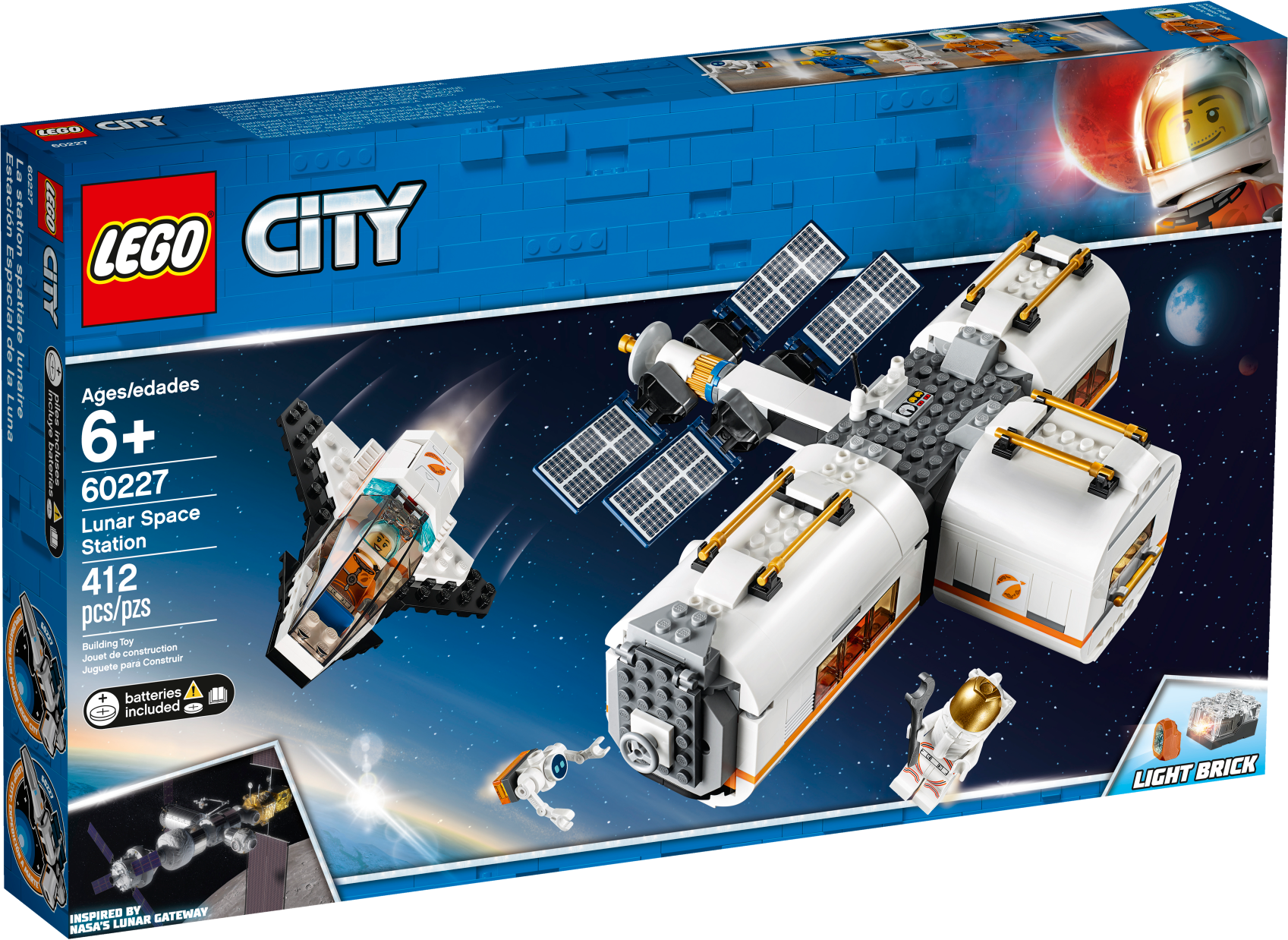 Includes 4 LEGO® City minifigures: 2 astronauts and 2 crewmembers, plus a robot figure.