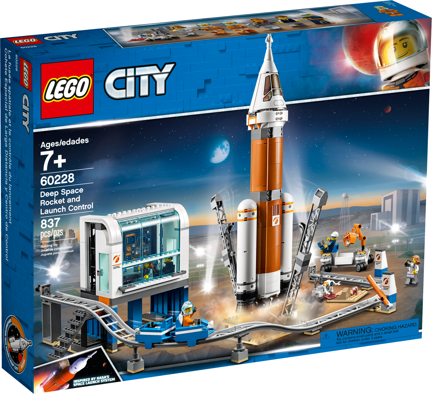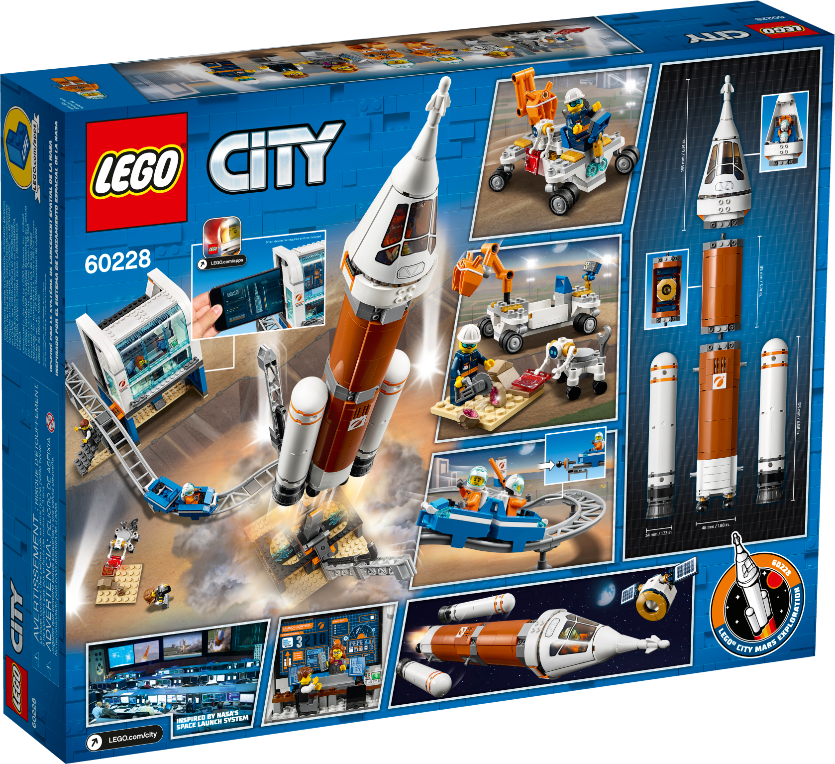Features a modular, multi-stage NASA-inspired rocket that can be customized in different ways with the booster, payload storage and 2-minifigure cockpit modules, rover with articulated, new-for-June-2019 grappling arm, space telescope with folding solar panels and magnifying glass, plus a monorail system with multi-stop track and 2 cars.