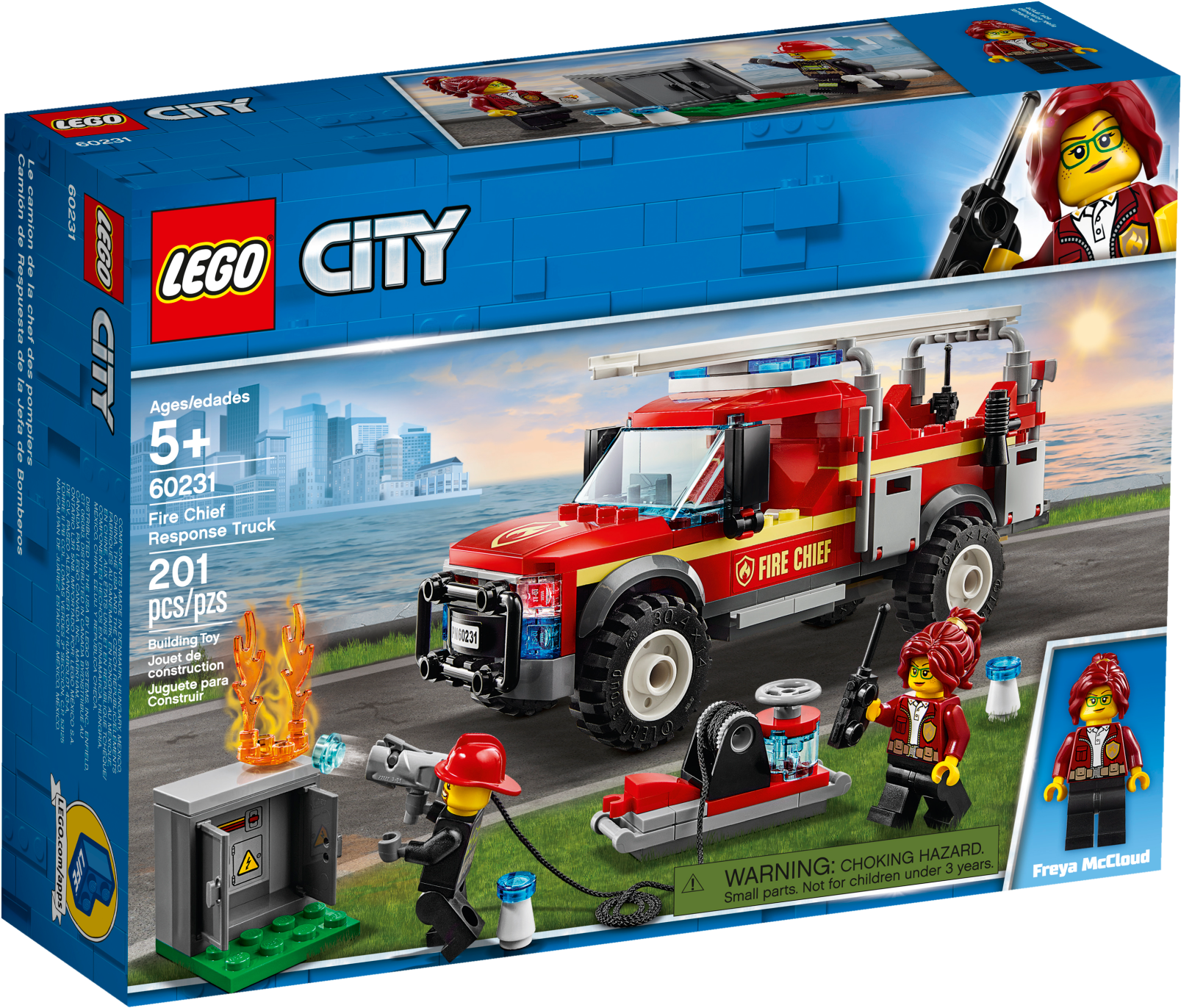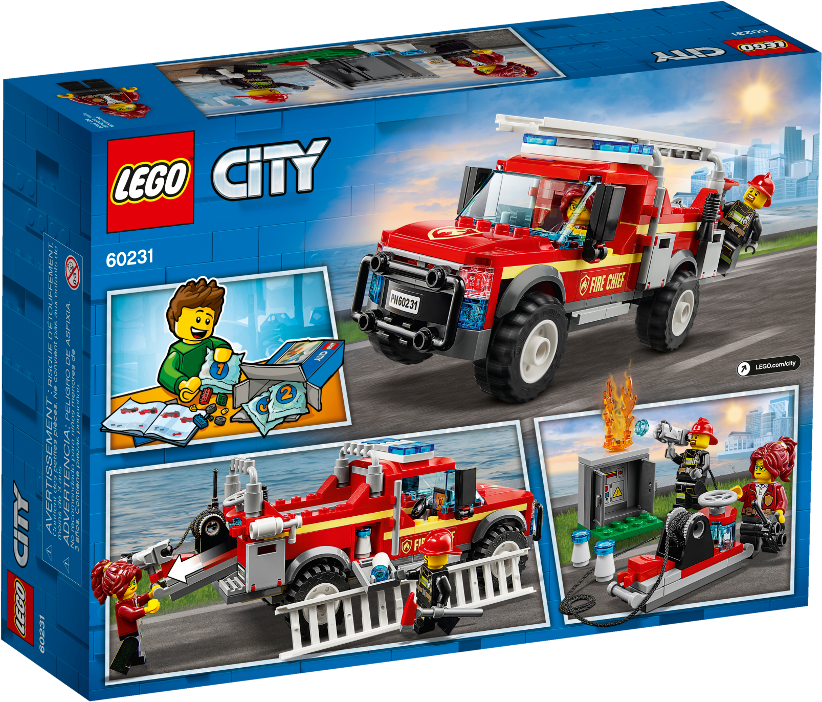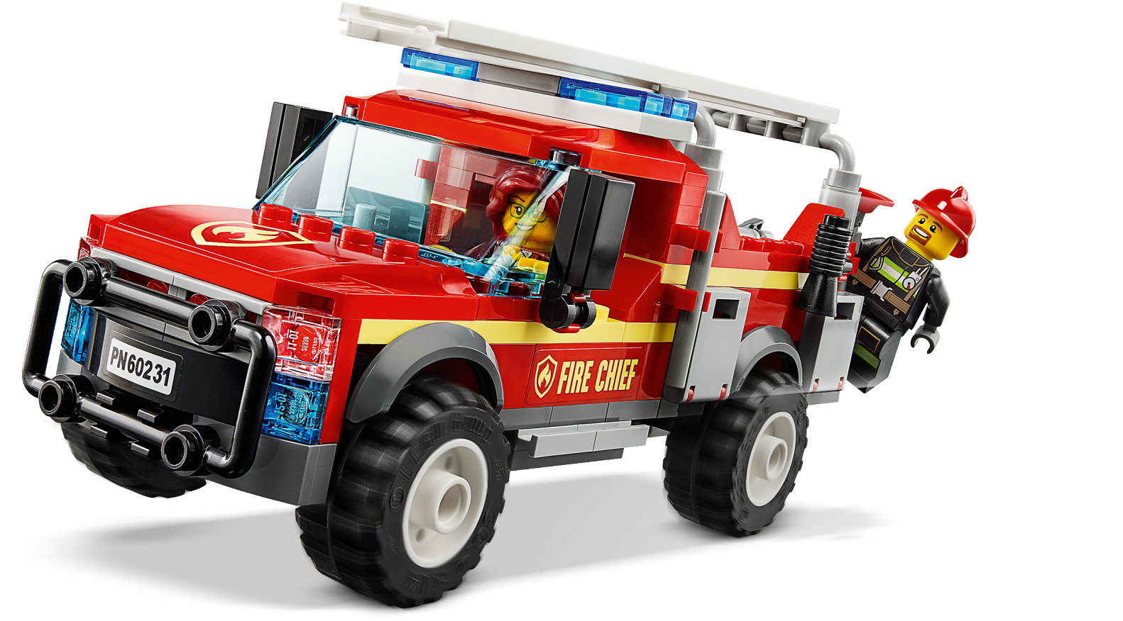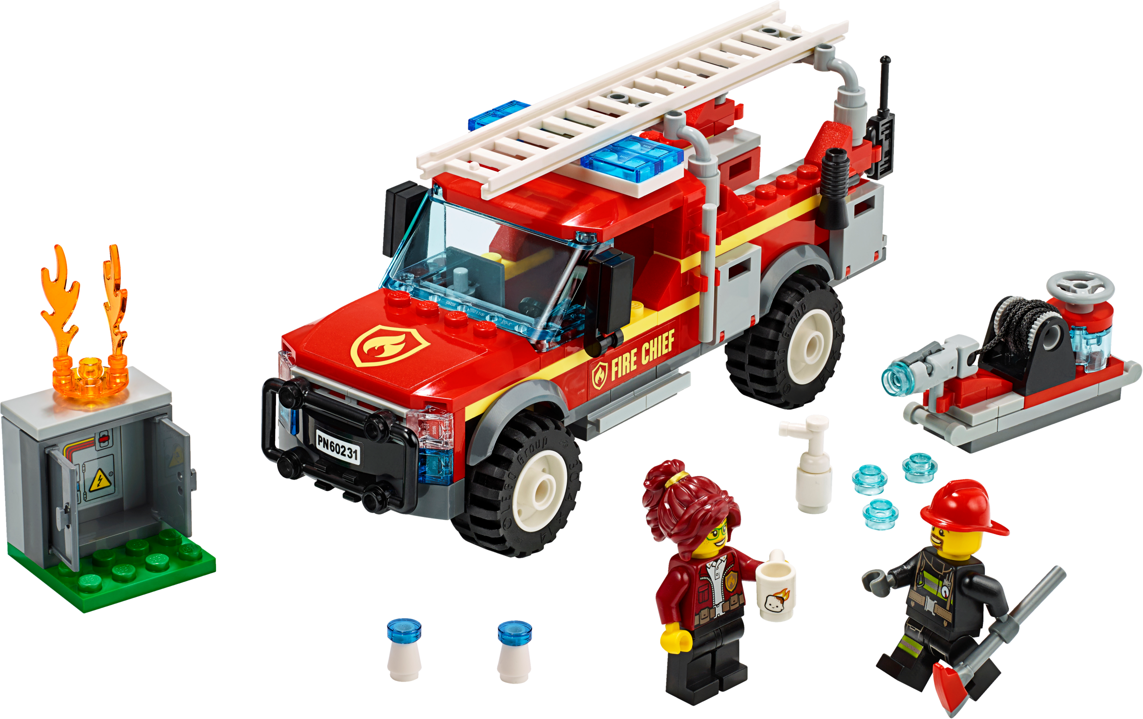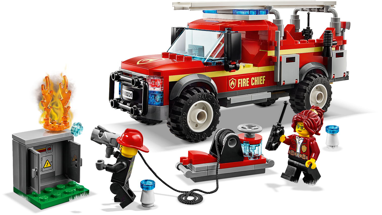 Give young firefighters a treat with a detail-rich fire truck construction toy set, featured in the new-for-2019 TV series. This cool LEGO® City 60231 Fire Chief Response Truck toy features a brick-built fire truck with detachable ladder, opening roof and a screen in the cab, an electrical box with buildable flame element and opening doors, a water cannon with water tank, plus 2 minifigures. Give any LEGO builder an amazing building experience with Instructions PLUS, available in the LEGO Life app for smartphones and tablets. The easy-to-use, intuitive building instructions let them zoom, rotate and visualize their creation using the special ghost mode as they go. Instructions PLUS is also great for younger builders, guiding them through the building process for a greater sense of independence and achievement. Includes 2 LEGO® City minifigures: Freya McCloud and a firefighter. This building set for kids features a fire truck with detachable ladder, opening roof and a screen in the cab, plus a water tank with water cannon and shooting function. This fun construction toy playset also includes an electrical box with opening doors. Accessory elements include a fire axe, walkie-talkie, megaphone, fire extinguisher, mug with marshmallow logo, 2 white and blue cones and 4 water elements, plus a buildable flame element. Use the trigger on the water cannon to fire brick water elements at the flames on the electrical box. Use the LEGO® Life app to access the intuitive Instructions PLUS building instructions. Help even younger builders through the building process, with easy-to-use zoom, rotate and ghost-mode functions to visualize their creations as they go. Download the LEGO® Life app at the iOS or Android app store. Ask your parents' permission before going online. Kids can reimagine exciting scenes from the LEGO® City animated TV series with this fire truck toy. Fire truck measures over 2” (6cm) high, 6” (16cm) long and 2” (7cm) wide. Electrical box including ground plate measures over 1” (3cm) square.
