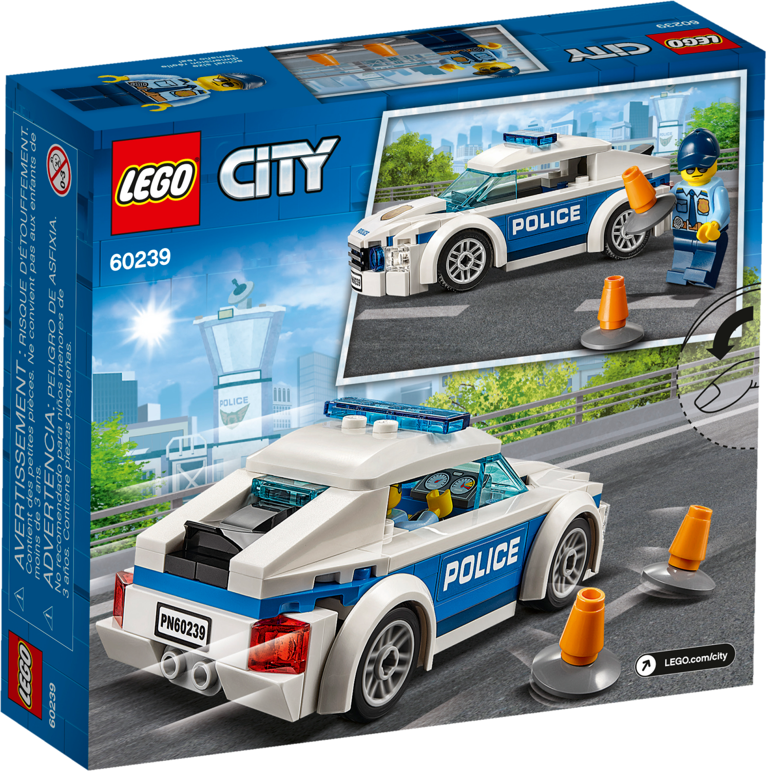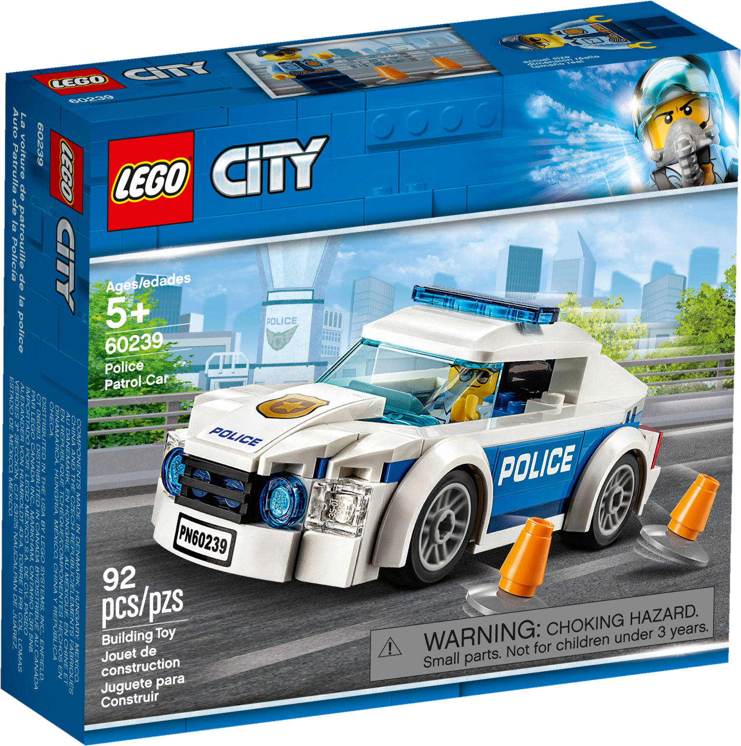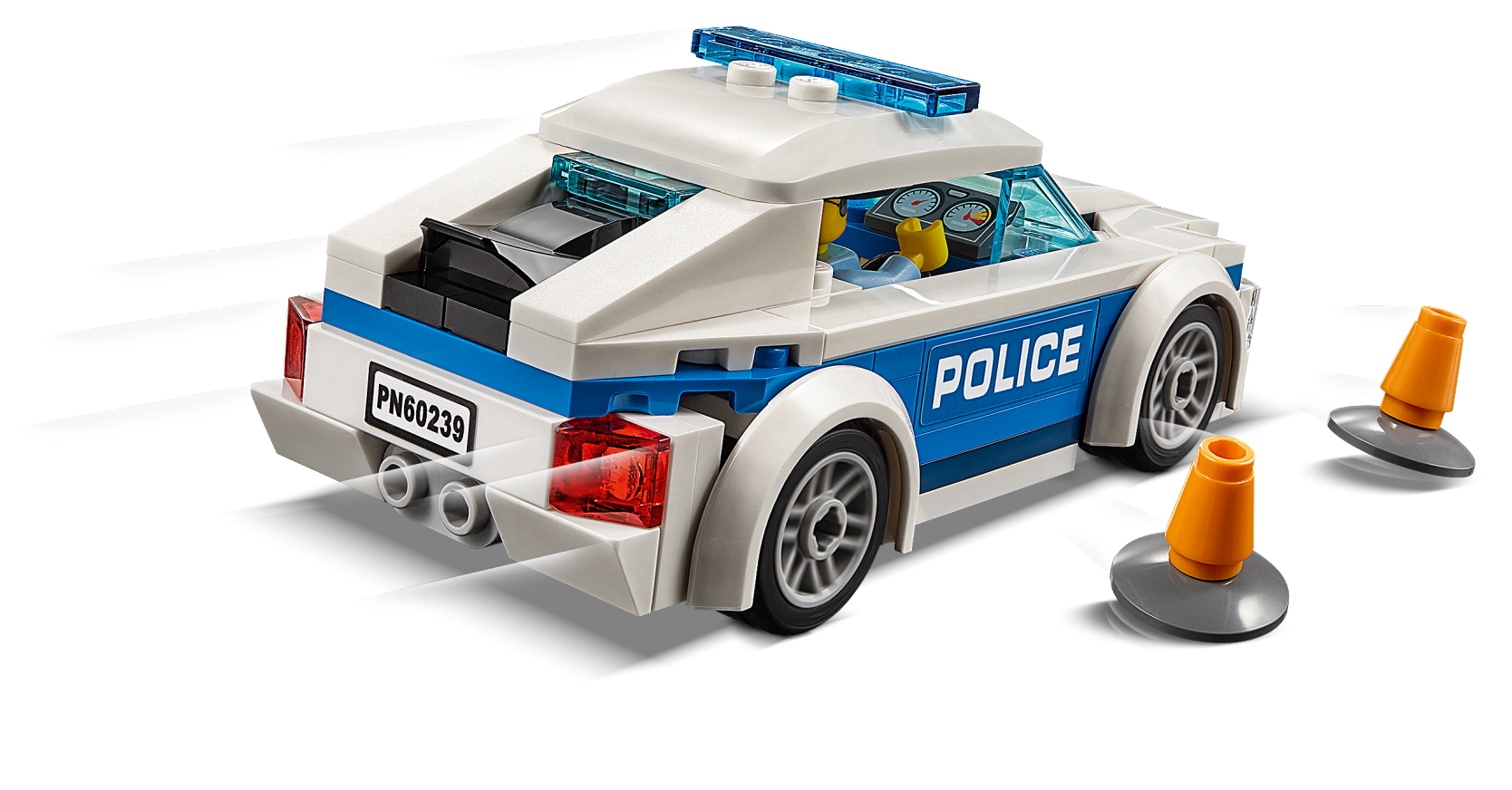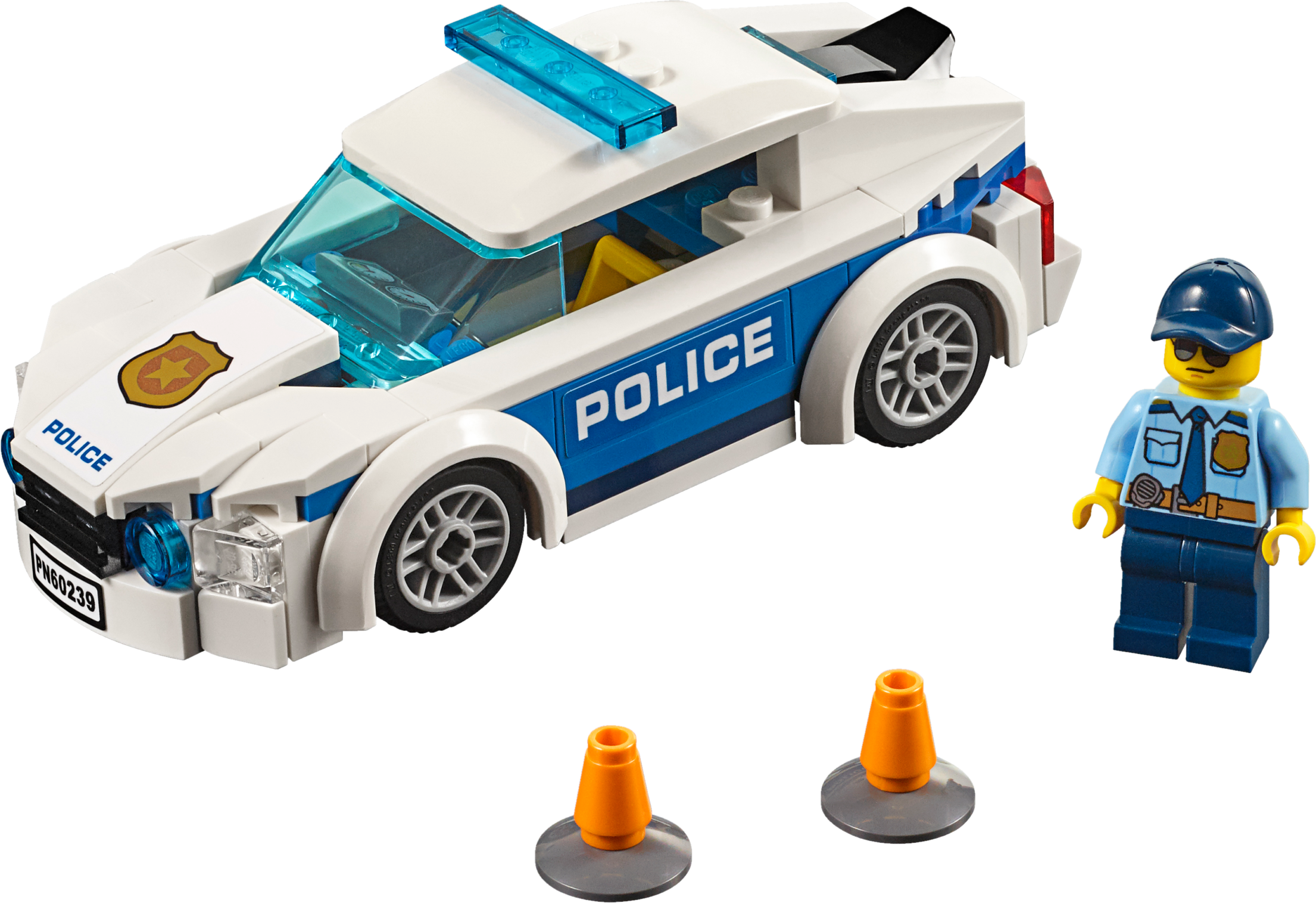 Help keep the streets of LEGO® City flowing with this cool LEGO® City 60239 Police Patrol Car with removable roof, minifigure cab and iconic decorations, plus 2 traffic cones and a minifigure. Includes a LEGO® police officer minifigure. Features a LEGO® police car with removable roof, space inside for a minifigure and iconic decorations. Also includes 2 police traffic cone accessory elements. Patrol car measures over 1” (4cm) high, 4” (12cm) long and 1” (5cm) wide.