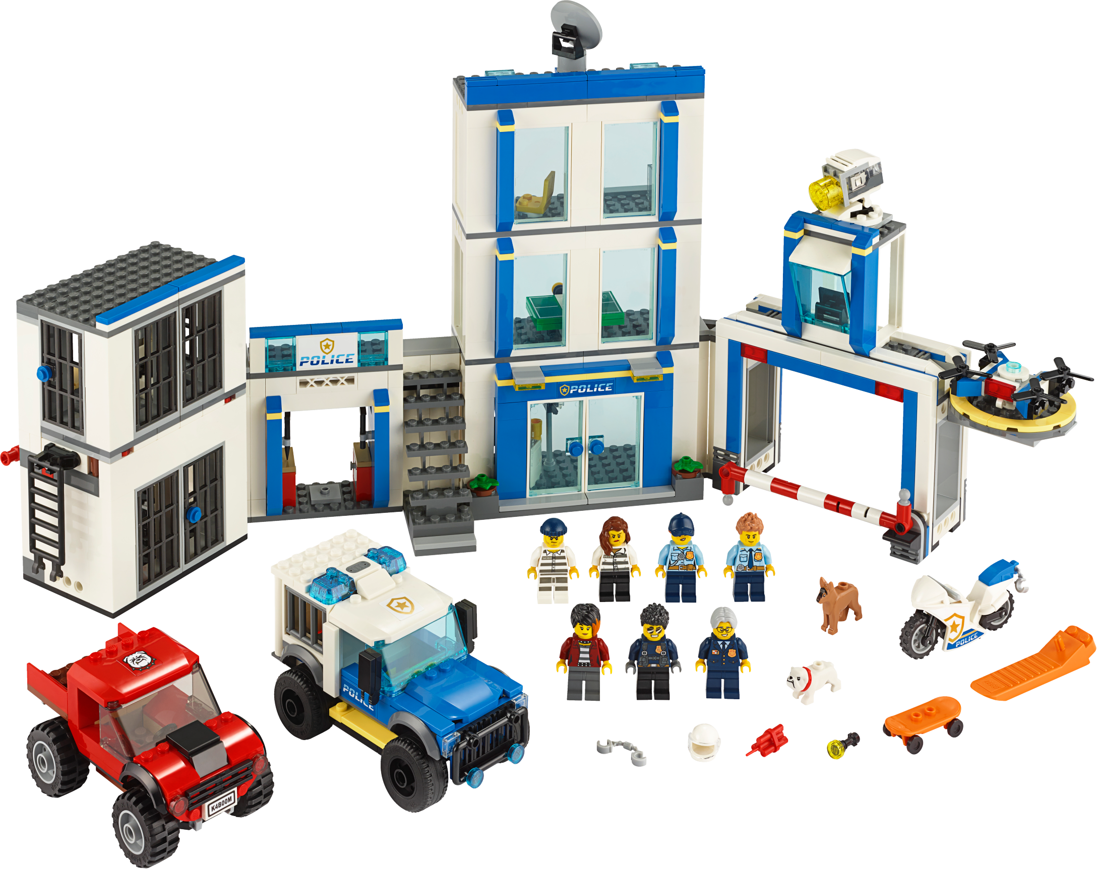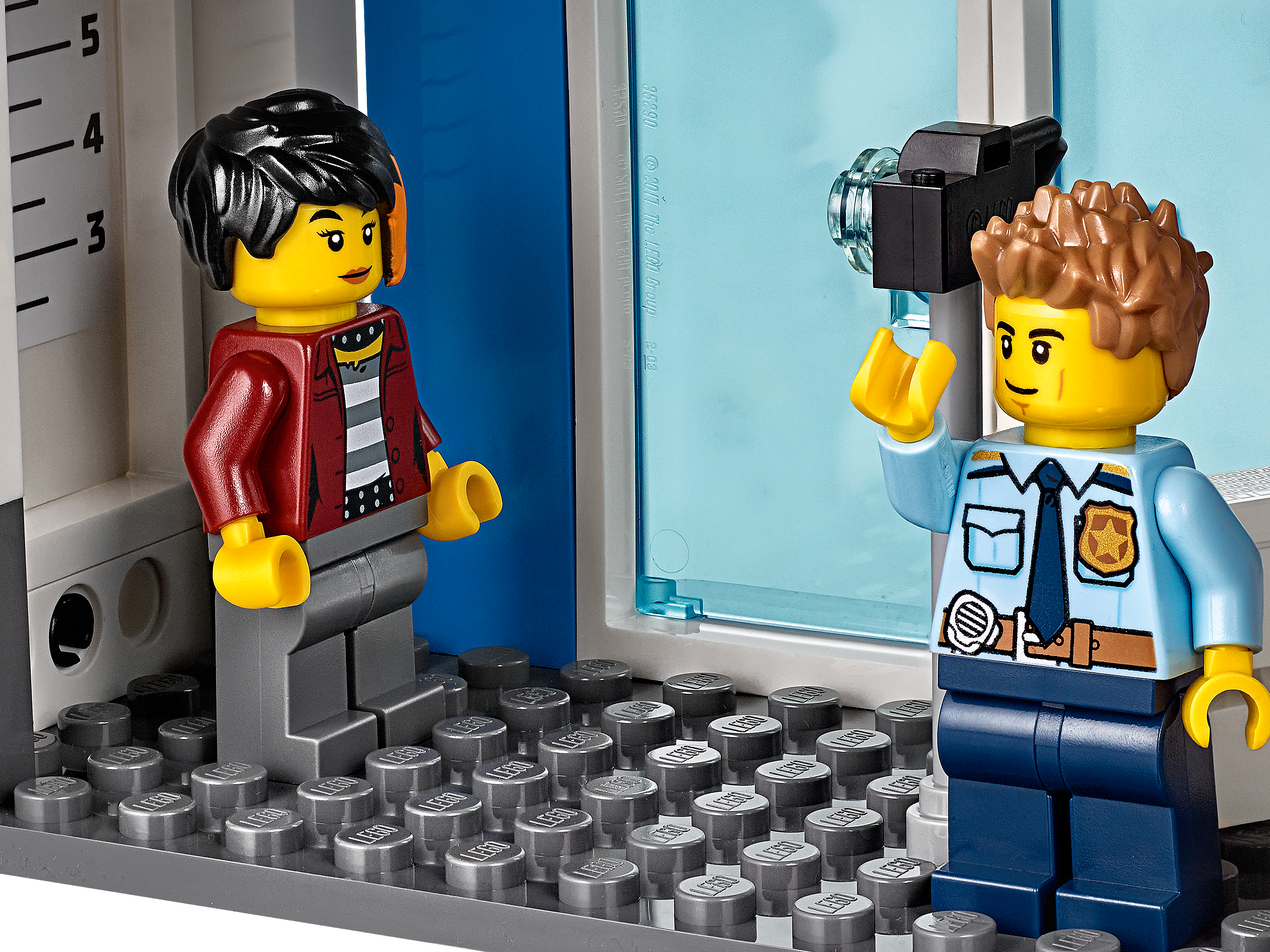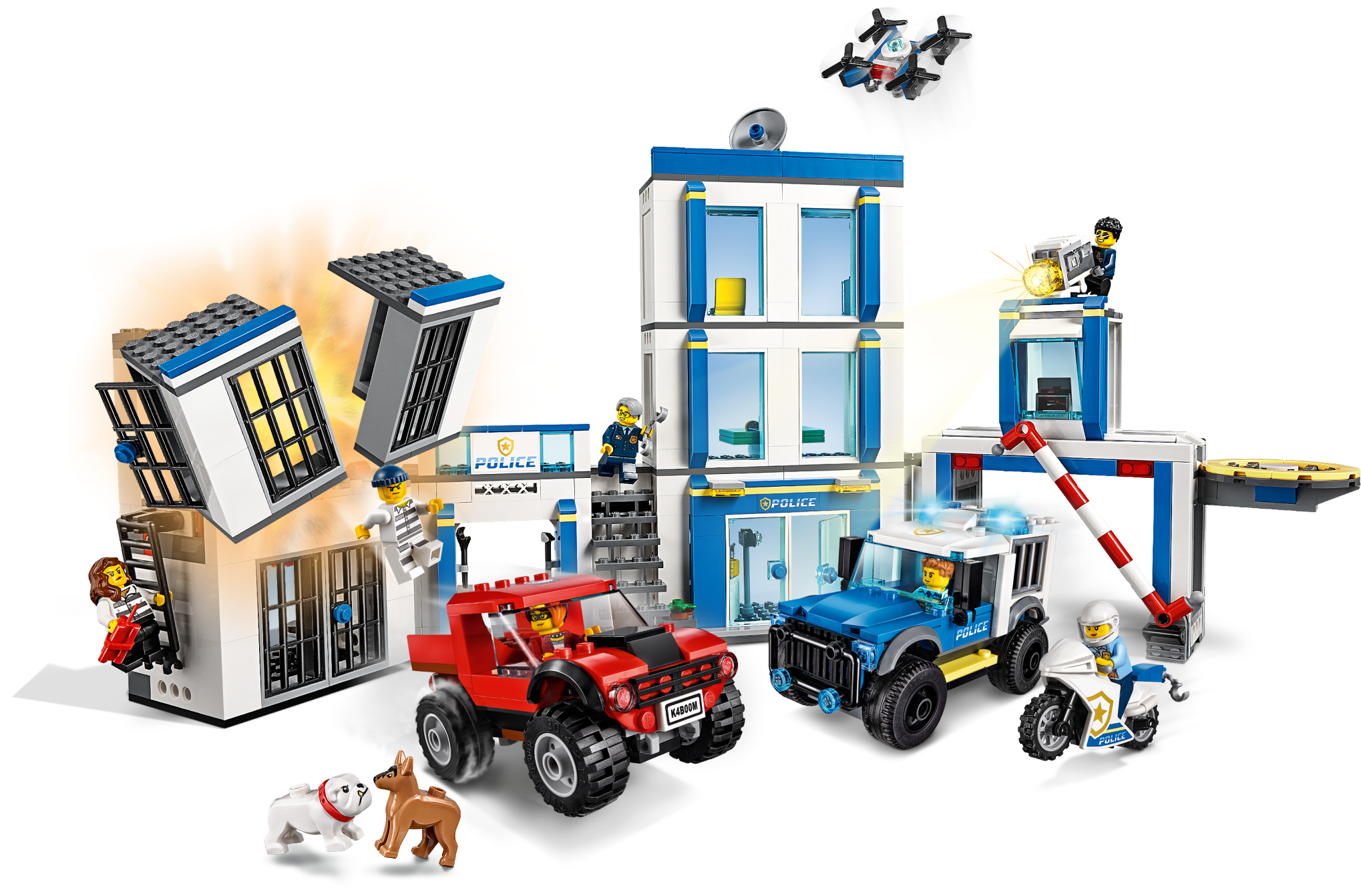 Everything is awesome about the LEGO® City Police Station (60246) playset. Little law enforcers and fans of the LEGO City TV series will love creating stories with a host of fun characters, including Duke DeTain, Chief Wheeler and Daisy Kaboom. This exciting set includes a police station with a light-brick searchlight and a police car with sound-brick siren, plus a cool truck, motorcycle and surveillance drone.A building toy with a little extraWith this toy playset you get a simple building guide and Instructions PLUS! Part of the free LEGO Life app for smartphones and tablets, this interactive building guide features zoom and rotate viewing tools that help budding LEGO builders become master builders.LEGO City – Cool toys for kidsLEGO City police playsets deliver an exciting build-and-play experience. With realistic vehicles, detailed buildings and fun characters, kids can create stories and scenarios that depict real city life in a fun and imaginative way. Here’s a great building set for kids who love action-packed building toys. This LEGO® City Police Station (60246) playset has an exploding cell, cool vehicles and fun characters. The fun starts the moment you open the box. What’s in the box? A toy police station, 2 trucks, a motorcycle and a drone. You also get 6 minifigures, including Duke DeTain, Chief Wheeler and Daisy Kaboom from the LEGO® City TV series, plus 2 dog figures. Children can have fun with the feature-rich police headquarters model with jailbreak explosion function and light-brick searchlight, plus a police car with a sound-brick siren – a delight for LEGO® City police fans. This LEGO® City Police Station playset is ideal for children aged 5 and up. It makes a great Christmas, birthday or any-other-day gift for kids who love role-play toys, model vehicles and action toys. When built, the toy police station building measures over 9” (24cm) high, 18” (48cm) wide, and 5” (15cm) deep, while the police truck measures over 2" (6cm) high, 4" (12cm) long and 2" (7cm) wide. Both the sound brick and light brick in this playset require a 1xCR1216 coin cell battery. The good news? They’re included! So the sound and light play can start right away. You’ll find a simple building guide in the box. Or you can download Instructions PLUS – part of the free LEGO® Life app. This interactive building guide with zoom-and-rotate viewing tools makes building child's play! LEGO® City police sets nurture kids' physical skills and confidence with feature-rich buildings, realistic vehicles and fun characters that inspire open-ended creative play. LEGO® building bricks meet the highest industry standards as well as The LEGO Group's rigorous quality criteria, so they're consistent, compatible and easily click together and apart – every time. At The LEGO Group, we drop, squash, twist, heat, bite, bend, scratch and stretch LEGO® bricks and pieces to make sure every playset meets the highest global safety and quality standards.