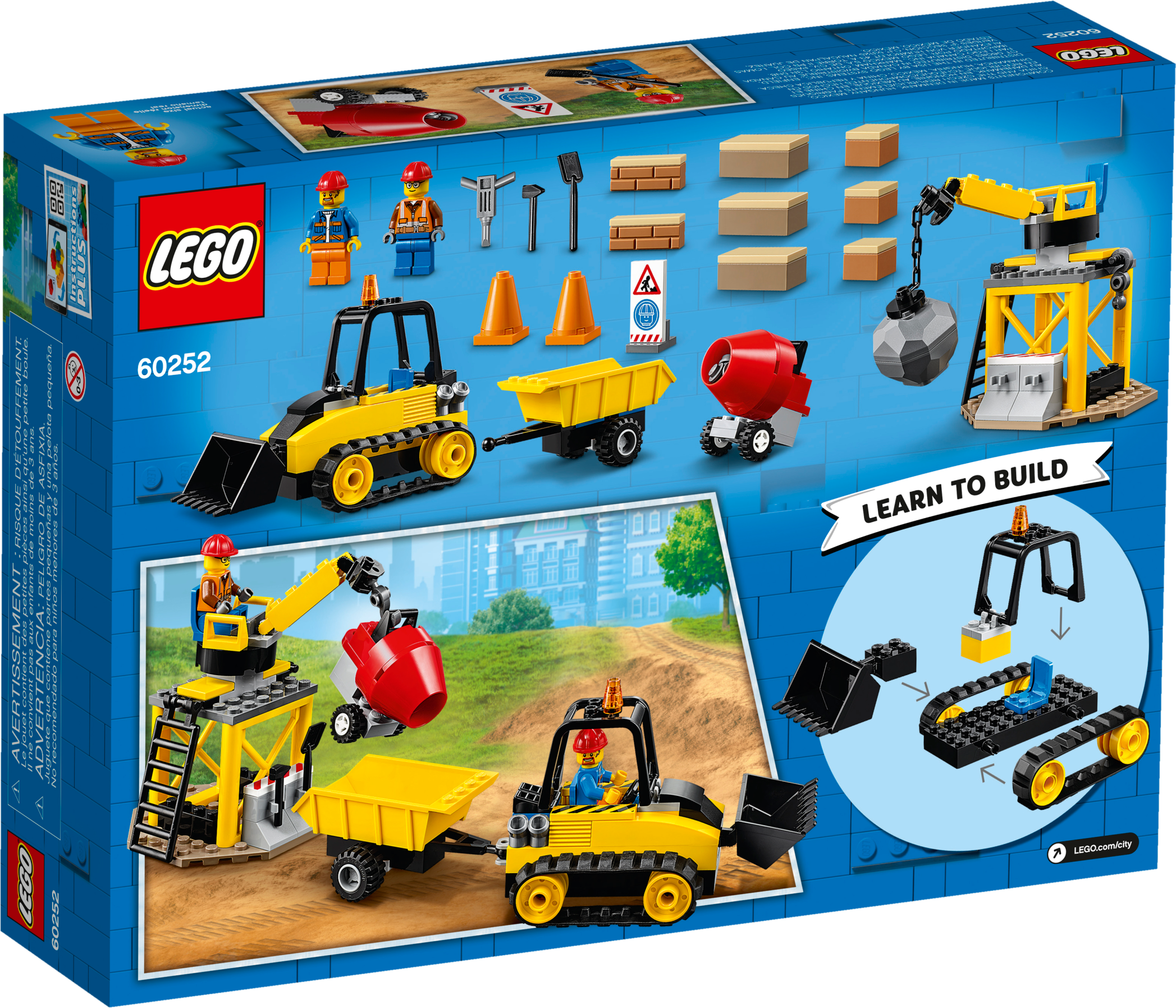 Youngsters who love to role-play everyday heroes will love this LEGO® City Construction Bulldozer (60252) set. There’s a cool bulldozer with rubber tracks and working bucket, a toy crane with a wrecking ball, a cement mixer and a warning sign – everything a child needs to enjoy hours of imaginative play. A cool toy for kids This 4+ toy playset includes a simple printed building guide and a special Starter Brick element to help youngsters experience the pride of constructing their own LEGO toys. And with the free LEGO Life app for smartphones and tablets, kids get Instructions PLUS – an interactive building guide with amazing zoom and rotate viewing tools that really make LEGO building child’s play.The creative world of LEGO CityWith LEGO City sets, kids get to immerse themselves in open-ended adventures and scenarios that reflect real life. And with a wide range of realistic, feature-rich vehicles and machines, kids' imaginations are free to soar!This construction bulldozer set for kids is an ideal introduction to the exciting world of LEGO® City. Perfect for children aged 4+, it is designed to inspire creative, independent play based on real-life scenarios.What’s in the box? This (60252) construction site playset features a bulldozer with working bucket, a toy crane with a wrecking ball, a cement mixer, 2 minifigures and more. Just add a sprinkle of imagination for endless fun!Kids can cordon off the site with the sign and cones, swing the wrecking ball to knock down the wall, scoop up bricks with the bulldozer, spin the cement mixer and more – a great gift for kids who love pretend play.LEGO® City 4+ sets are a fun way for youngsters to learn the art of LEGO building. With special starter bricks and simple printed building guides they help kids grow their confidence and abilities step by step.When built, the construction bulldozer measures over 3" (8cm) high, 4" (12cm) long and 2" (6cm) wide, while its trailer measures over 1" (4cm) long, 3" (9cm) high and 1" (4cm) wide.No batteries required – this building toy is powered by small kids with big imaginations, so the play can start right away!Find instructions to build this 4+ set in the box. Or hop online to download Instructions PLUS – available as part of the free LEGO® Life app. Zoom, rotate and visualize the model to bring the building process to life.LEGO® City Great Vehicles sets help kids grow physical skills and confidence with feature-rich buildings, realistic vehicles and fun characters that inspire open-ended independent play.LEGO® bricks are designed to the highest industry standards to ensure that LEGO® City building toys are consistent, compatible and connect and pull apart easily every time.At The LEGO Group, we thoroughly test LEGO® City playsets to make sure every one of these unique toys meets the highest global safety and quality standards.