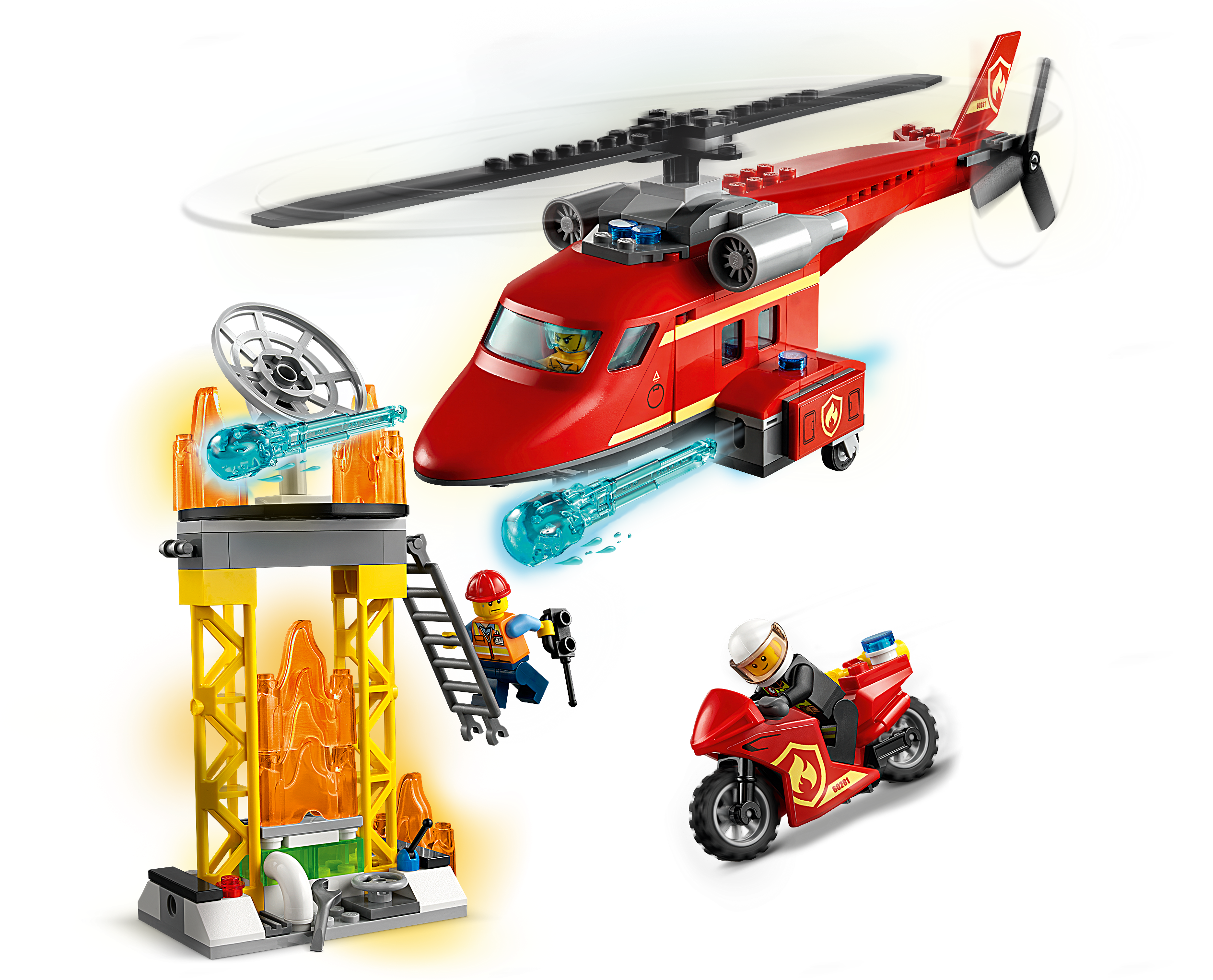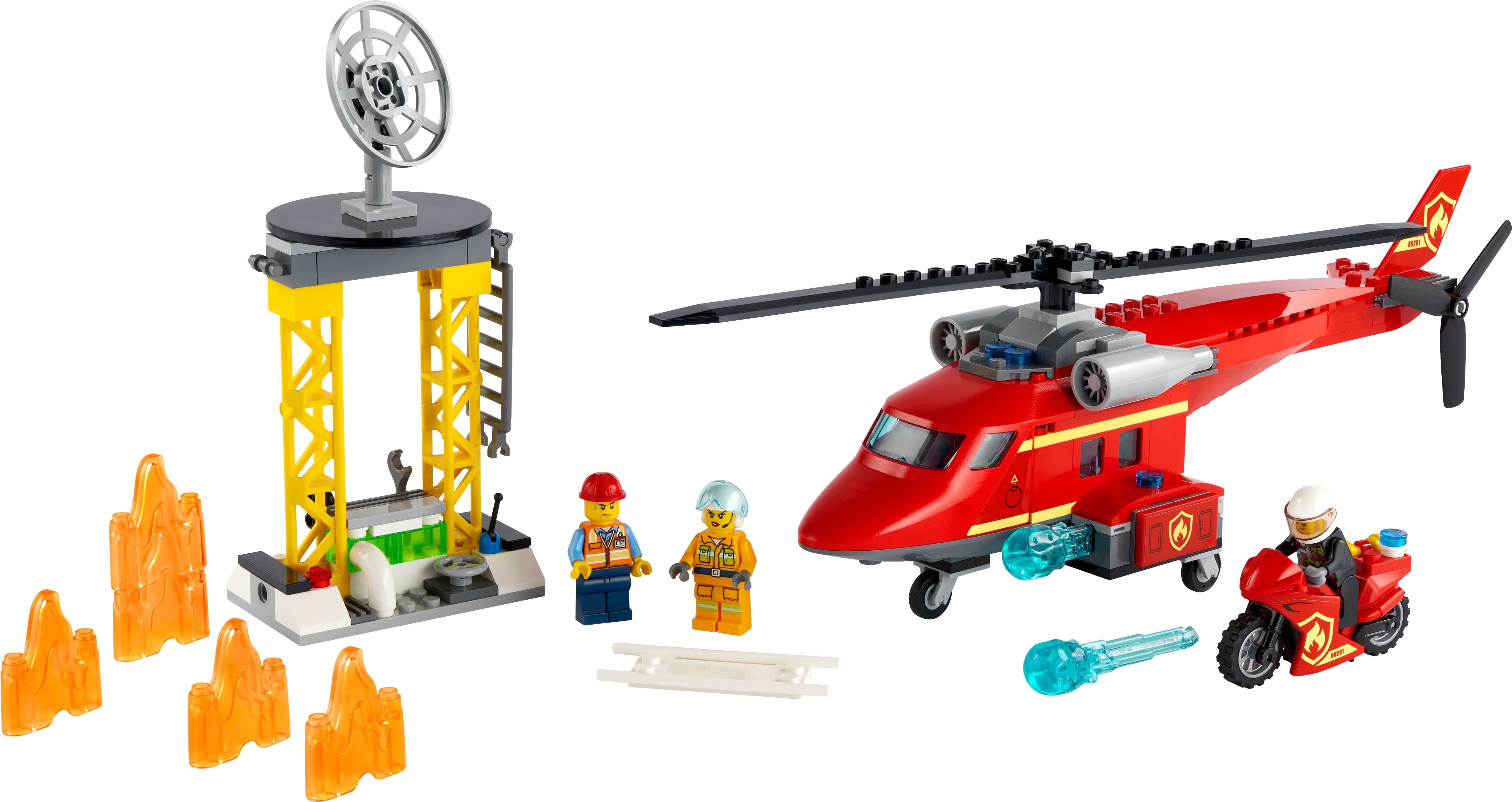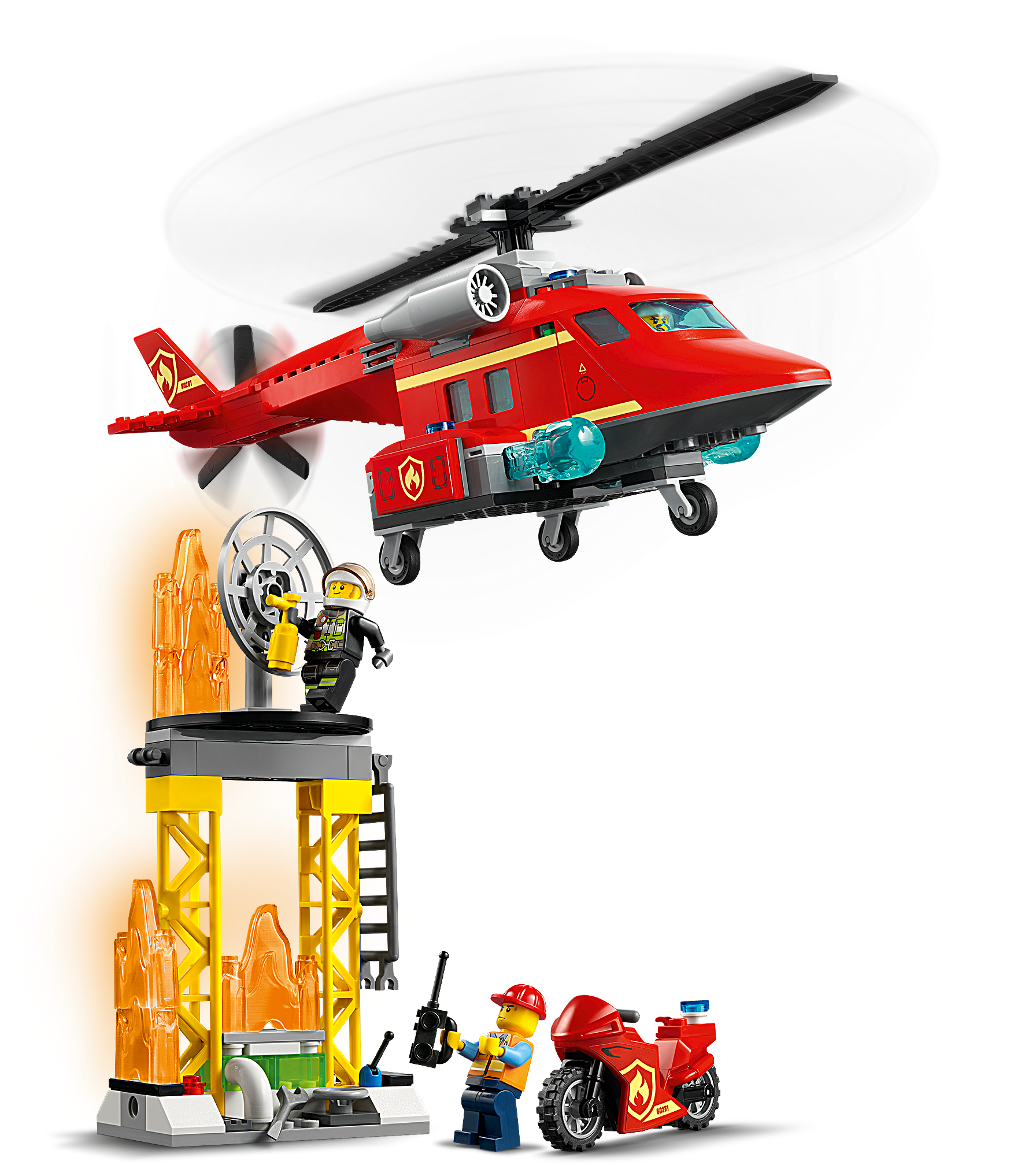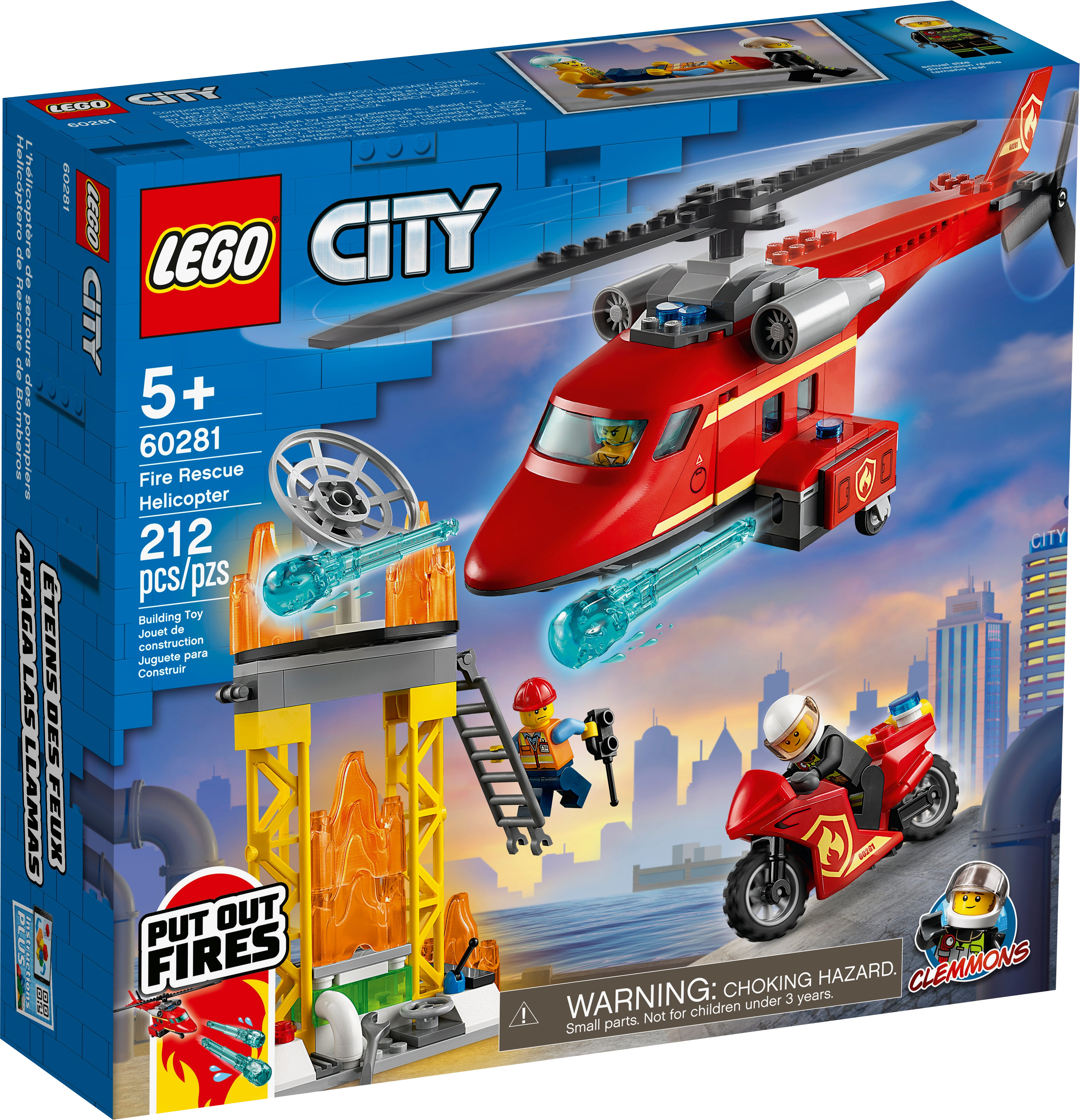 A treat for fans of the LEGO® City Adventures TV series, this exciting LEGO City Fire Rescue Helicopter (60281) playset includes a toy helicopter, motorbike and a power plant setting with stackable LEGO flames for big blazes! Kids can shoot the helicopter's water cannons to knock out the fire and enjoy role-play fun with 3 minifigures, including a worker, helicopter pilot and LEGO City TV hero Clemmons.Cool LEGO set for kids aged 5 and upYou'll find building instructions for this LEGO City set in the box. Or you can download Instructions PLUS, part of the free LEGO Building Instructions app for smartphones and tablets. This interactive building guide, with amazing zoom and rotate viewing tools, turns budding LEGO builders into master builders!A great gift for creative kidsLEGO City fire playsets deliver an enjoyable build-and-play experience with feature-rich buildings, realistic vehicles and fun characters that stimulate imaginative, open-ended role play based on real-life events.A treat for everyday heroes aged 5 and up, this Fire Rescue Helicopter (60281) playset is perfect for kids who love cool firefighting vehicles and for fans of the LEGO® City Adventures TV series.What’s in the box? Everything kids need to build a toy helicopter, motorbike, power station setting and LEGO® fires, plus 3 minifigures, including Clemmons from the LEGO City Adventures TV series.Kids can stack the LEGO® flames to create big fires, then shoot the helicopter's water cannon elements to put them out and create LEGO City Adventures TV series stories with 3 fun minifigures.A great gift idea for any occasion, this firefighter playset delivers endless hours of fun for LEGO® City fans and kids aged 5 and up who love imaginative play. Requires only basic building skills.When built, the fire rescue helicopter toy measures over 3.5 in. (10 cm) high, 10 in. (26 cm) long and 3.5 in. (9 cm) wide.LEGO® accessories include a stretcher (stored in the helicopter's cargo hold), firefighter helmet, wrench and safety helmet.Comes with an easy-to-follow, printed building guide and Instructions PLUS – an interactive building guide for budding builders. Part of the free LEGO® Building Instructions app for smart devices.LEGO® City fire sets nurture imaginative role play with detailed buildings, cool vehicles, fun characters and settings that depict real life in a fun and imaginative way.All LEGO® City components meet strict industry standards to ensure they are compatible and connect and pull apart consistently every time.All LEGO® pieces are rigorously tested to make sure every building set meets stringent global safety standards.