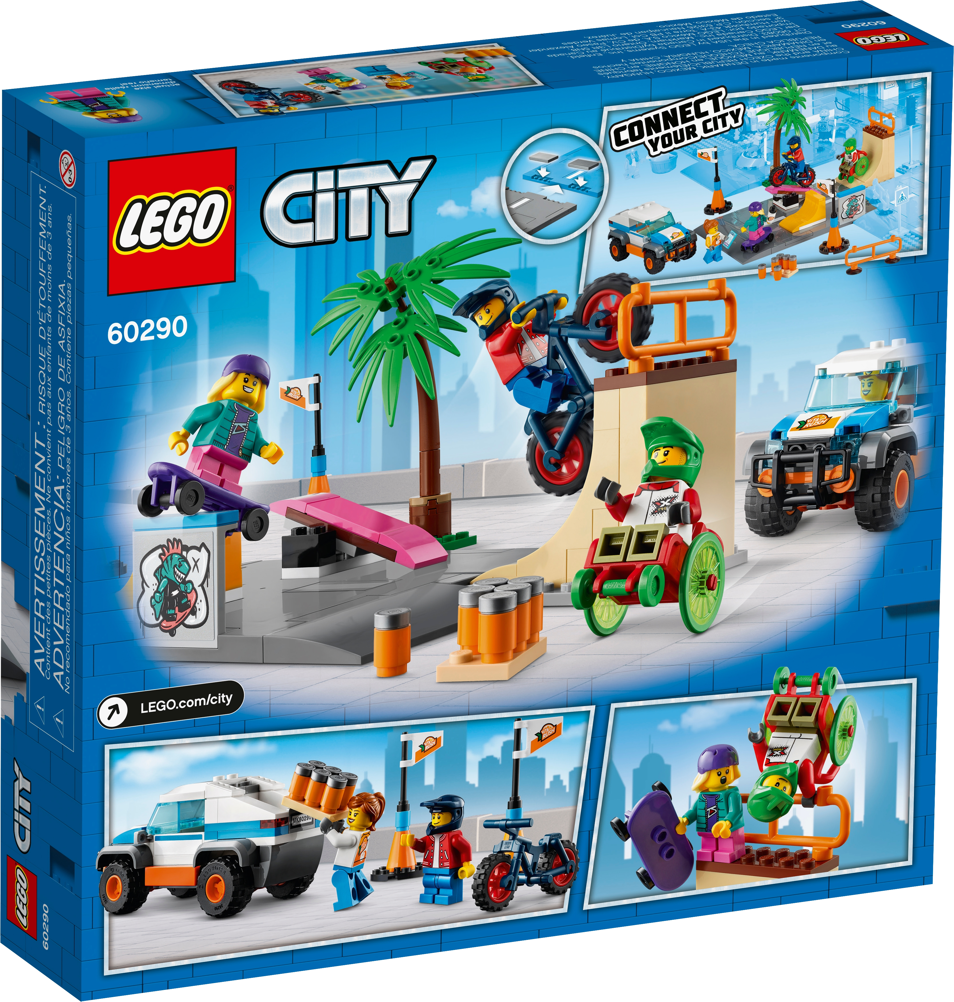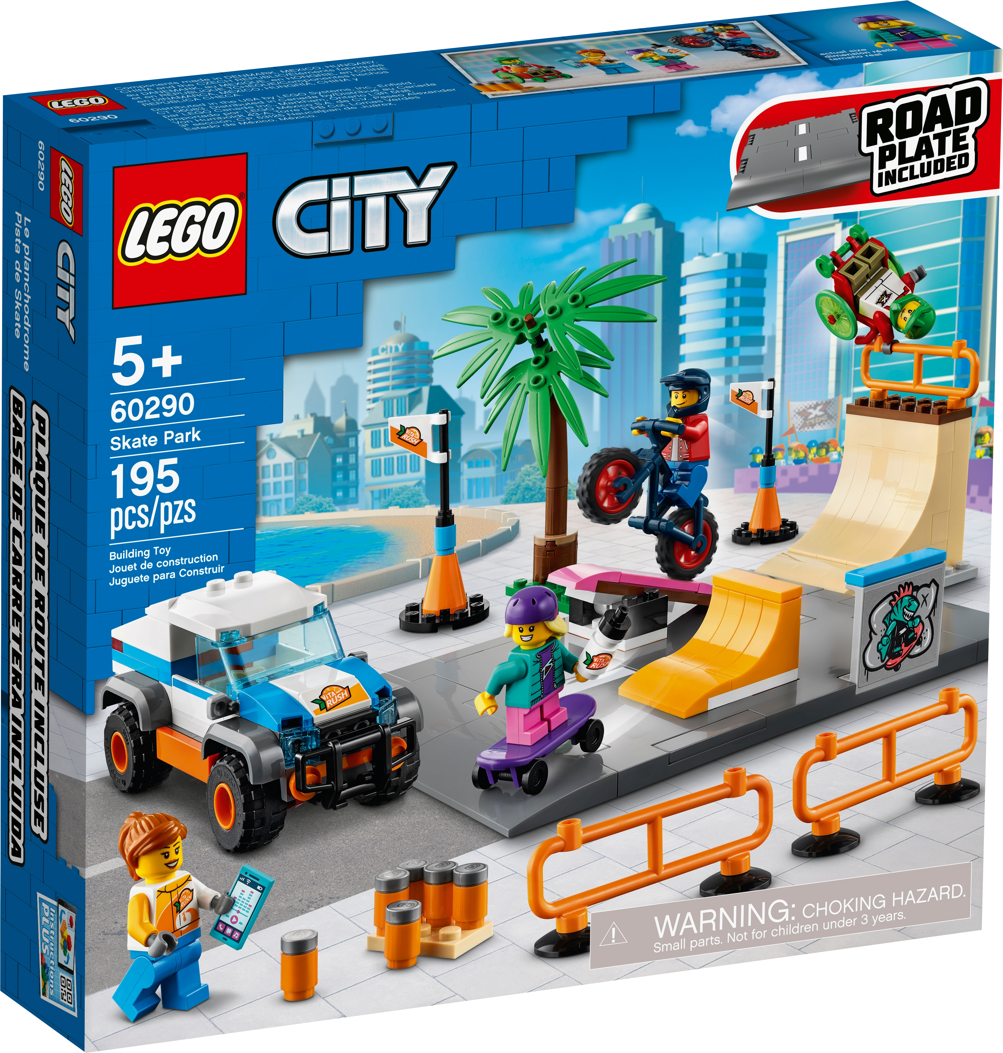 This LEGO® City Skate Park (60290) toy has everything kids need to stage exciting skating events, including a quarter pipe, ramp, seesaw and grind rail. Kids can also expand this playset to create their own city, via the included Road Plate. And with BMX rider, wheelchair athlete and skateboarder minifigures in the mix, endless hours of crowd-thrilling fun are guaranteed!Ideal for boys and girls aged 5 and upThis toy building set comes with an easy-to-follow building guide and Instructions PLUS– part of the free LEGO Building Instructions app for smartphones and tablets. This interactive construction guide with zoom and rotate viewing tools helps young LEGO builders become master builders.The creative world of LEGO CityLEGO City playsets deliver an exciting build-and-play experience. Kids play out stories that depict real life in a fun and imaginative way with feature-rich buildings, realistic vehicles and inspiring characters.This action-packed LEGO® City Skate Park (60290) playset will send kids’ creativity soaring. Perfect for boys and girls aged 5 and up, it inspires open-ended play based on real-life scenarios.What’s in the box? All kids need to make a pop-up toy skate park, including a LEGO® Road Plate, barriers, flags, ramps, a seesaw, plus a truck and BMX rider, wheelchair athlete and skater minifigures.Kids get to host cool skating events and perform crowd-thrilling stunts and tricks. And with the included Road Plate, they can connect to other Road Plate playsets to expand their city.This LEGO® City Skate Park playset makes a great Christmas, birthday or any-other-day gift for kids who love imaginative role play.When built, the Skate Park measures over 4.5 in. (12 cm) high, 7.5 in. (19 cm) wide and 8.5 in. (22 cm) deep, while the truck measures over 2 in. (5 cm) high, 4 in. (11 cm) long and 1.5 in. (4 cm) wide.LEGO® accessories in the set include helmets for the skater minifigures, a mobile phone and Vita Rush soda elements.Includes a printed building guide and Instructions PLUS – part of the free LEGO® Building Instructions app for smart devices. This interactive guide helps budding builders become master builders!LEGO® City My City sets come with feature-rich buildings, cool toy vehicles and exciting characters that depict life in a fun and exciting way. Kids develop key life skills as they build and play.All LEGO® bricks and pieces are produced according to strict industry quality standards to ensure they are consistent, compatible and fun to build with – it’s been that way since 1958.LEGO® City building toys are thoroughly tested to ensure every playset meets strict safety standards.