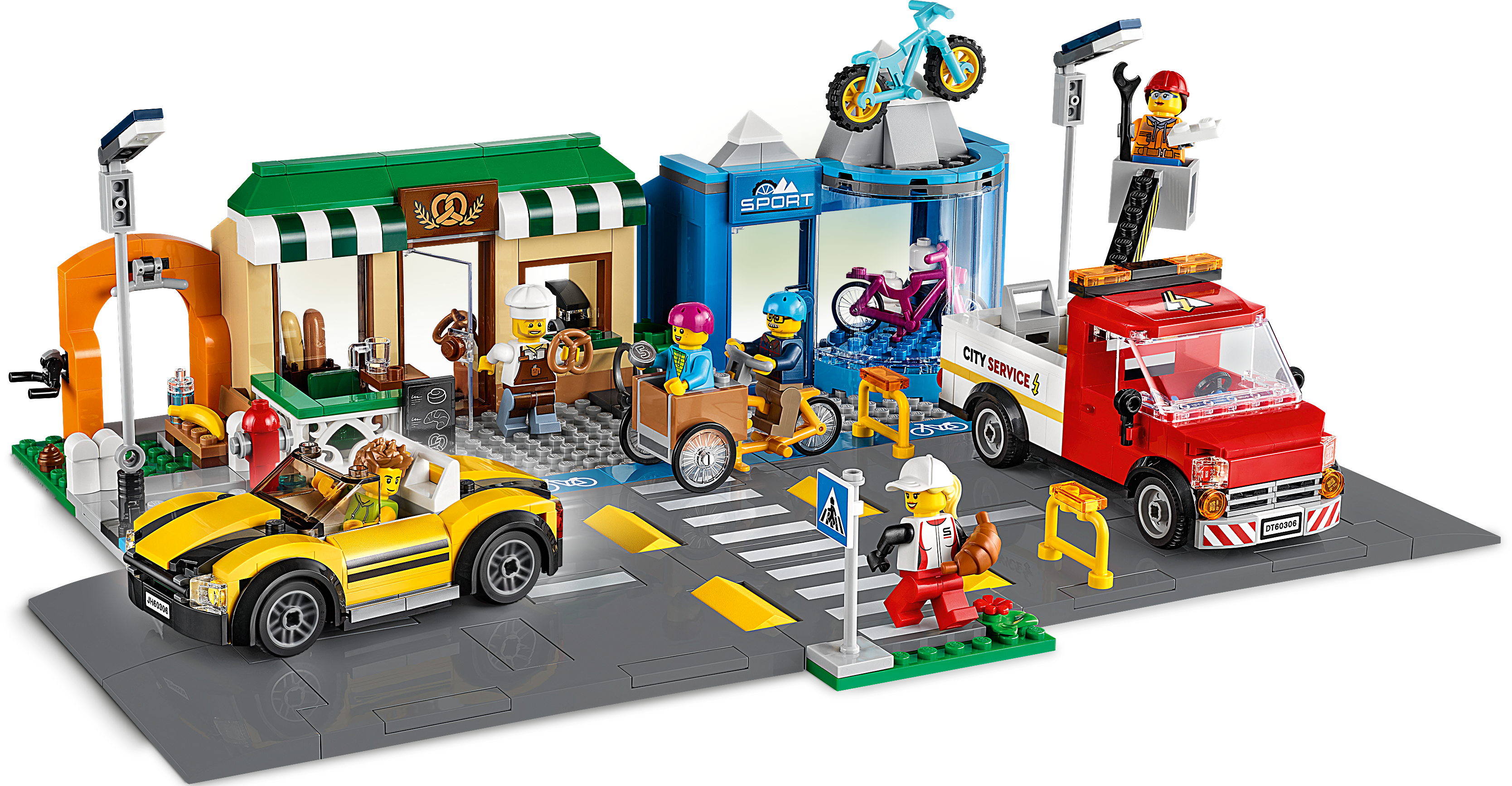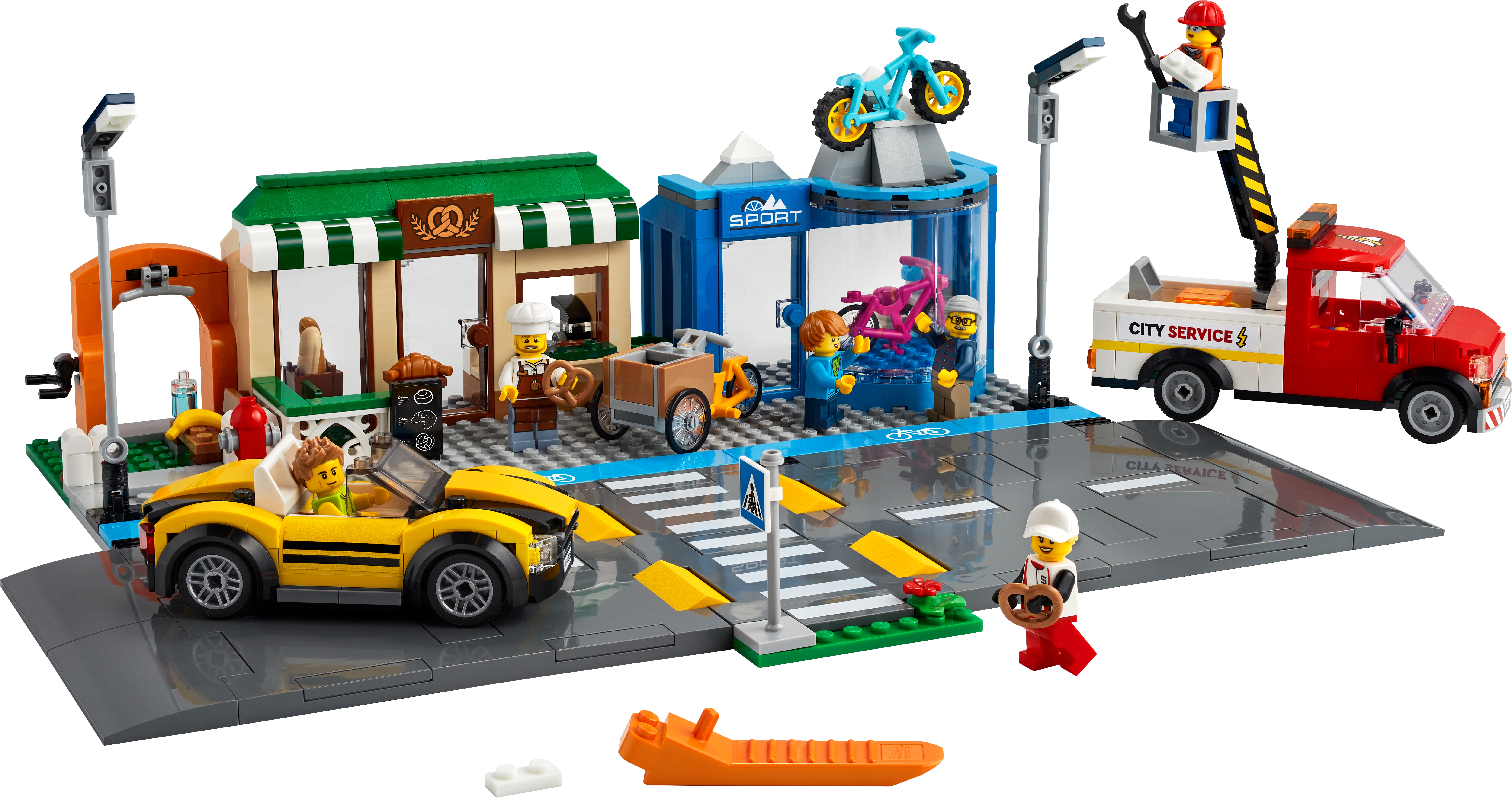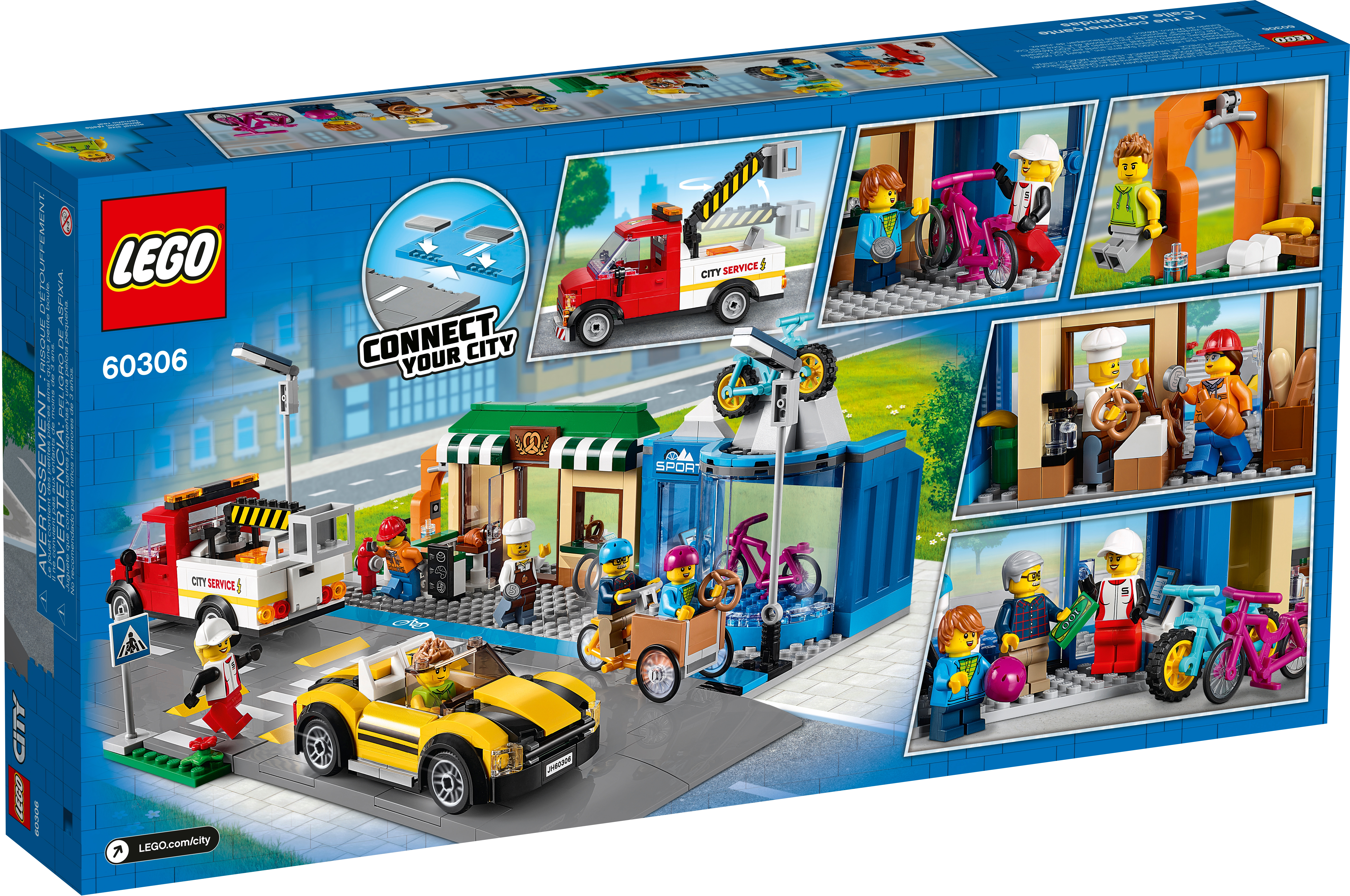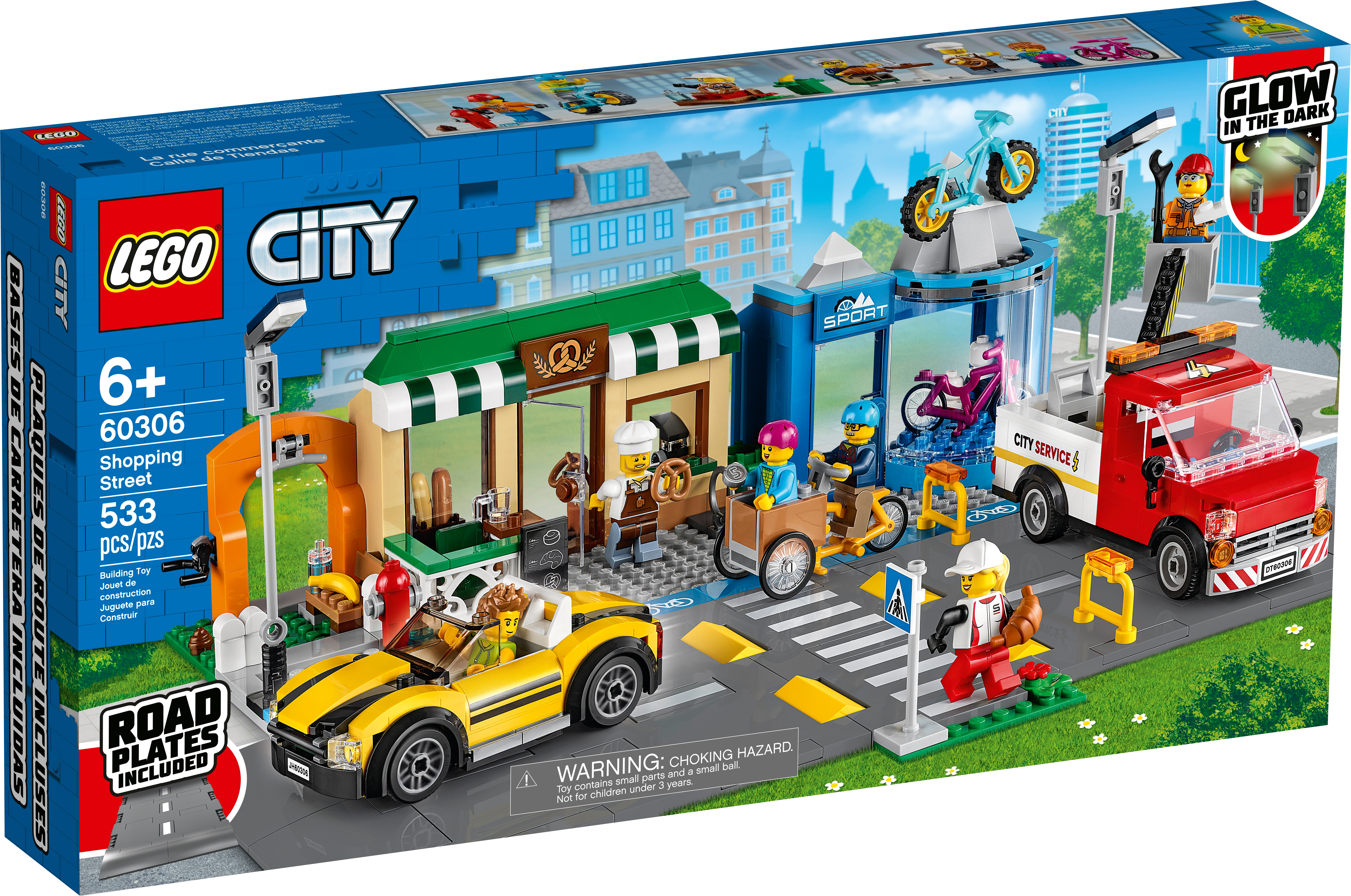 This premium multi-model LEGO® City Shopping Street (60306) playset is bursting with exciting features and functions. There’s a bakery, bike shop and park with an outdoor training centre. Kids also get a toy cargo bike, sports car and a service truck with a cherry picker, plus 6 fun minifigures. And with the included LEGO City Road Plates, kids can connect to other playsets to expand their city – just the way they like it!Multi-model playset for kids aged 6 and upThe LEGO City Shopping Street playset comes with an easy-to-follow building guide that helps youngsters experience the pride of constructing their own LEGO toys. Kids, friends and families can join for a fun building experience and endless hours of imaginative play.Inspirational LEGO toys for boys and girlsLEGO City building sets stimulate open-ended role play based on real-life events, with feature-rich buildings, realistic vehicles and fun characters that deliver an enjoyable, fun-filled, build-and-play experience.The premium-quality LEGO® City Shopping Street (60306) playset comes with detailed buildings, cool vehicles and fun characters with exciting accessories. A treat for kids aged 6 and up!Includes LEGO® Road Plates with car and bike lanes and a crosswalk, plus a toy bakery, bike shop, outdoor training center, cargo bike, service truck with cherry picker, sports car and 6 minifigures.This LEGO® set is packed with realistic features for imaginative play. And with the included LEGO Road Plates, kids can connect to other playsets to expand their city – just the way they like it!The high-quality LEGO® City Shopping Street playset makes an impressive Christmas, birthday or any-other-day gift for boys and girls 6 and up.When built, the LEGO® City Shopping Street model measures over 5 in. (13 cm) high, 16 in. (40 cm) wide and 11 in. (28 cm) deep.LEGO® accessory elements include a croissant, bread, pretzel, banana, water bottle, a leaking fire hydrant, toy light bulb, glow-in-the-dark streetlight elements and a dog poop.This toy playset comes with an easy-to-follow building guide that provides younger LEGO builders with a satisfying, independent build-and-play experience.LEGO® City My City sets come with colorful buildings, cool toy vehicles and fun characters that stimulate imaginative role play as kids create open-ended adventures in realistic settings.All LEGO® bricks and pieces are produced to strict industry quality standards to ensure they are consistent, compatible and fun to build with – it’s been that way since 1958.LEGO® City building toys are thoroughly tested to ensure every playset meets stringent safety standards.