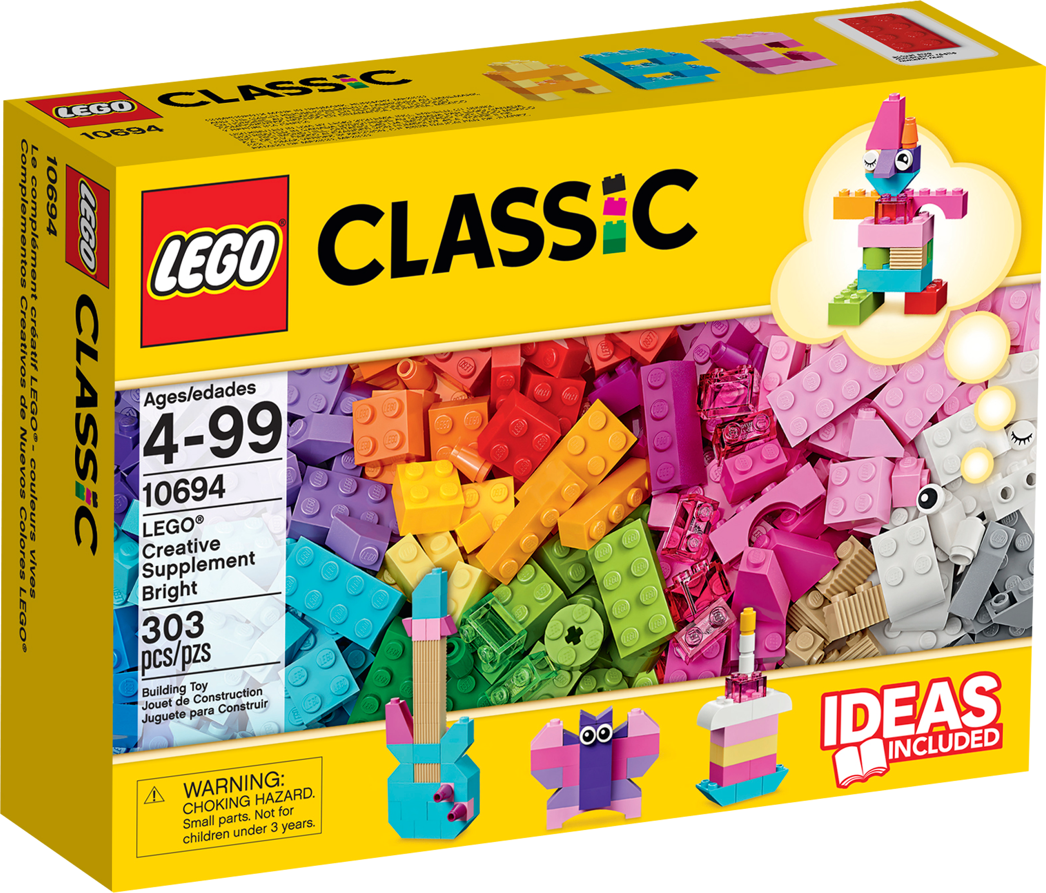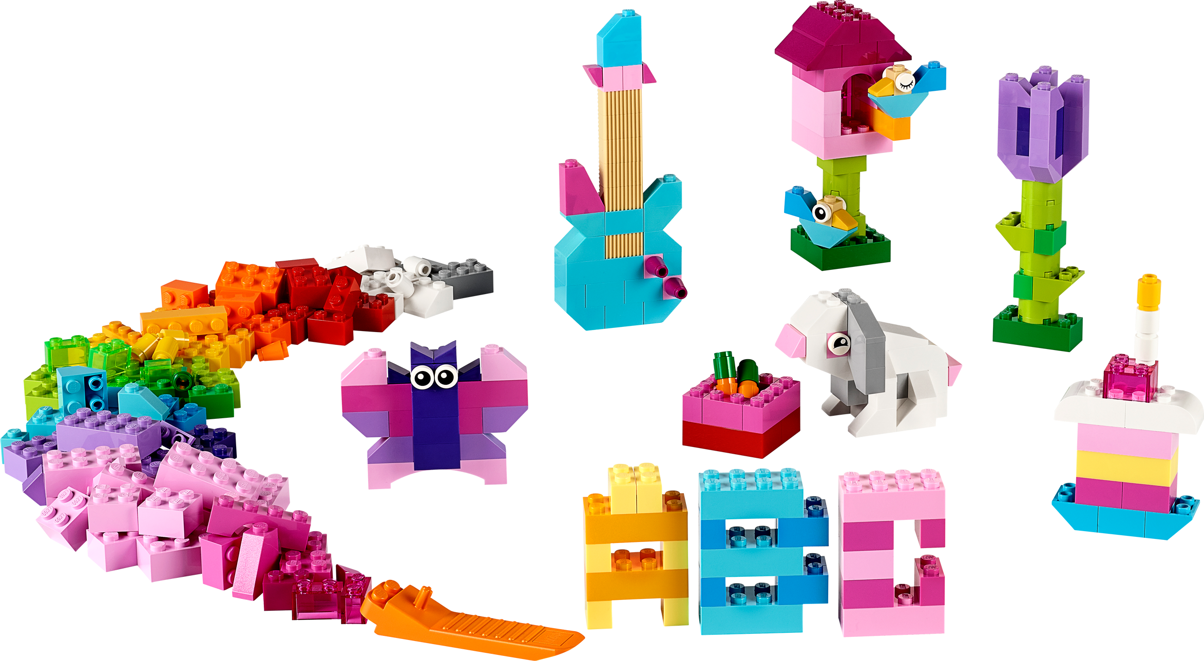 Build whatever your heart desires with LEGO® bricks in 20 different bright colors! Follow your imagination with this pile of brightly colored classic LEGO® bricks! From butterflies and flowers to guitars and cakes, this set comes with bricks in 20 different bright colors to help you create whatever you imagine. With 4 pairs of eyes for creating all kinds of creatures, this set also comes with ideas to help you get started. Designed for builders of all ages, it’s a great addition to any existing LEGO collection. Includes a range of LEGO® bricks in 20 different bright colors Features 4 sets of eyes for building animal friends Allows budding builders to get creative with LEGO® bricks Inspires open-ended creativity Ideas included with the set and online at LEGO.com/classic to help you get started All models pictured can be built from this set simultaneously Includes a brick separator LEGO® Classic sets are an ideal supplement to any existing LEGO collection