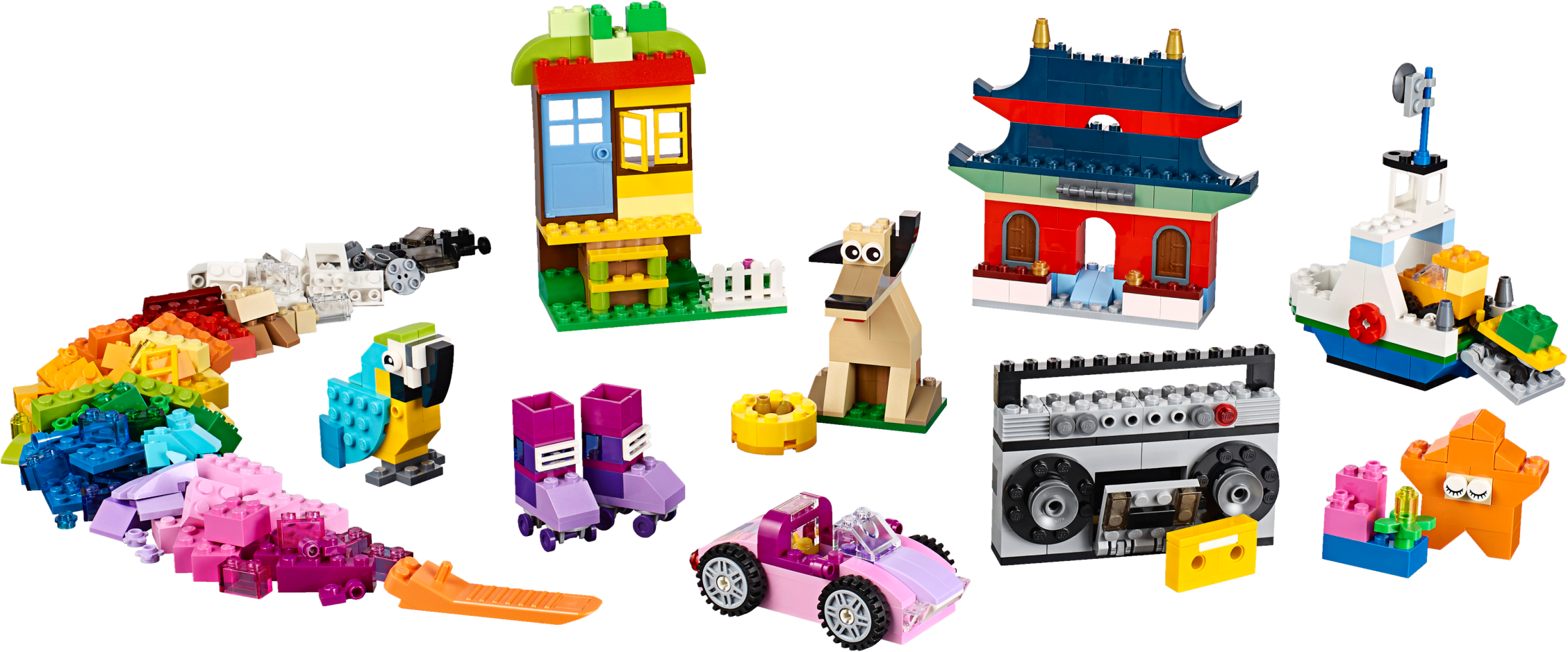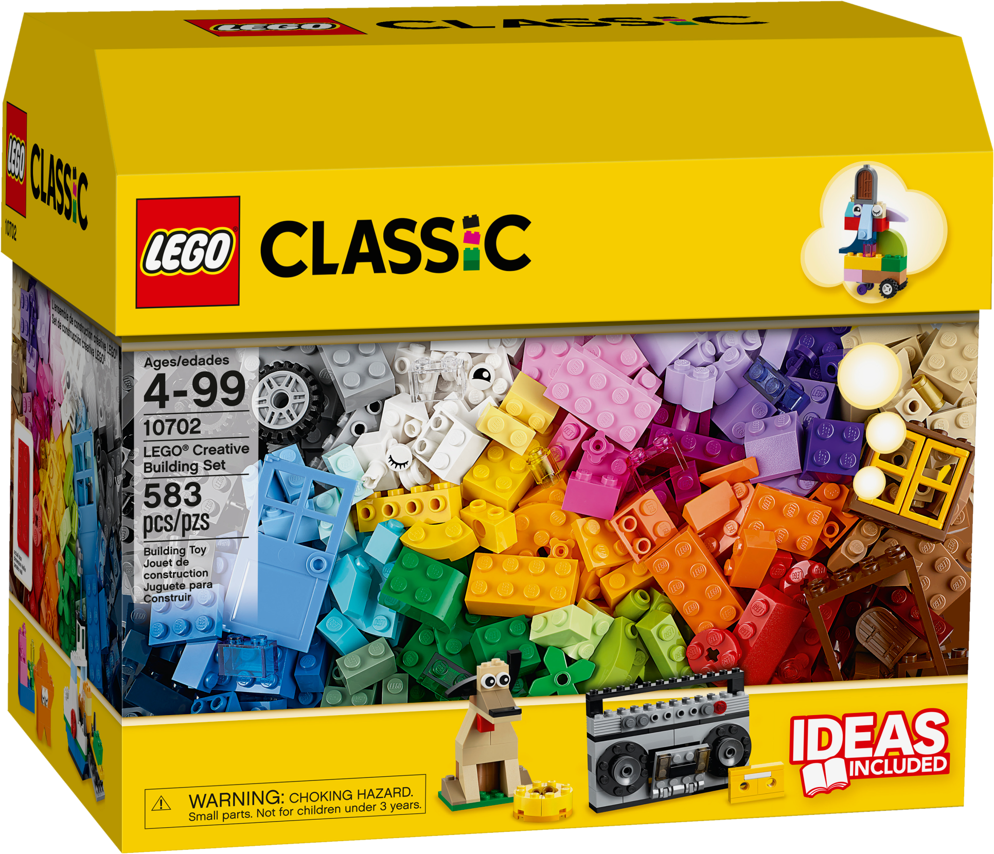 If you can dream it, you can build it with LEGO® Classic! Use your imagination and bring new creations to life with this inspirational box of LEGO® Classic bricks. Use the included instructions and download more online to help kick-start your ideas! Includes more than 570 bricks in 41 vibrant and fun colors. Features a mix of classic LEGO® bricks and special elements, including windows, doors, wheels and eyes. Ideas for 9 potential models with building instructions included in the box and online. Visit LEGO.COM/classic to find all the building instructions in this set and more. Ask your parents’ or guardians’ permission before going online. Includes 3 levels of building complexity to suit builders of all levels. Comes in asturdy, reusable cardboard box. The LEGO® Creative Building Set allows for open-ended creativity and imagination. Brick separator also included.