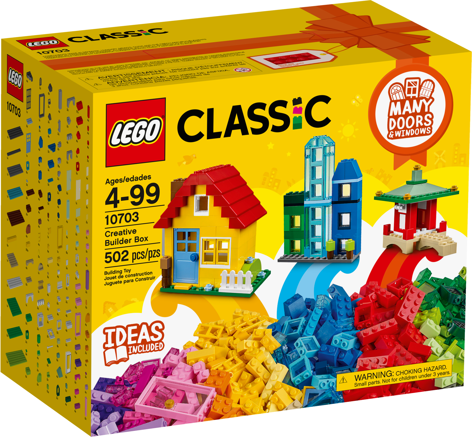 Unleash a world of open-ended creativity and imagination with the LEGO® Classic Creative Builder Box. Imaginative building play is easy with these bright, colorful versatile LEGO bricks, including a wide selection of doors and windows, shapes and special elements for creating all kinds of buildings. This set provides three levels of building complexity and includes an inspirational guide to help your child discover their creative building skills. Includes over 500 pieces in a rainbow of fun, bright colors that encourages open-ended creativity. Features a mix of classic LEGO® bricks, including a wide selection of doors and windows plus shapes and special elements for creating all kinds of buildings. Makes a great addition to any budding builder's LEGO® collection. This LEGO® Classic Creative Builder Box set allows for open-ended creativity and imagination. Provides three levels of building complexity to suit builders on different levels. Inspirational guide with model ideas and building instructions included in the box and online. Visit LEGO.com/classic to find all the building instructions in this set and more. Ask your parents' permission. Enjoy imaginative play with this inspirational LEGO® Classic set. Comes with a brick separator to make building and rebuilding easier. This set offers an age-appropriate build and play experience for ages 4-99.