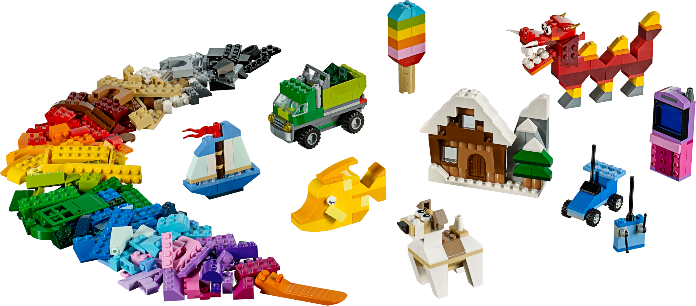 Unleash a world of open-ended creativity and imagination with the LEGO® Classic Creative Box. Imaginative building play is easy with these bright, colorful and versatile LEGO bricks in 39 colors. There are wheels, doors, windows and eyes and a mix of special elements, plus an inspirational guide with building instructions and ideas that will help your child discover their creative building skills. This set provides three levels of building complexity and makes a great addition to existing LEGO sets. Includes over 890 pieces in a rainbow of fun, bright colors that encourages open-ended creativity. Features a mix of classic LEGO® bricks and special elements, including windows, doors, wheels and eyes. Makes a great addition to any budding builder's LEGO® collection. This LEGO® Classic Creative Box building set allows for open-ended creativity and imagination. Provides three levels of building complexity to suit builders on different levels. Inspirational guide with model ideasand building instructions included in the box and online. Visit LEGO.com/classic to find all the building instructions in this set and more. Ask your parents' permission. Enjoy imaginative play with this inspirational LEGO® Classic set. Comes with a brick separator to make building and rebuilding easier. This set offers an age-appropriate building experience for ages 4-99.
