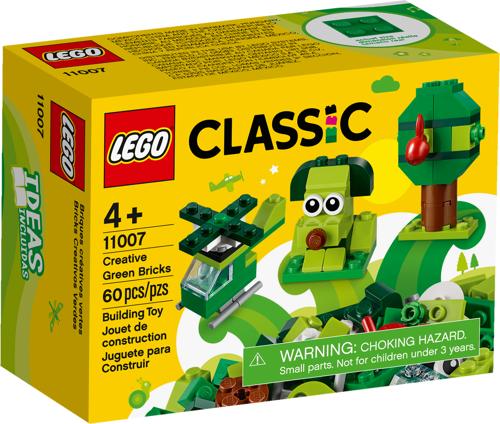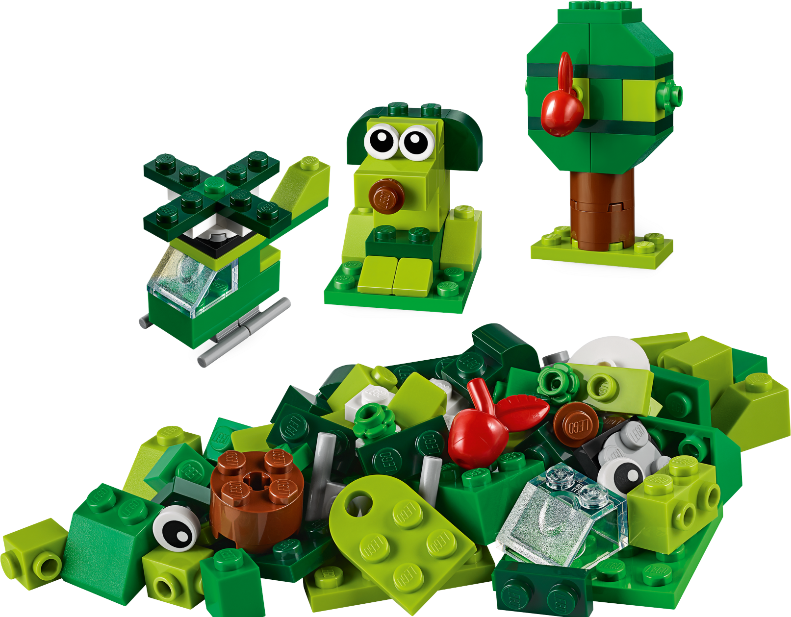 This timeless building toy is bursting with ideas and inspiration in gorgeous green! As kids build, play and build again, it unlocks their imagination and encourages developmental skills that support future success. Boost creativity with this imaginative building bricks toy Introduce children aged 4 and over to creative construction with 3 easy-to-build LEGO® toys. There's a cute green dog, a mini helicopter with rotating blades and an apple tree model with a delicious-looking detachable apple. The fun starts right away thanks to simple instructions and fun features. The imaginative play takes off as kids mix the bricks to modify their models, then soars as kids build inspired creations of their own. Build skills for the future with these bricks for kids LEGO Classic sets inspire boys and girls to build, create and imagine. As they enjoy endless open-ended play and creative self-expression, they develop valuable skills that last a lifetime.
