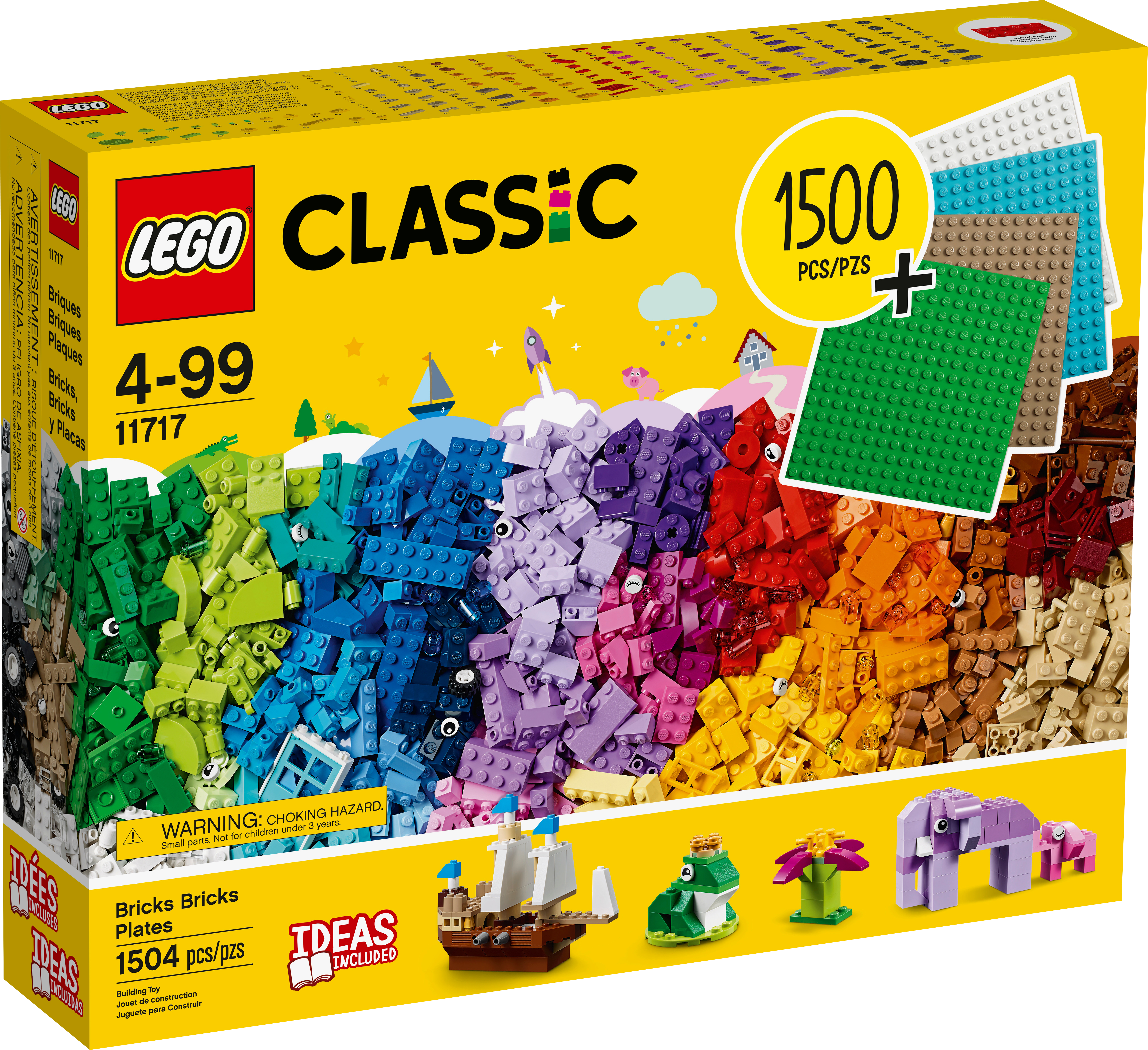 LEGO Classic Bricks Bricks Plates (11717) is overflowing with ideas and inspiration. As kids build, play and build again, this open-ended construction toy unleashes creative potential and delivers educational benefits that last a lifetime. A rainbow of LEGO bricksWith various colors and shapes including wheels, windows, doors and eyes plus 4 16x16-stud baseplates, kids can build whatever they imagine. Clear guides get kids building simple LEGO toys immediately: a frog, pirate ship, elephant or castle & before constructing cool models of their own. The baseplates hold building bricks at any angle, even upside down, yet release them with minimal effort, and transport and display models once building stops. Open-ended creative buildingLEGO Classic sets put ideas and inspiration into kids' hands. Fun models and simple guides get them started. As they discover the joy of building creations of their own, they learn valuable skills that last a lifetime.
